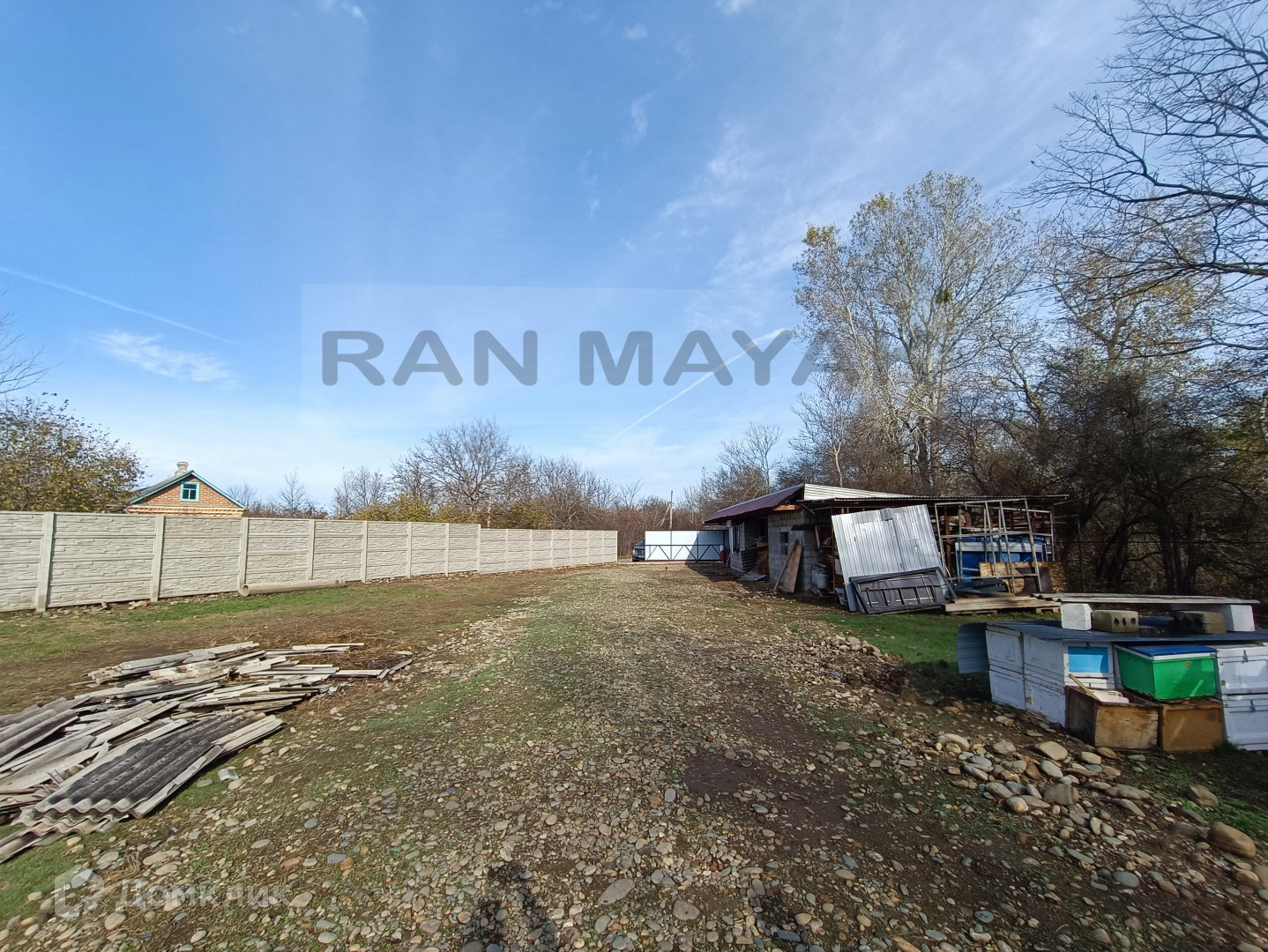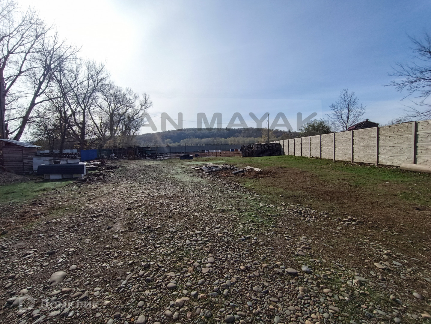 с фасадом на основную улицу 93 метра, полностью закрыт забором.