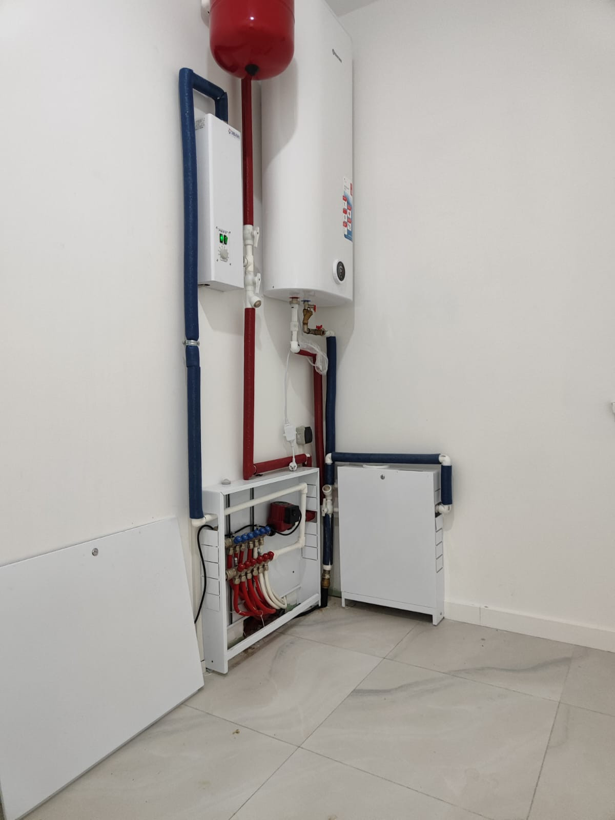 Установлен котел, бойлер и остальное оборудование
