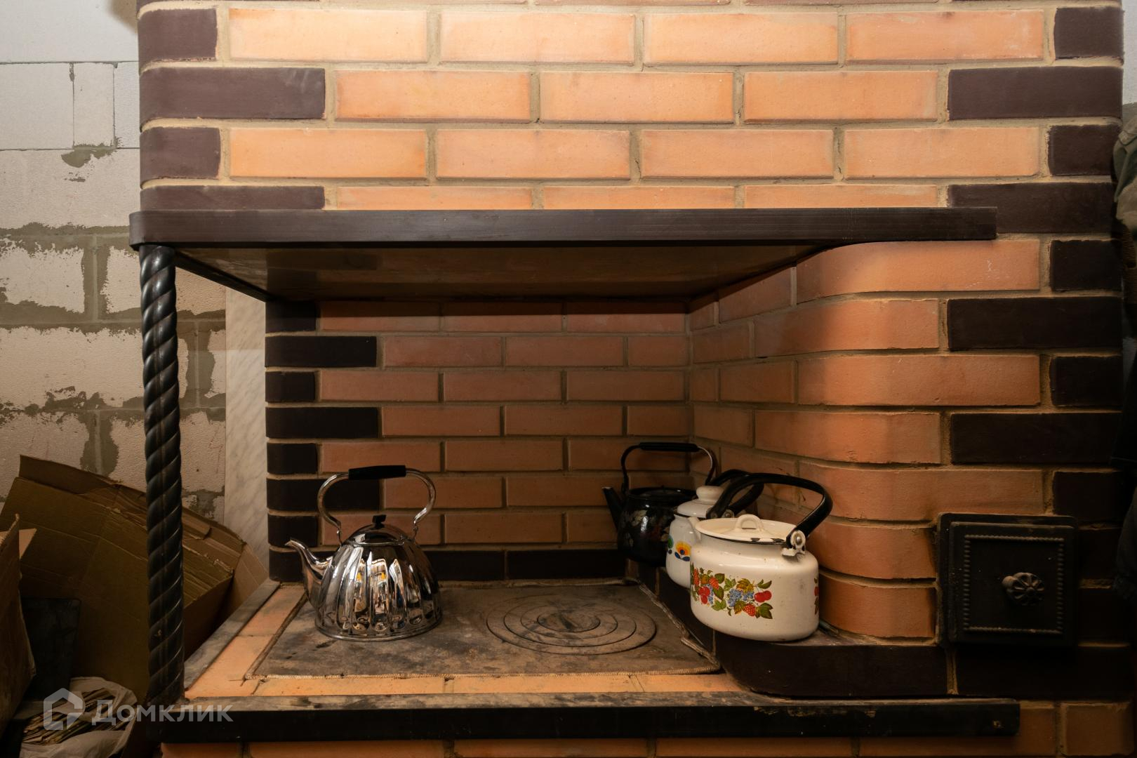 Отопление: 1 этаж — теплые водяные полы, 2 этаж — батареи. Все от электрокотла. Резервная система на дровах, со стороны техкомнаты полноценная печь, со стороны гостиной – камин, топить можно как раздельно, так и вместе.