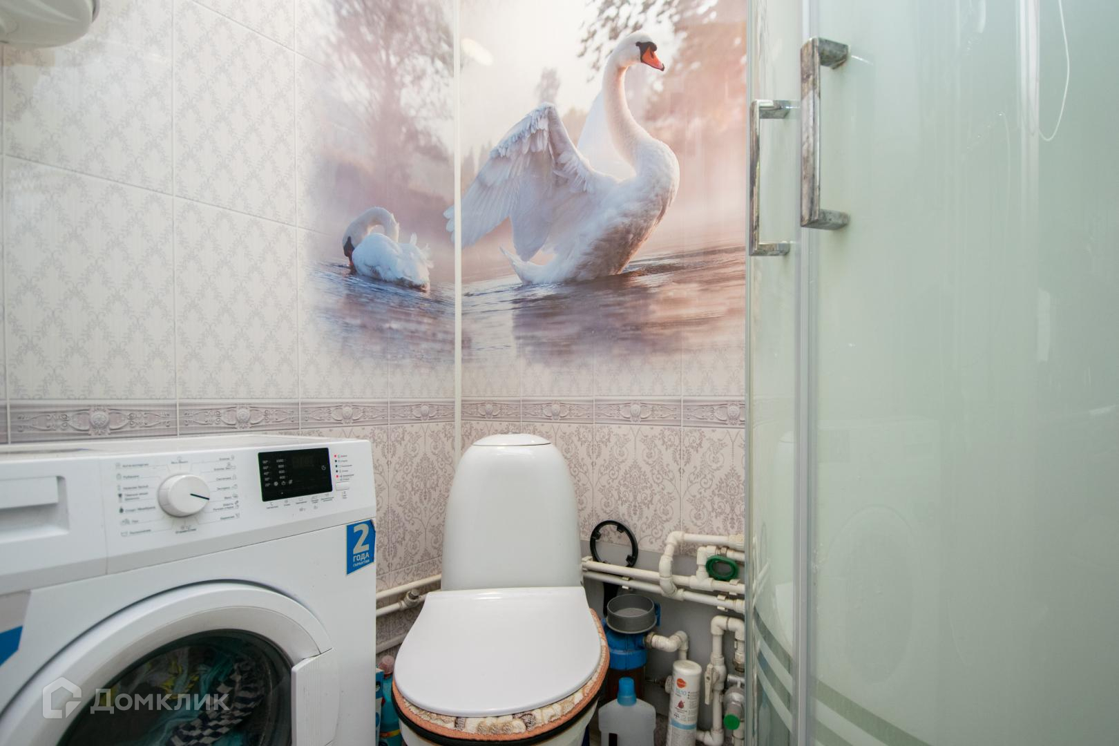 Туалет – унитаз, душевая кабина, вытяжка, бойлер, умывальник, стиральная машина.