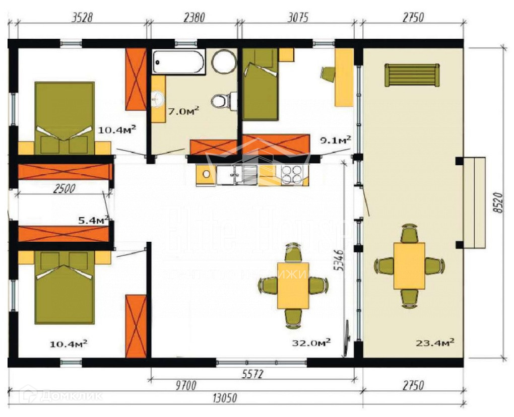 * Количество спален: 3
