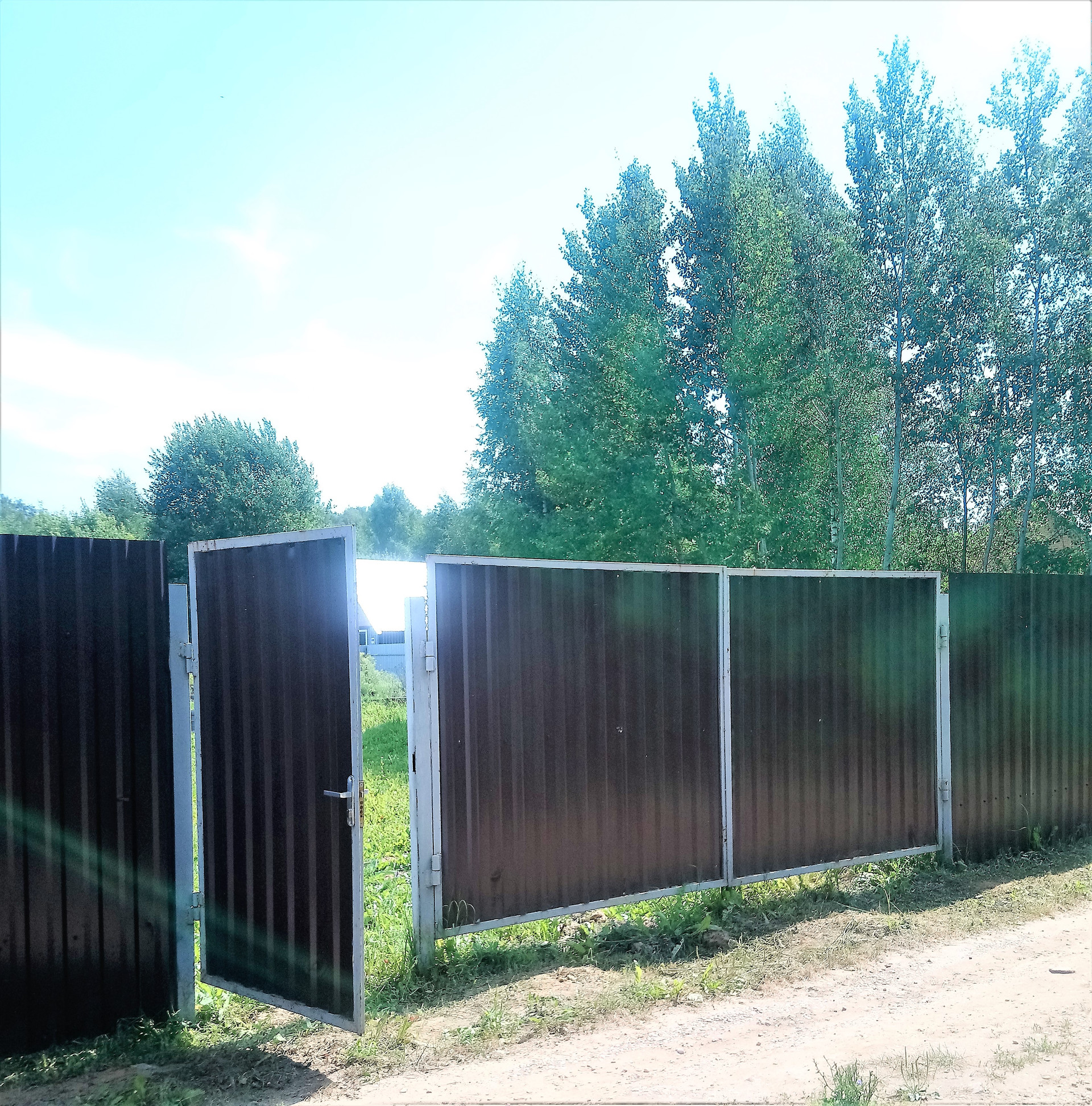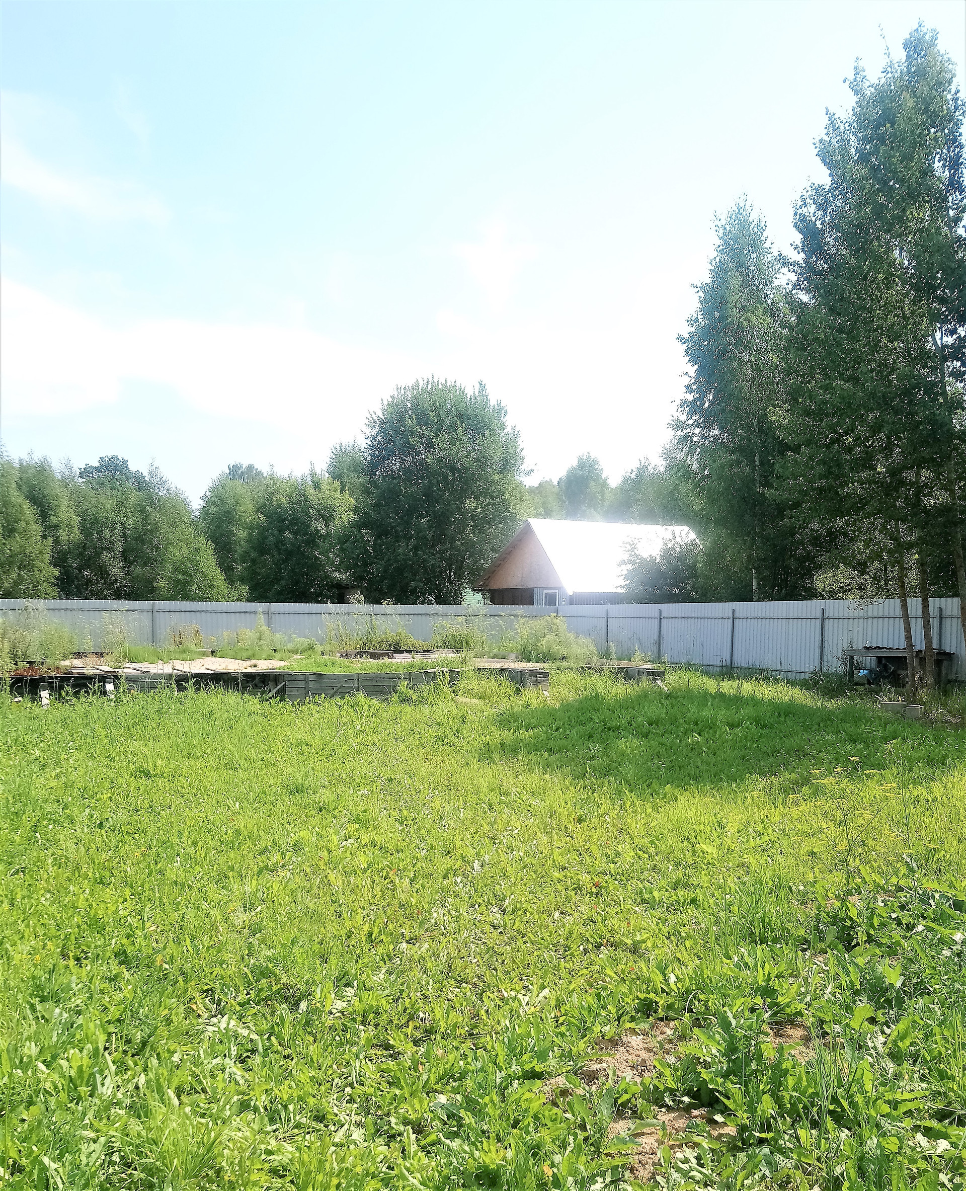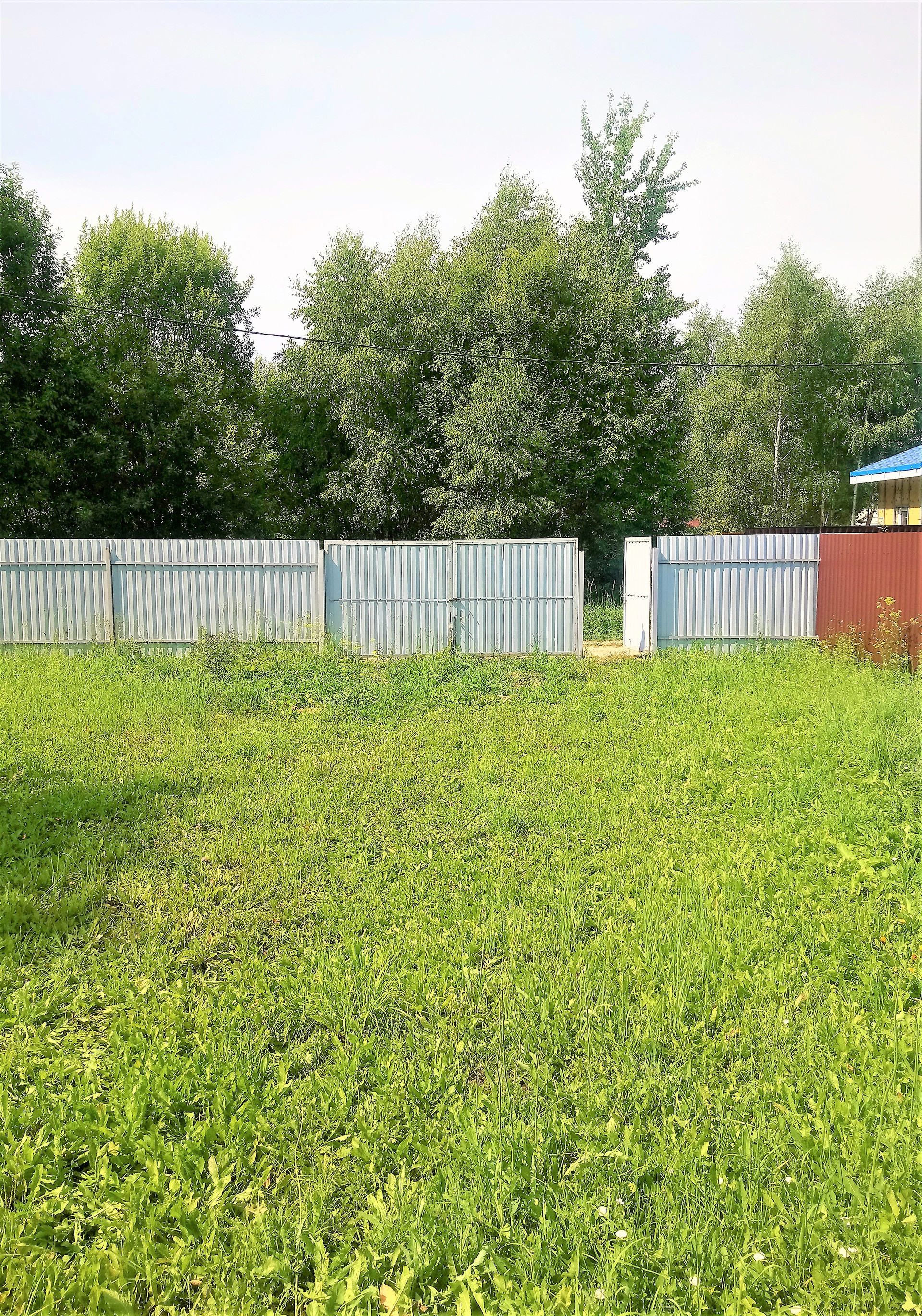 Полностью огорожен забором из проф. листа, ворота для въезда.