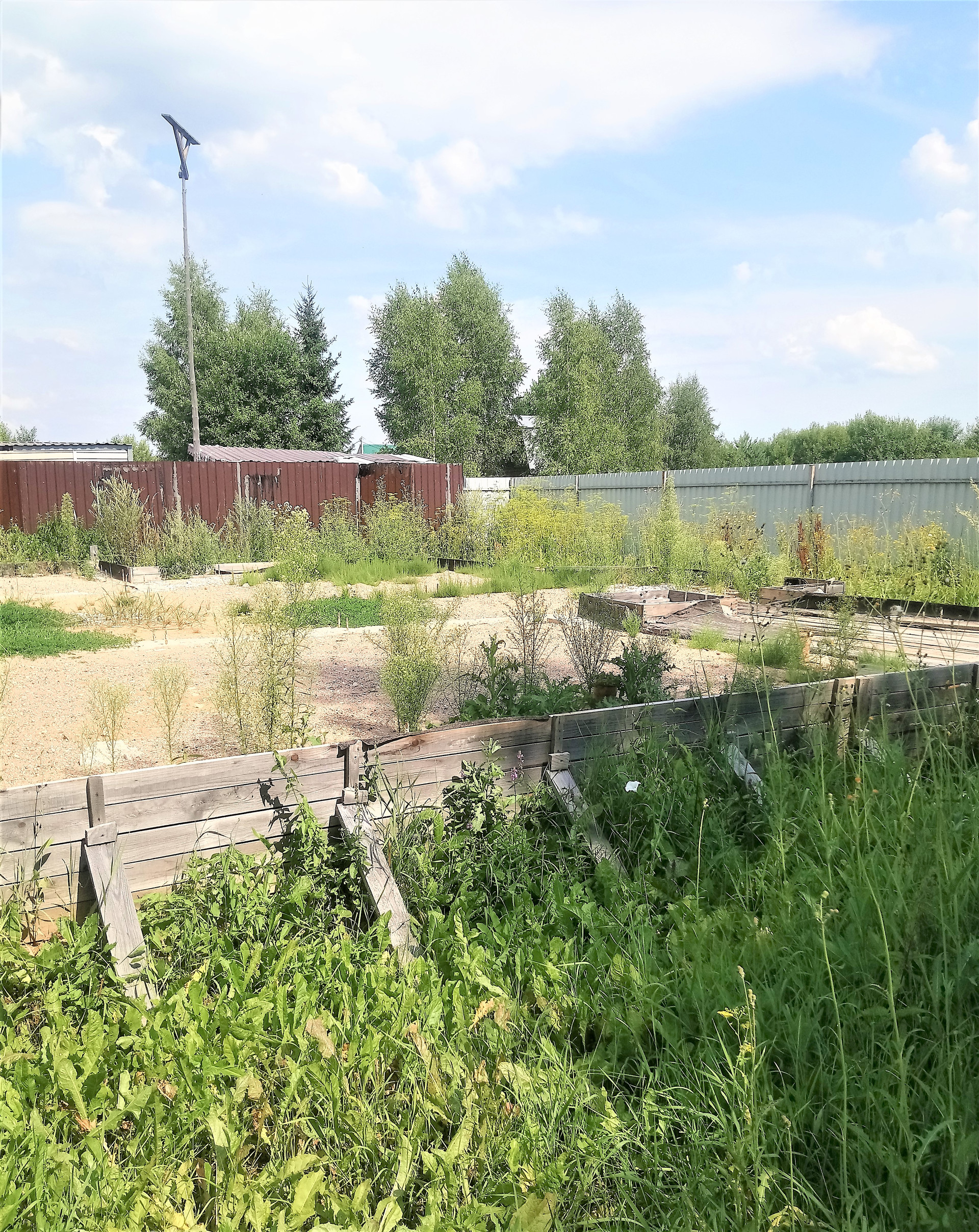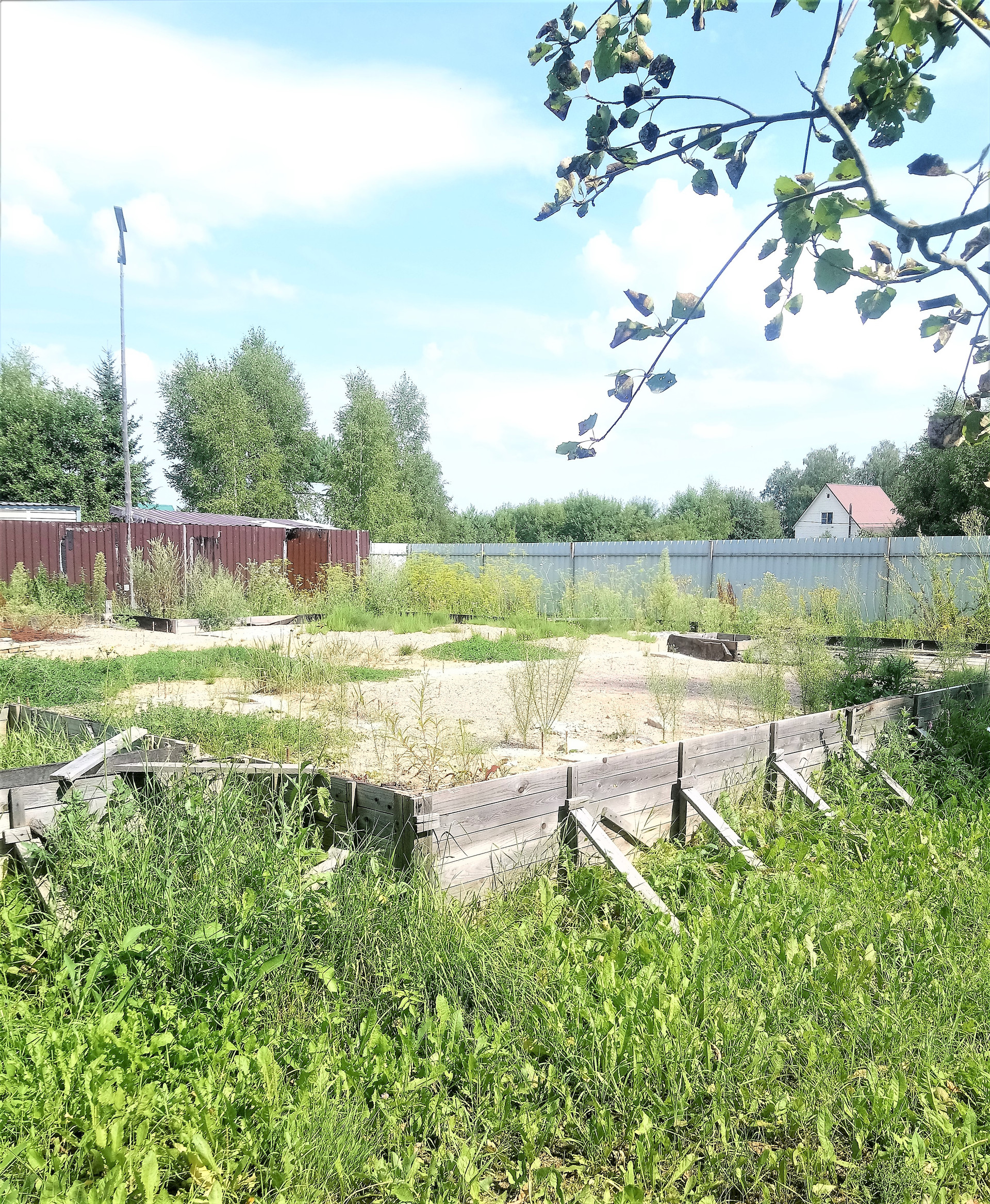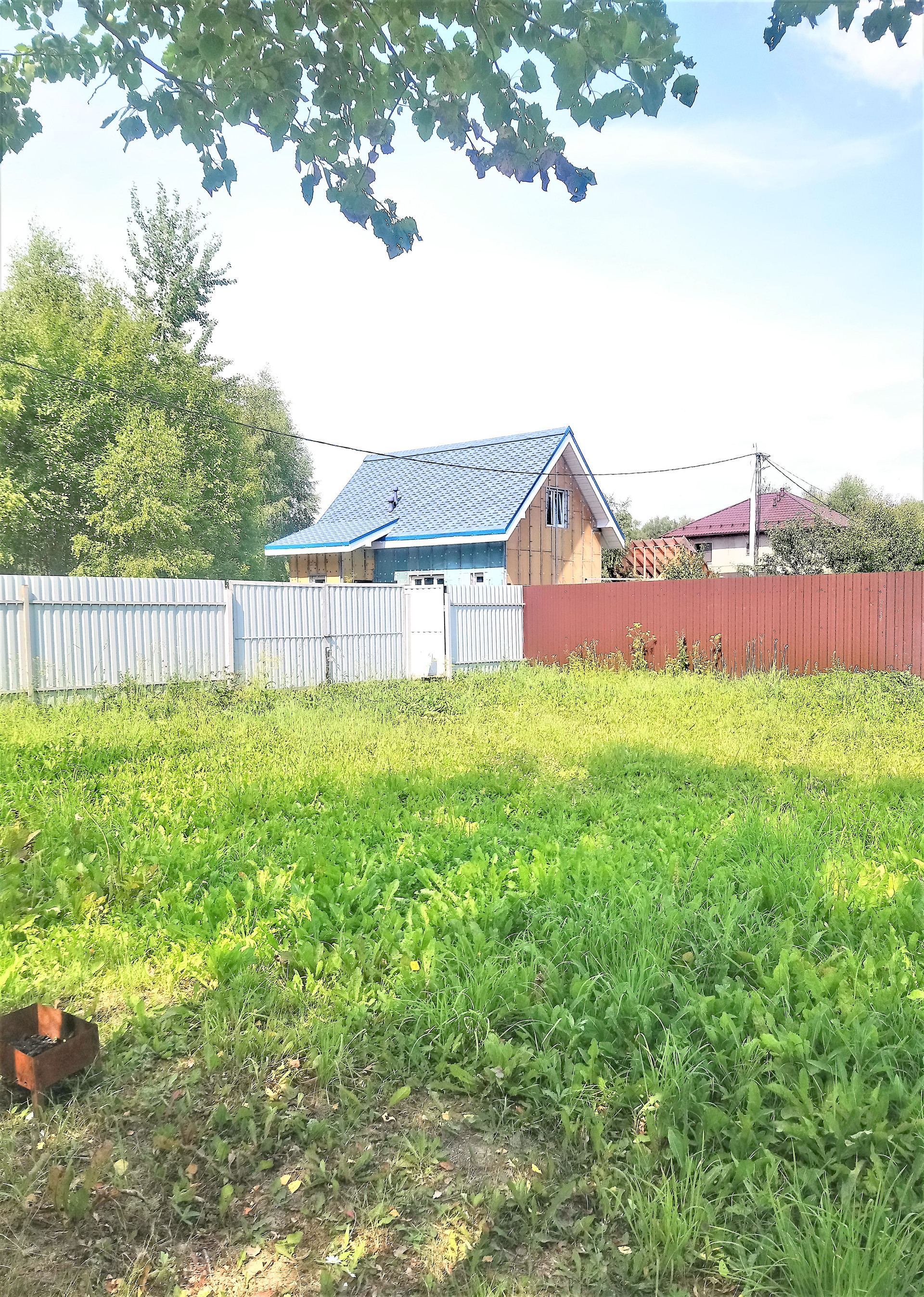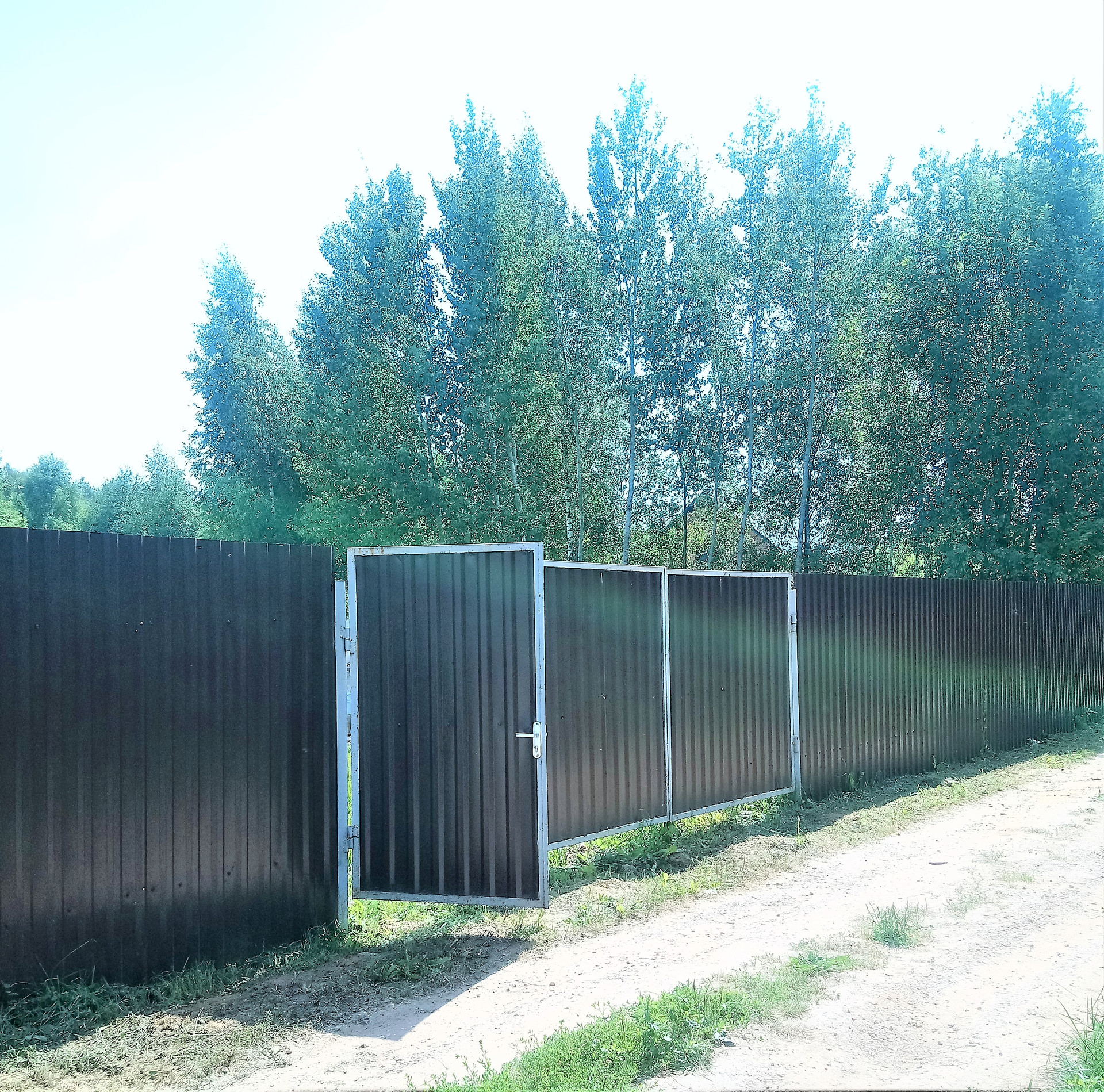 Полностью огорожен забором из проф. листа, ворота для въезда.