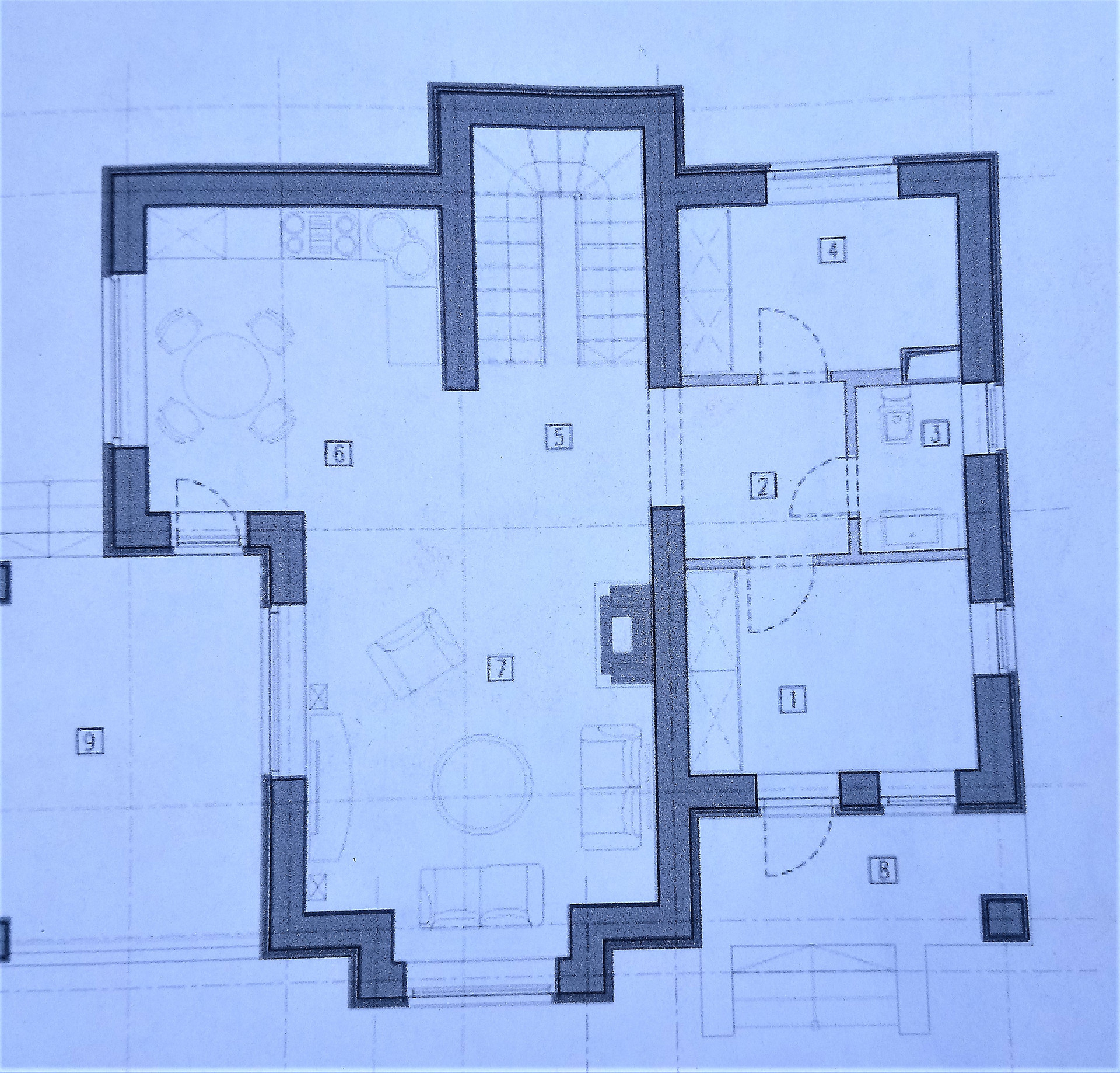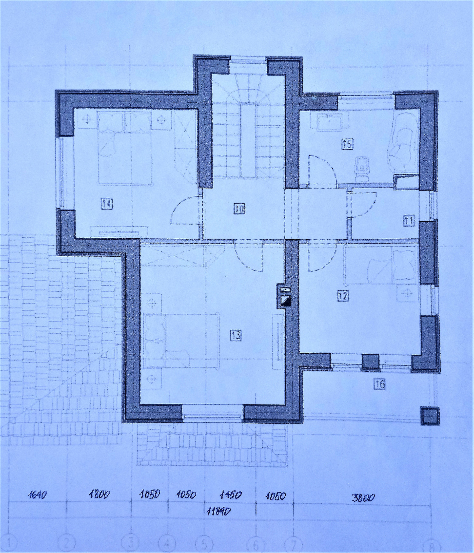На участке залит фундамент 11 на 10 метров с подвалом под двухэтажный дом (план и вариант дома см. фото на сайте)