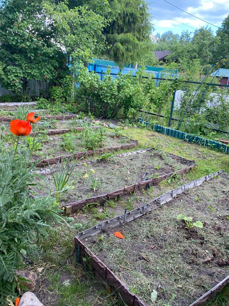 Участок в отличном состоянии: сделан дренаж, высажен газон, много плодовых деревьев (7 плодоносящих яблонь, сливы, алыча, малина, жимолость, крыжовник, ежевика) и кустарников, очень много красивых цветов, роз, клематисов. Есть стеклянная теплица из металла на ленточном фундаменте с дорожкой из плитки.