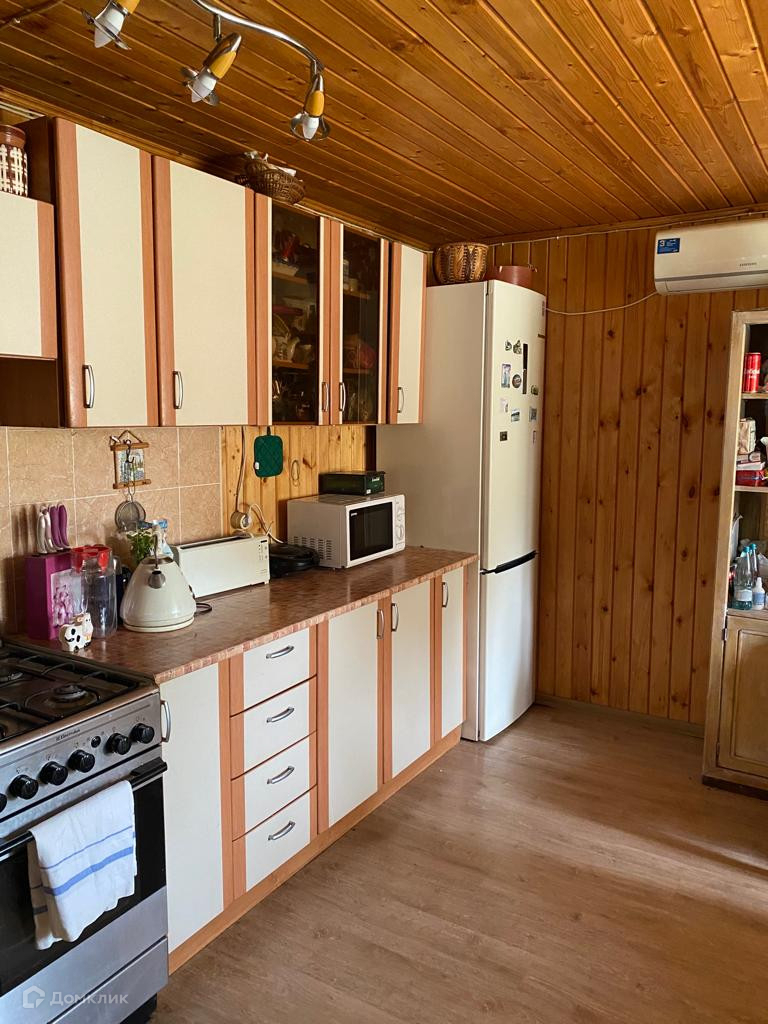2-ое строение из 150 бруса площадью 60 кв м: внизу кухня 16 кв м с кондиционером, терраса 16 кв м, две гостевые комнаты наверху. Окна пластиковые. На кухне очень мощная печь Булейран(Канада) Встроенная кухня из Леруа с раковиной и смесителем Грое остаются покупателю. Холодильник Bosh можем оставить покупателю по дополнительной договоренности. Подсоединена посудомоечная машина, горячая и холодная вода. Есть кондиционер Samsung. Крыша - металл. На первом этаже недавно сделан ремонт пола: дополнительно утеплен,заменено покрытие на новый ламинат.