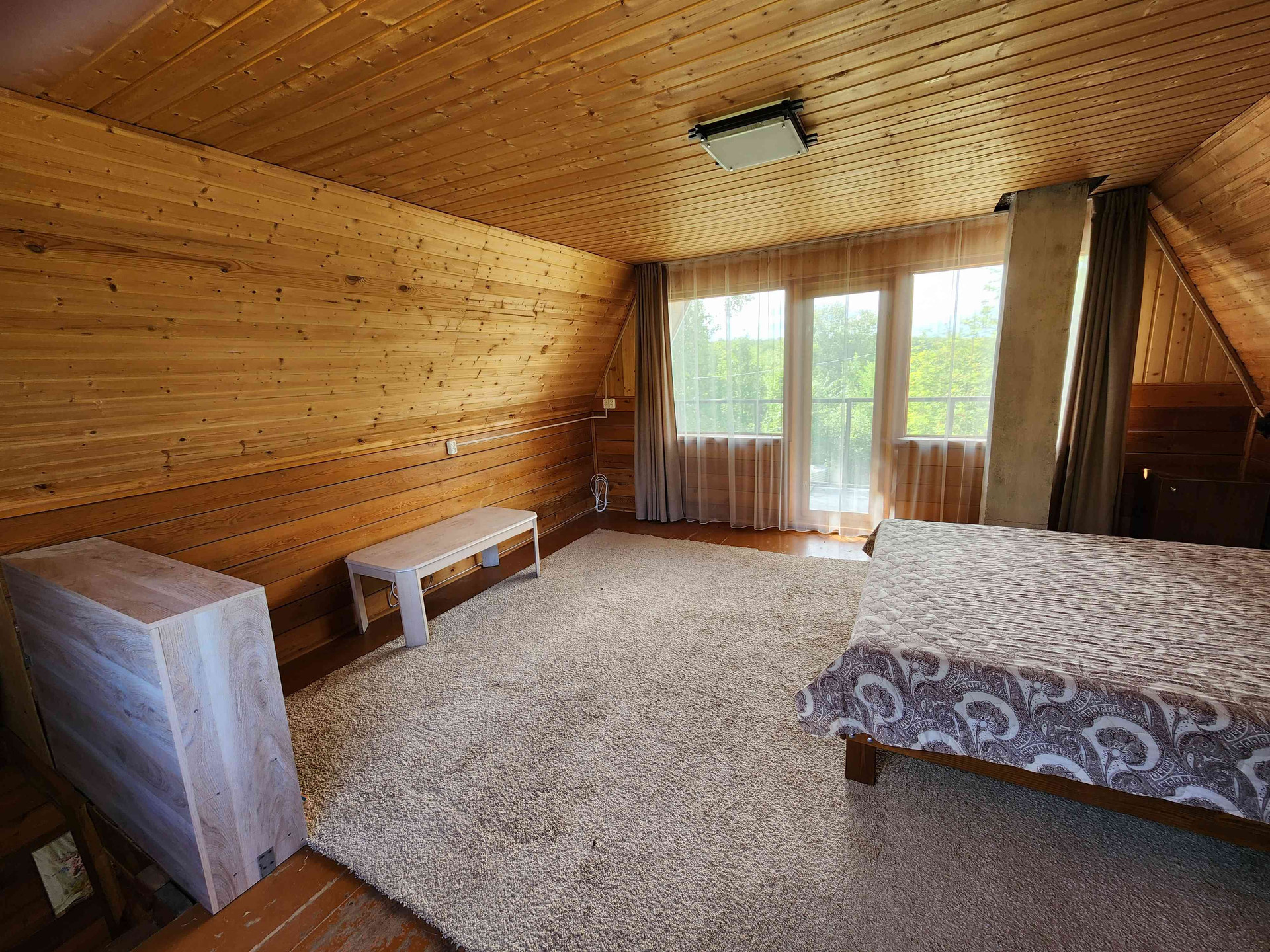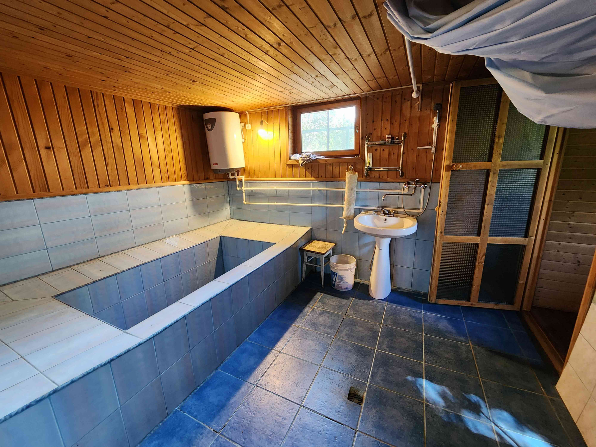 Добротный, крепкий дом 2003 года постройки, цоколь и первый этаж бетонные, второй и третий этажи из бруса. В цокольном этаже баня с парной и бассейном. Отопление на жидком топливе (бойлер).