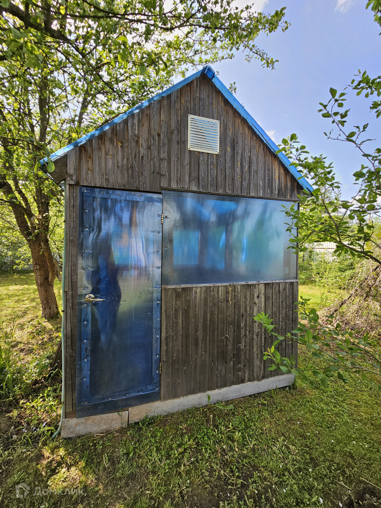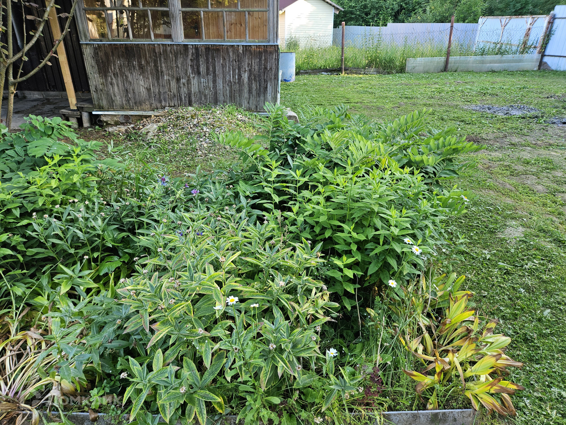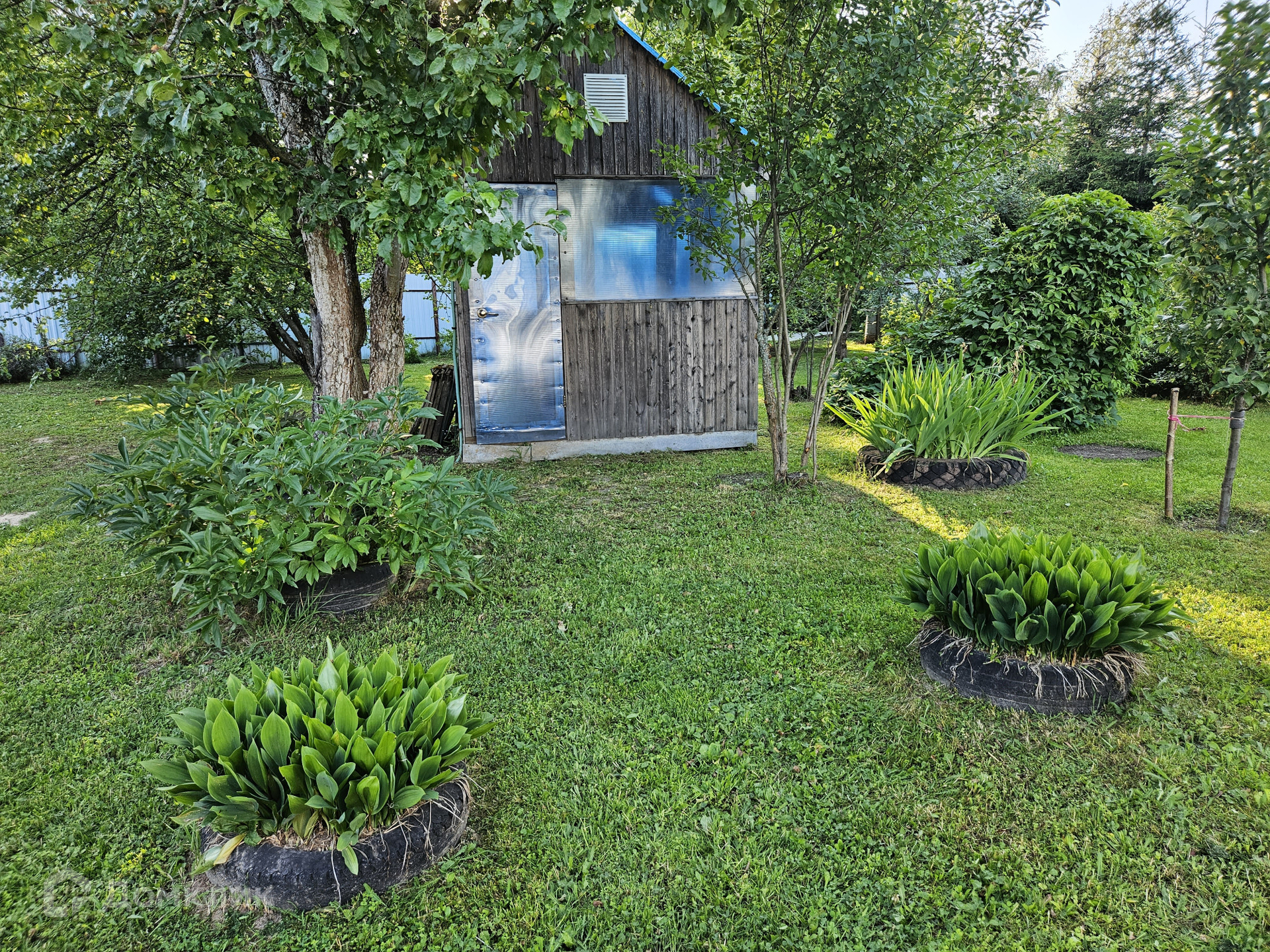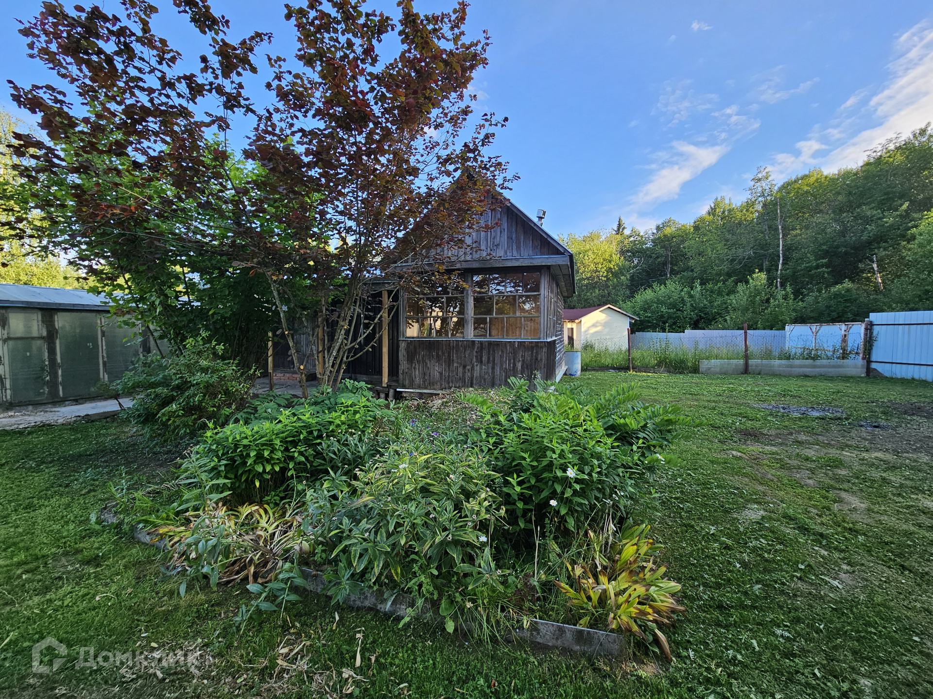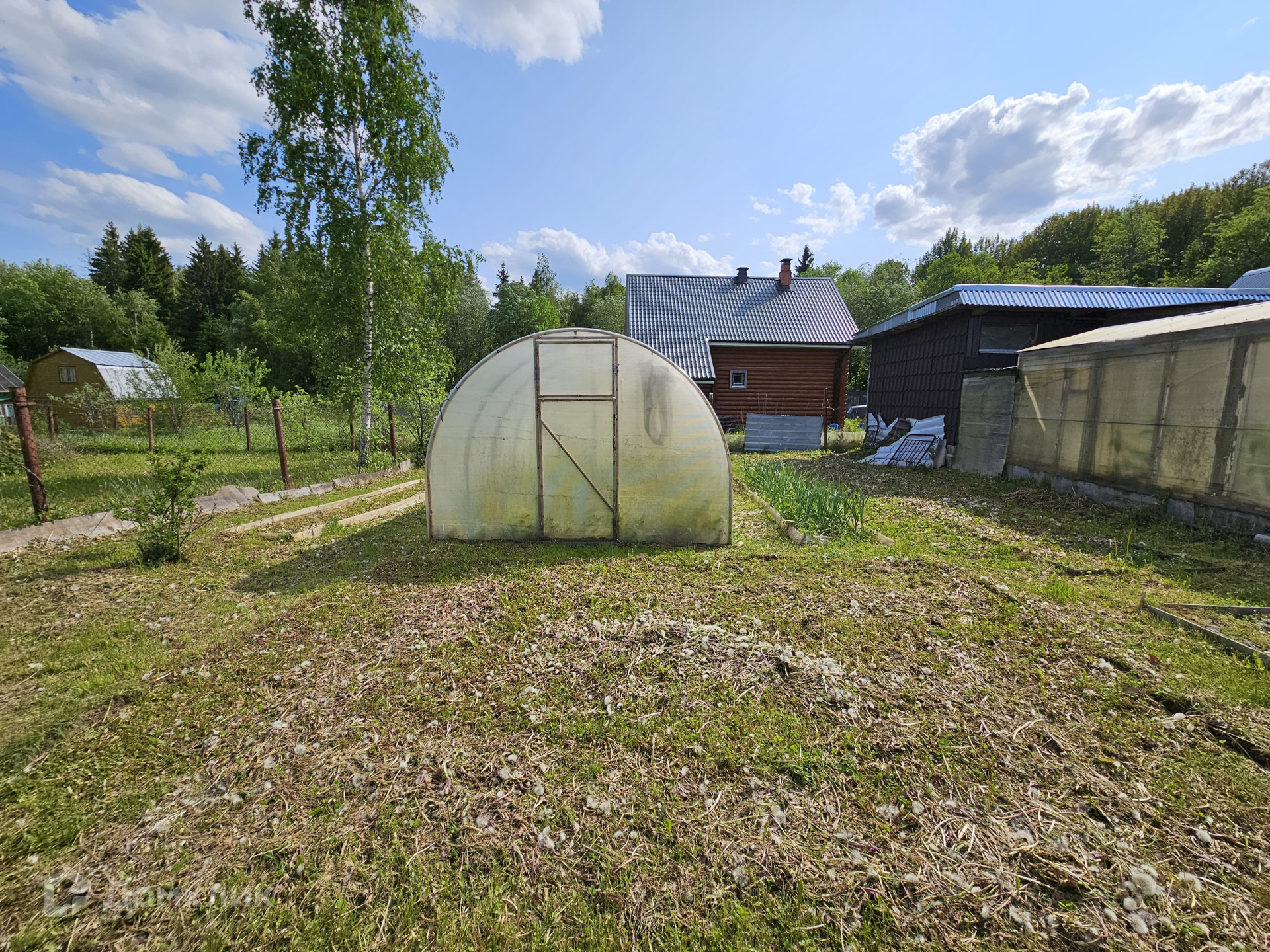На участке добротная баня, хоз. постройки,летняя бесетка, плодовые деревья.