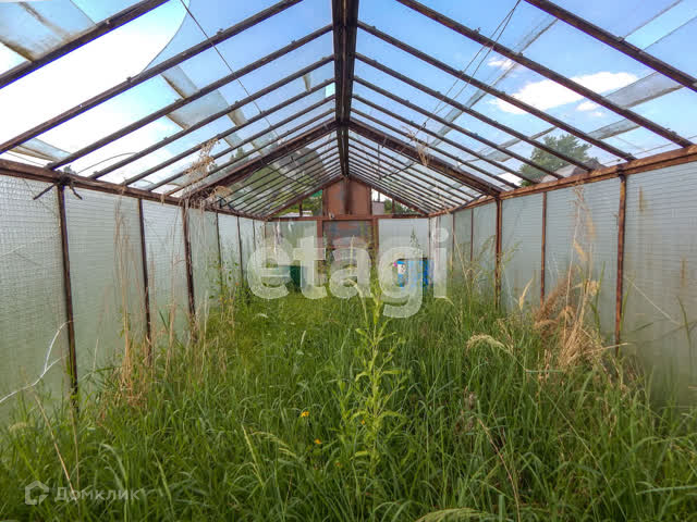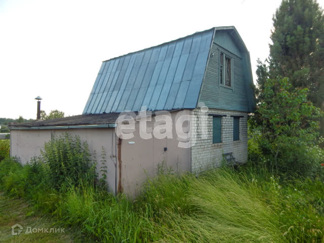 На участке в восемь соток находится двухэтажный дом (первый этаж-кирпич, второй-дерево),металлический гараж, хорошая баня, теплица.