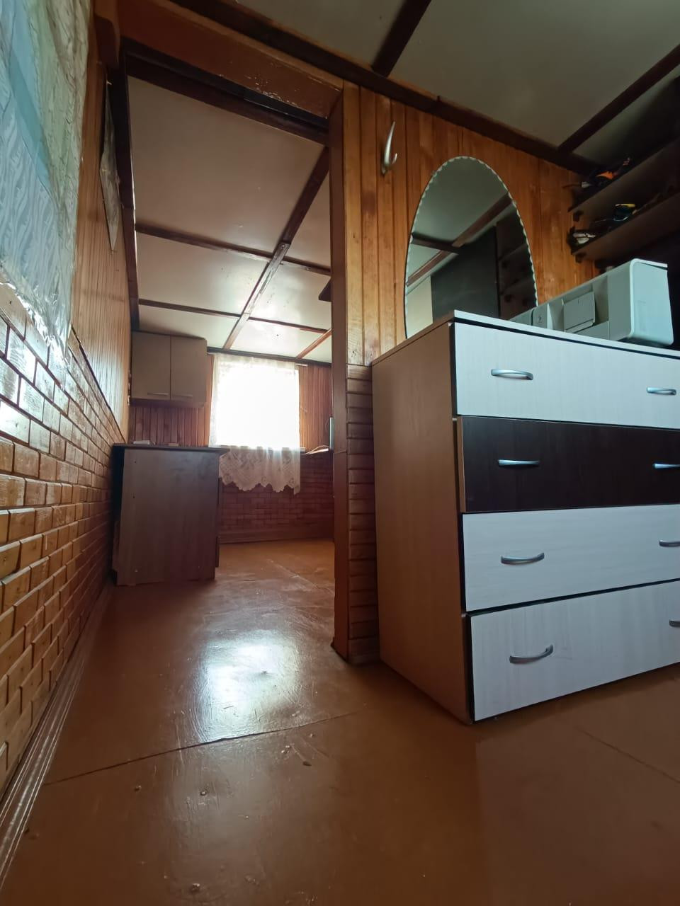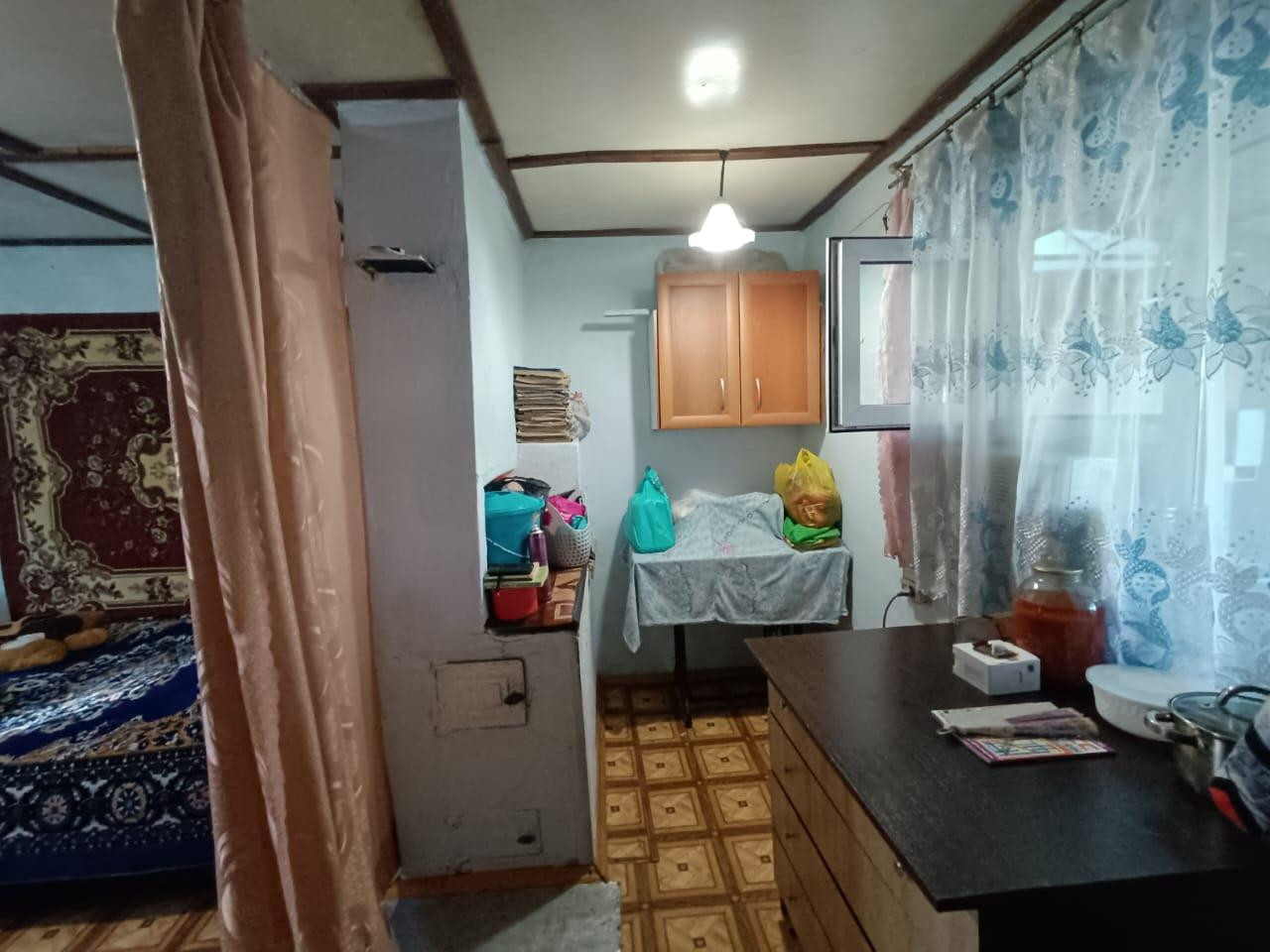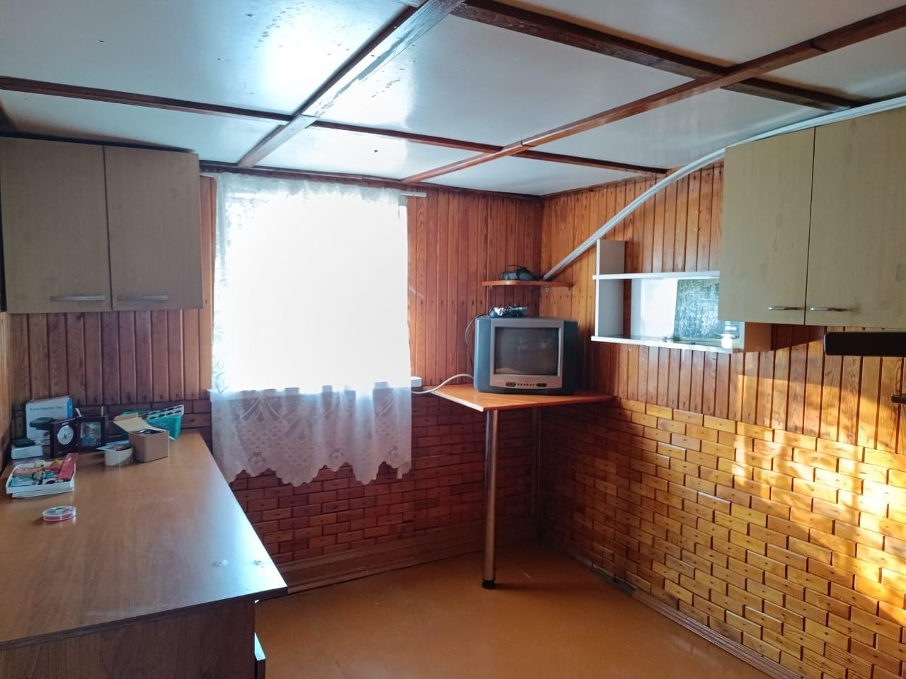 Дом жилой по документам, прописка есть. Прихожая с кухней, комната с печным отоплением, лестница на второй этаж, где еще одна комната с ремонтом.