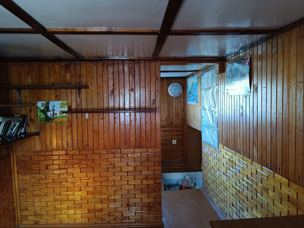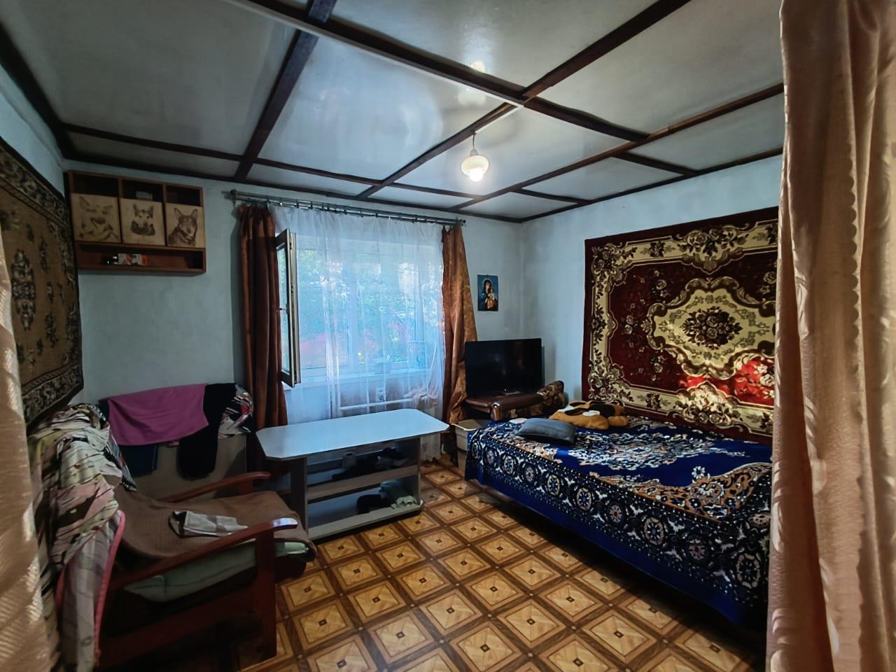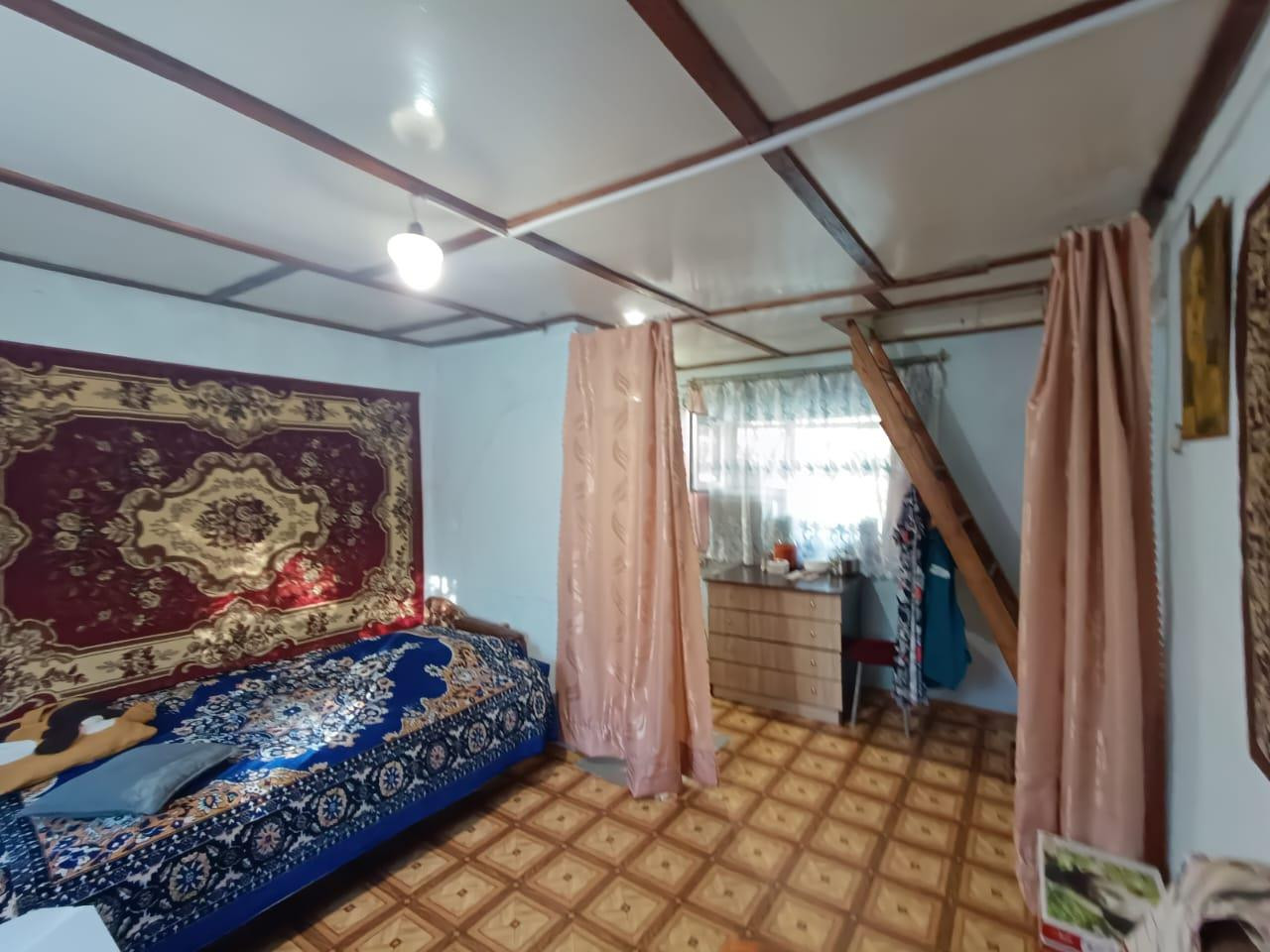 Дом жилой по документам, прописка есть. Прихожая с кухней, комната с печным отоплением, лестница на второй этаж, где еще одна комната с ремонтом.