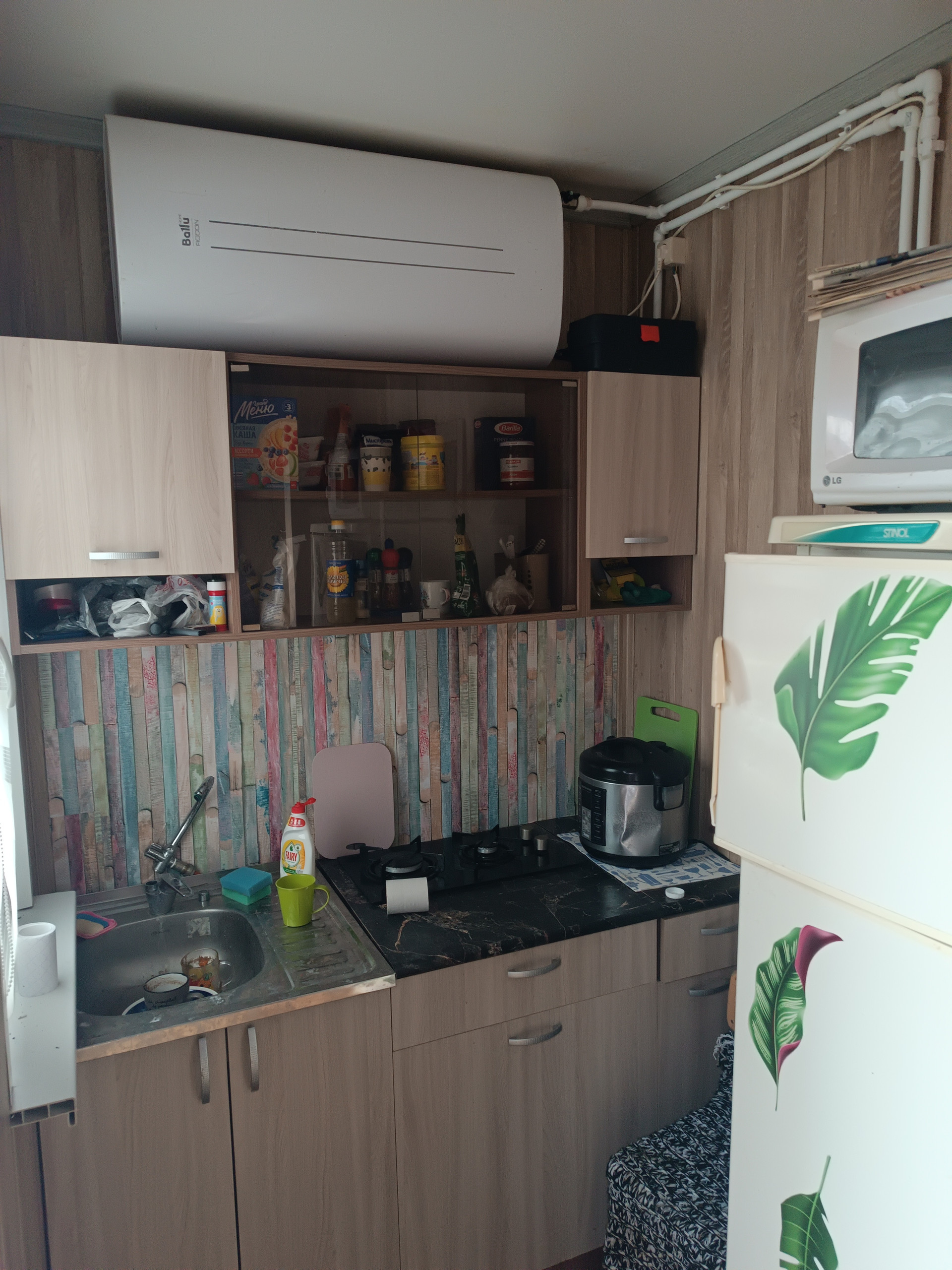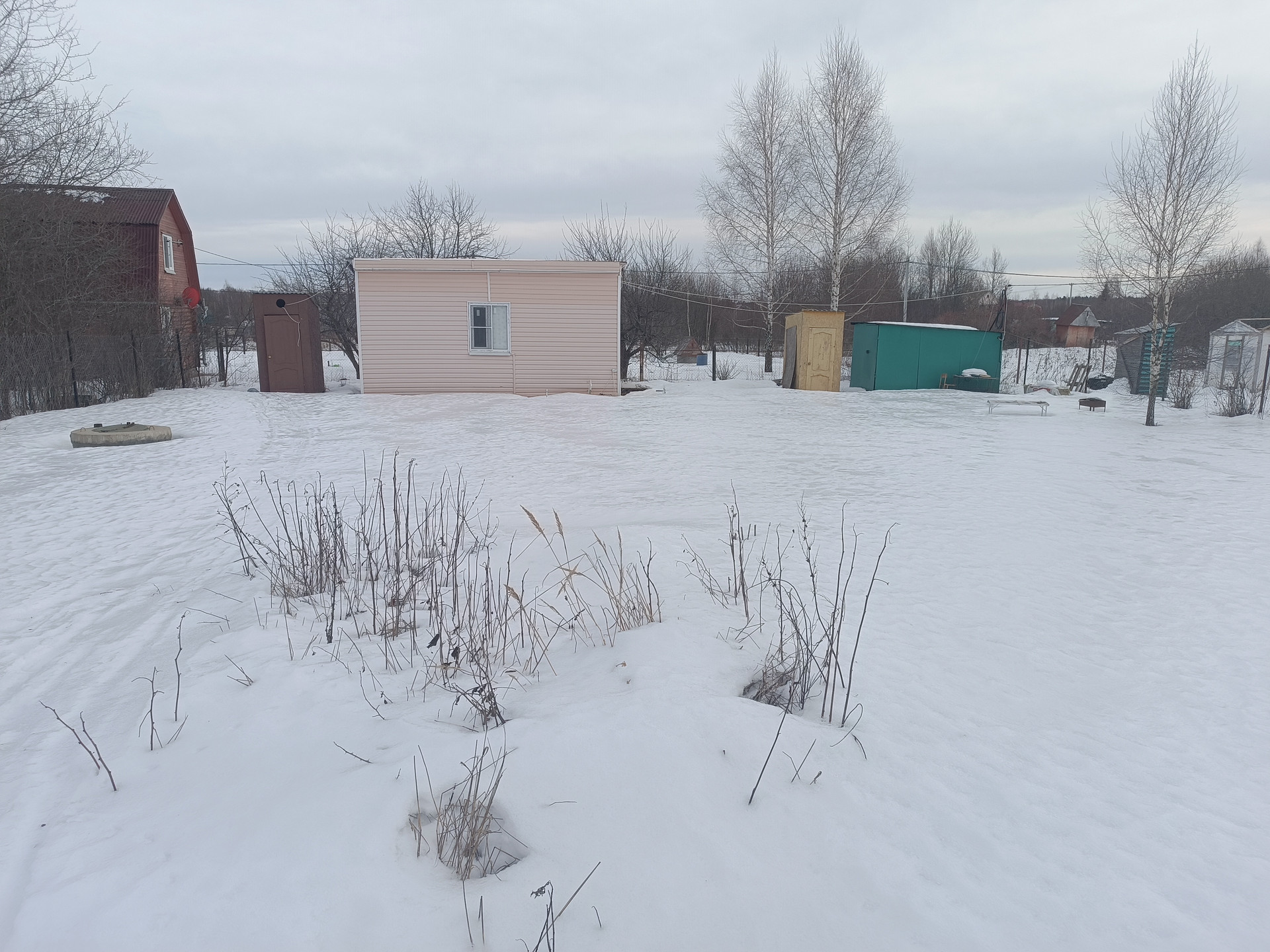 На участке имеется колодец с питьевой водой, разводка воды по дому и в душ, капитальный сарай из железа.  (Садовай инвентарь и 2 газонокосилки входят в стоимость) душ и туалет. В доме: Газ из баллона, спутниковое телевидение, холодильник, микроволновка,горячая вода(накопительный водонагреватель).дом модульный, утепленный, на бетонных сваях, окна пластиковае. Заезжай и живи круглогодично. Недавно установлен забор с воротами из профлиста.