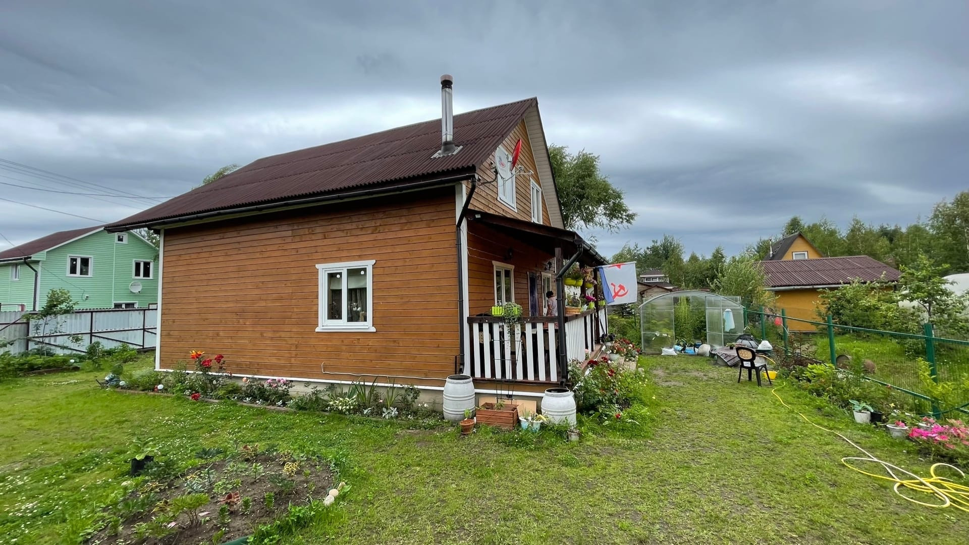 Каркасный тёплый дом на ленточном фундаменте построенный в 2017 году. На участок завезено 23 камаза земли и песка,сделан дренаж по всему периметру.Разработан-ровный. Откатные ворота. При просмотре желание пожить в доме появляется буквально с первых минут.Дом обшит доской под эмитацию бруса.Потолки три метра.Сделана отделка внутренняя с душою и любовью.Отопление камин и конвектор-этого достаточно чтобы дом содержался в тепле. 2 Санузла в доме,на первом и втором этажах.На первом этаже кухня и спальня с гостиной с выходом на летнюю терассу.На втором этаже три полноценных спальни. Вода в доме-насосная станция ,фильтры глубокой очистки ( с технической водою) имеется колодец также на участке с подключенной зимней водою. Септик установлен новый в 2021 году,имеется локальная канализация. Баня вместе с душевой построена в 2021 году. Банька просто шедевр какая чудесная.Имеется подсобный сарайчик также на участке.Есть плодоносящие деревья,кусты крыжовника и чёрной смородины,клубника,новая теплица3+4.,по периметру дома цветники.,красивые вековые ели и сосны.Развитое СНТ.Шлагбаум,охрана ,вьезд по пропускам. На территории СНТ три магазина продуты и один хоз.магазин.Один собственник.Просмотры по договорённости.