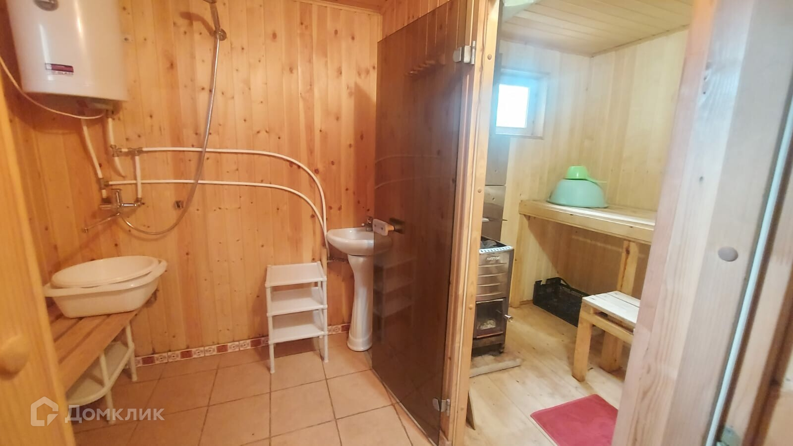 Дом со встроенной баней 24 кв.м и мансардой тоже 24 кв.м. Материал стен - брус. Комната отдыха в доме 12 метров, 4 кв.м парная, 4 кв.м мыльная, 4 кв.м коридор и предбанник. В бане итальянский бойлер, печь Harvia. Удобства на улице, в доме биотуалет.