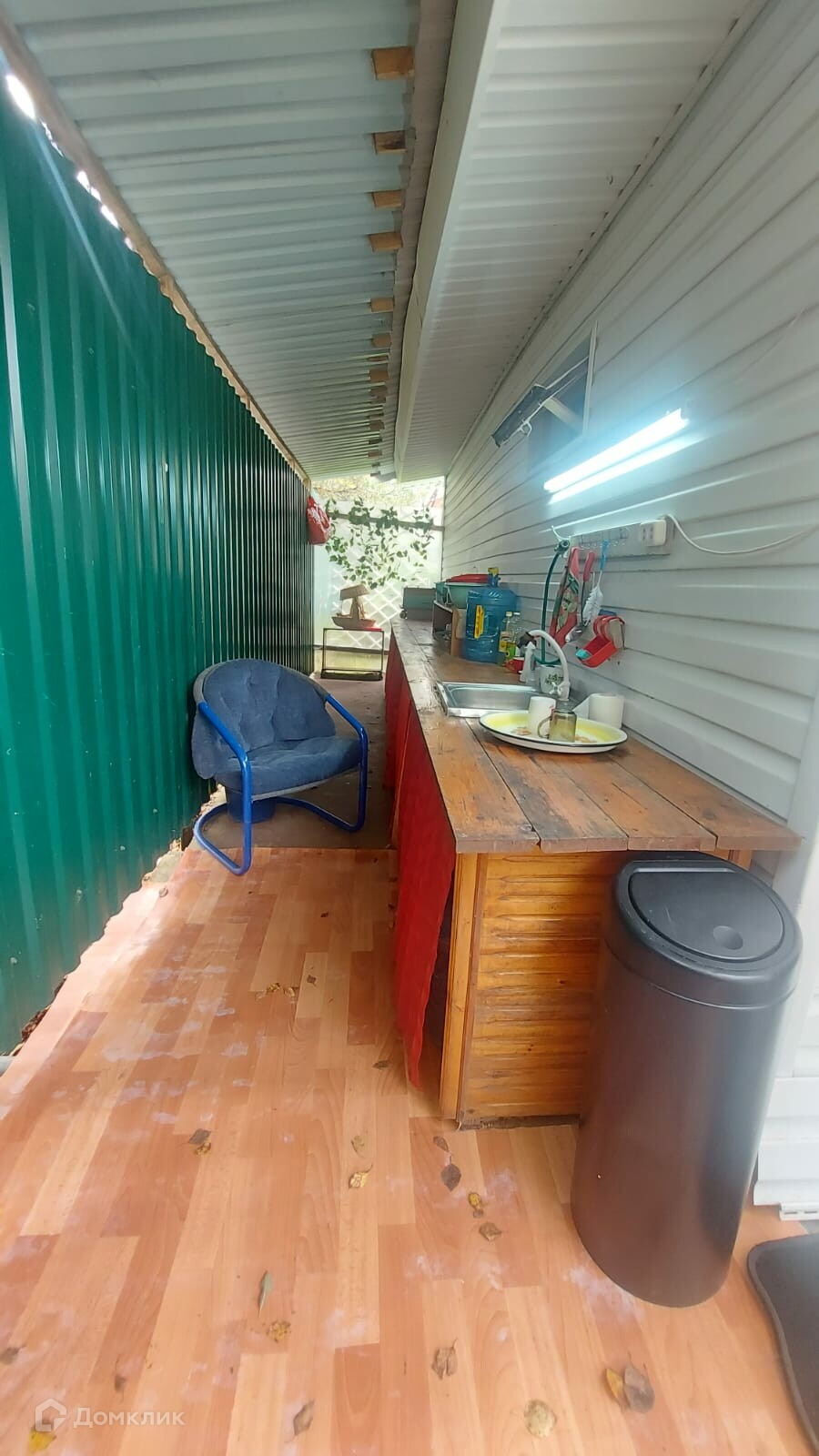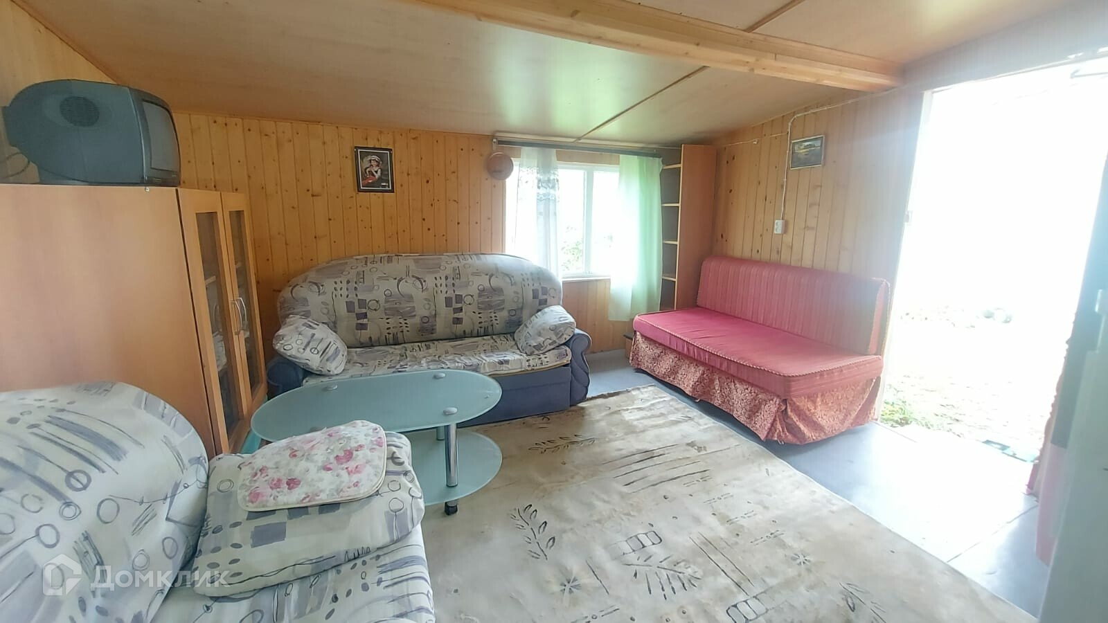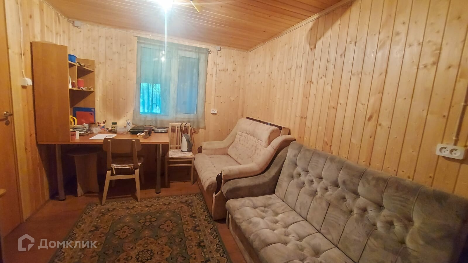 На участке также оборудованный вагончик из бруса с пристройкой. Все вместе 38 кв.м. Отделка внутри - полностью вагонкой, снаружи- сайдинг. Фундамента нет - на плите.