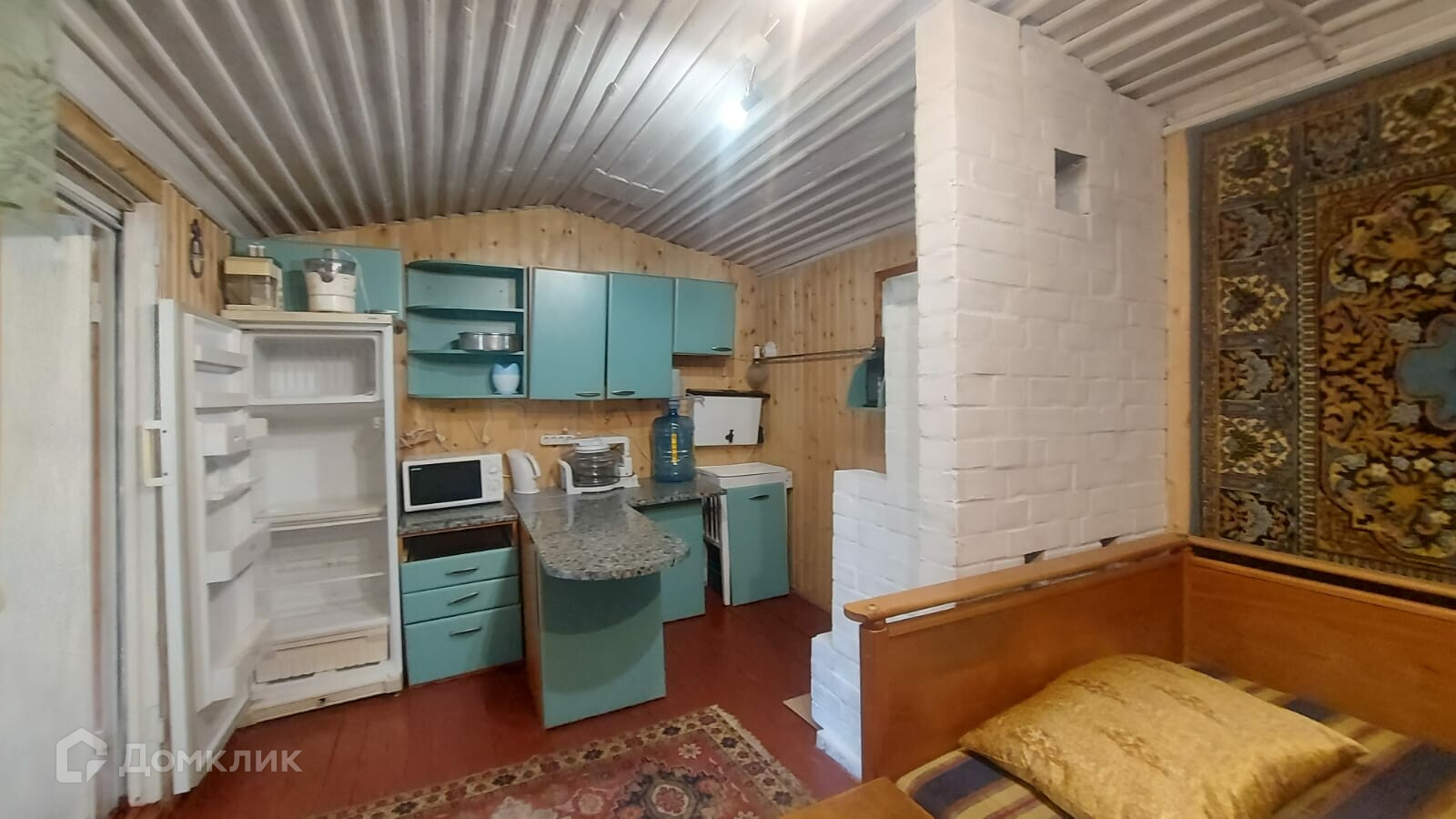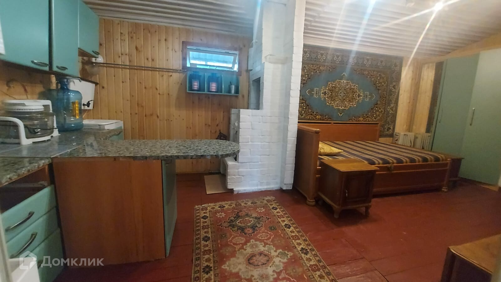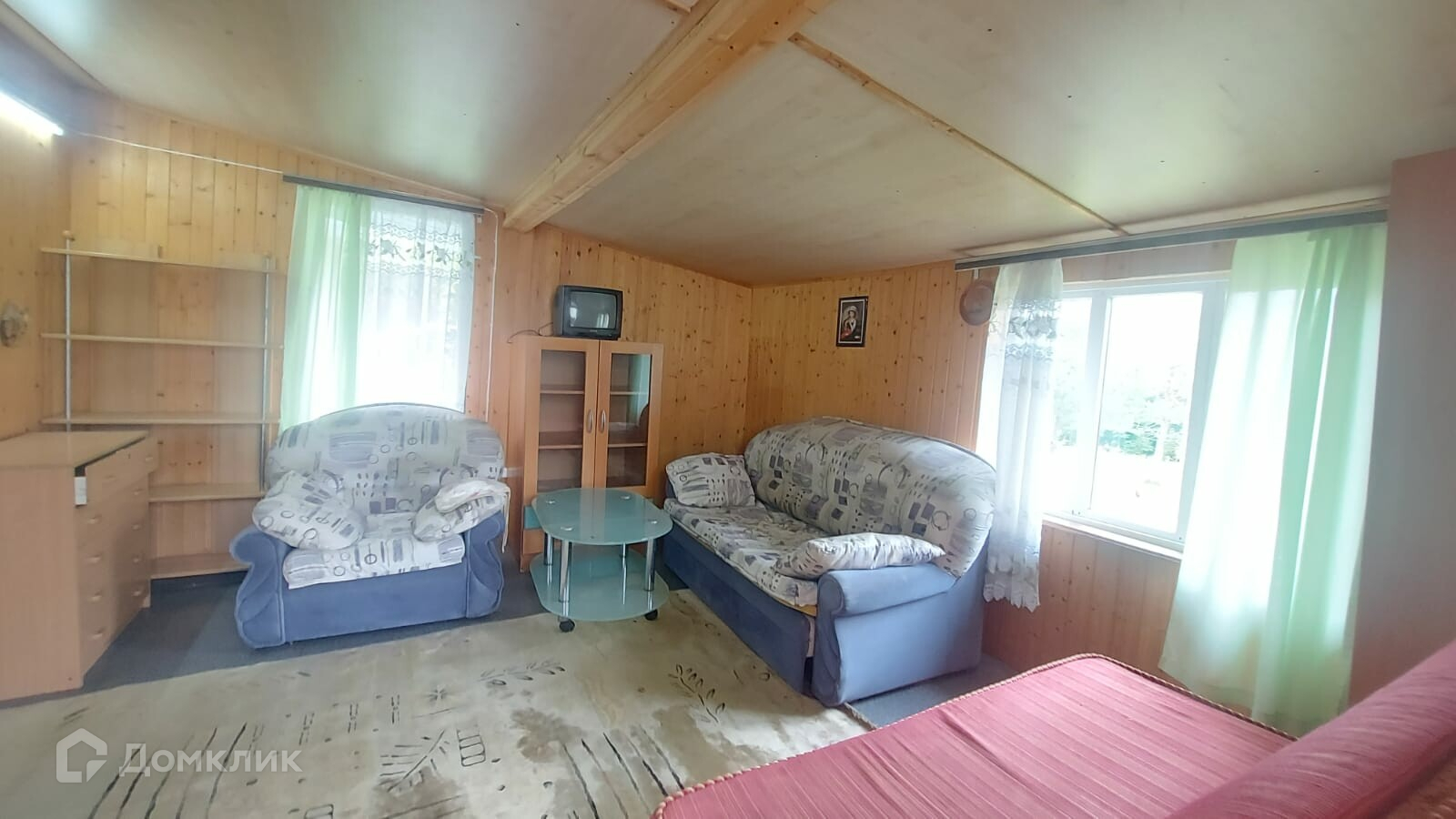 На участке также оборудованный вагончик из бруса с пристройкой. Все вместе 38 кв.м. Отделка внутри - полностью вагонкой, снаружи- сайдинг. Фундамента нет - на плите.