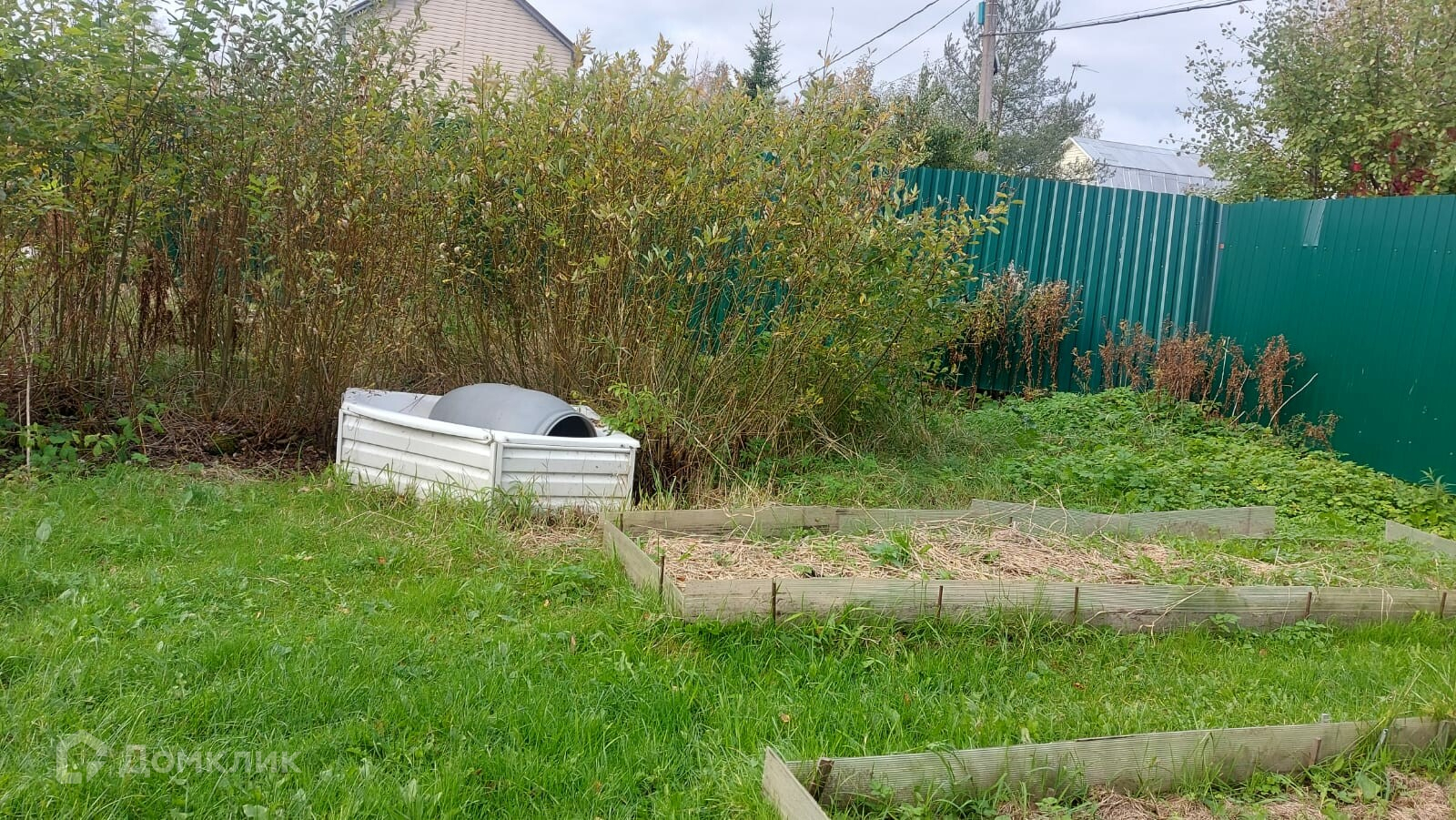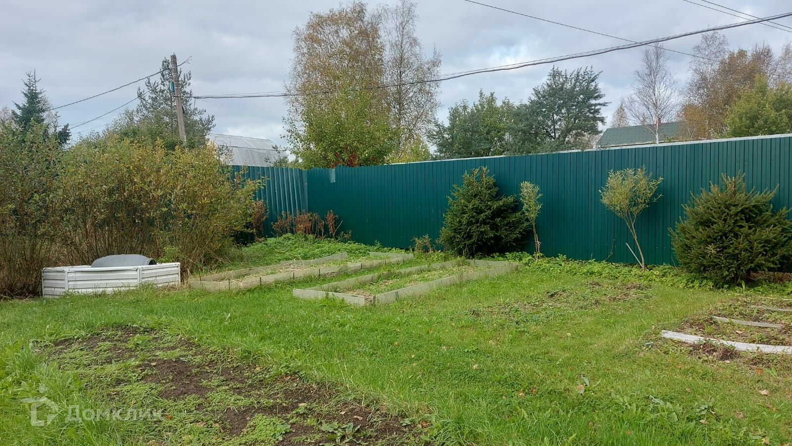 Участок разработан, растут садовые деревья, елки, ивы, облепиха, черемуха, плодоносная яблоня. Много ягод - малина, клубника, смородина. Очень много цветов, розы цветут до снега). Также есть летняя кухня и построен курятник.