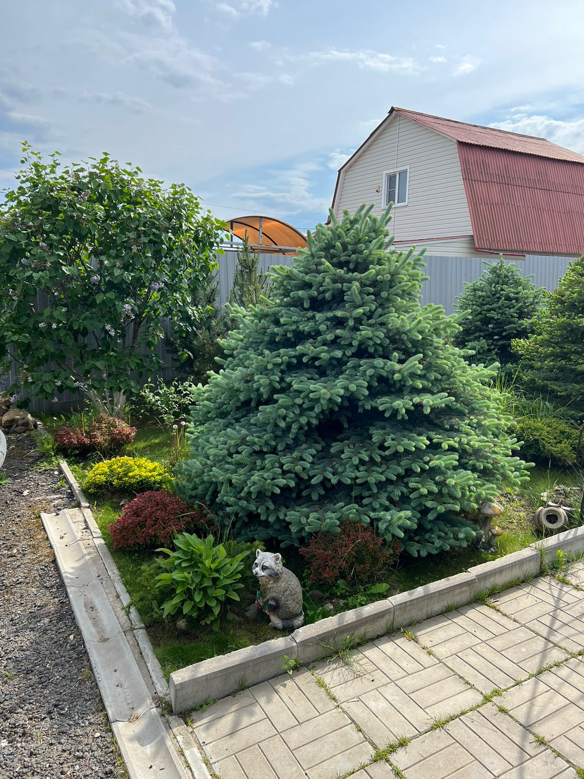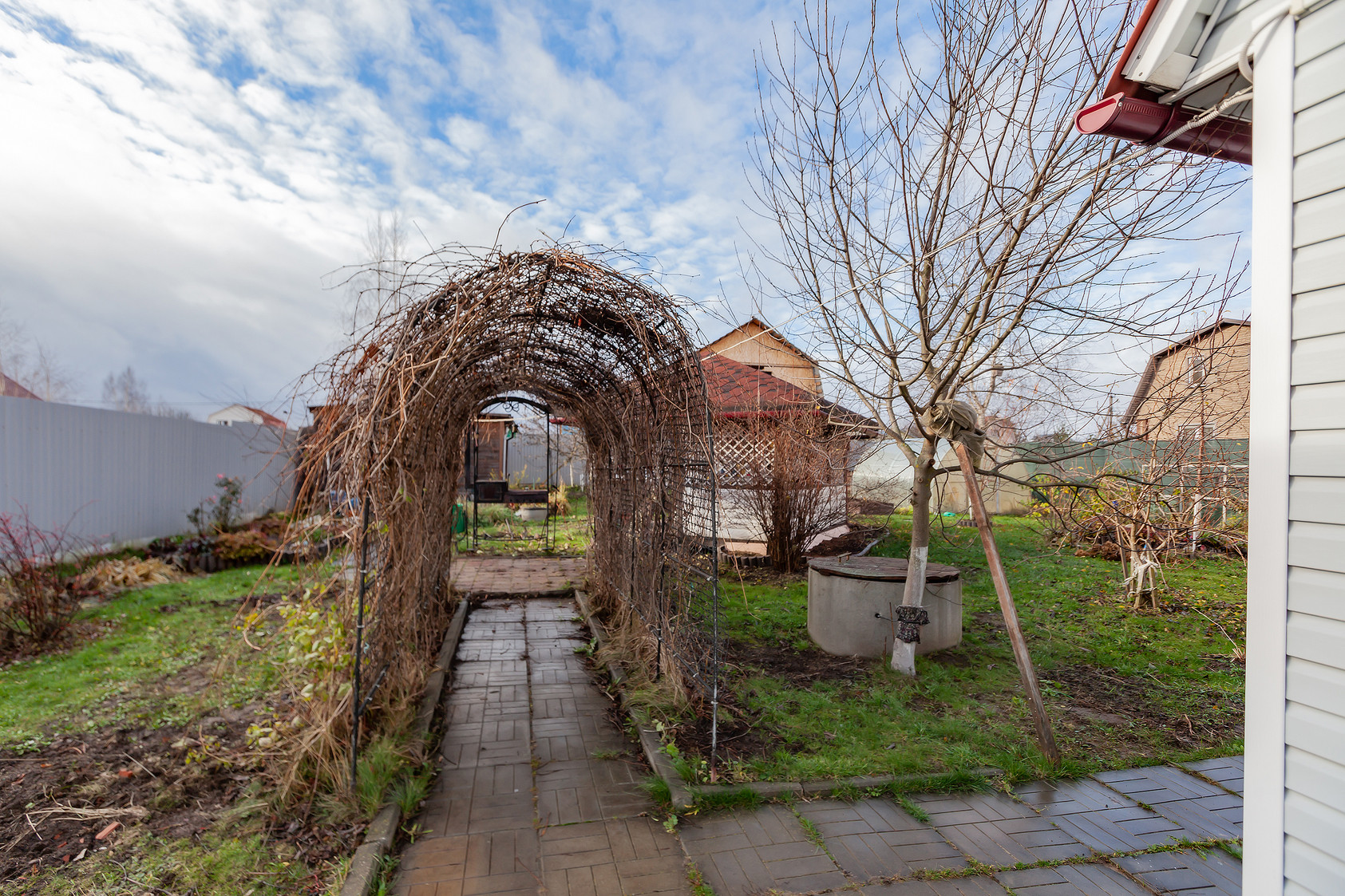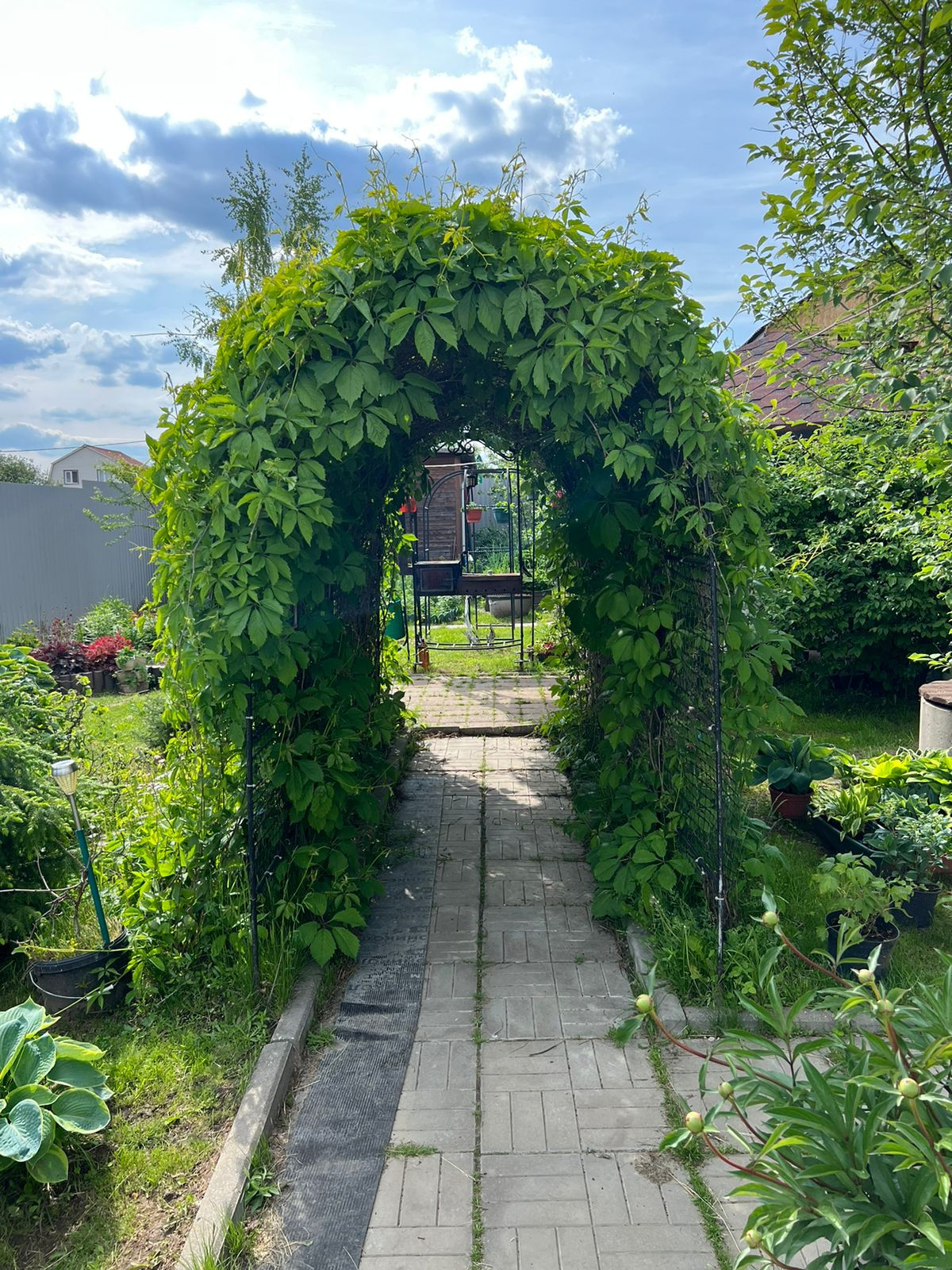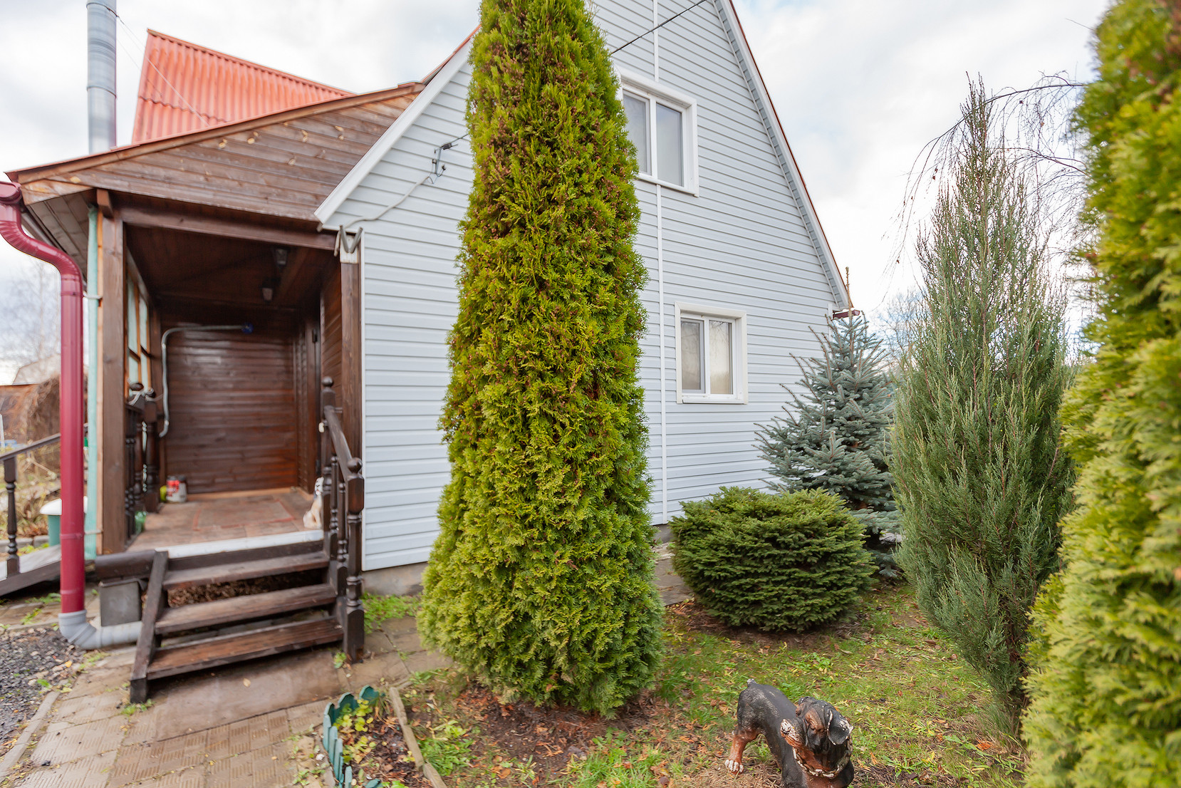 На участке обустроен парник, посажены плодовые деревья (яблони, груши, слива, персик) и кустарники (малина, ежевика). Есть вместительный хозблок, дровник и беседка.