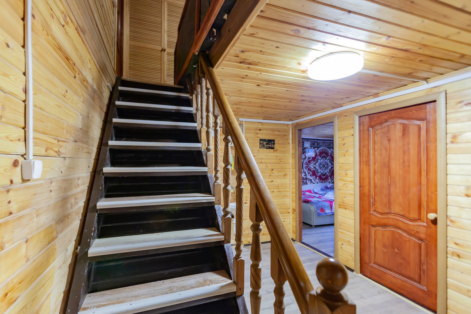 На втором этаже: коридор 9 кв.м. и три изолированные комнаты от 13,5 до 14,5 метров.
