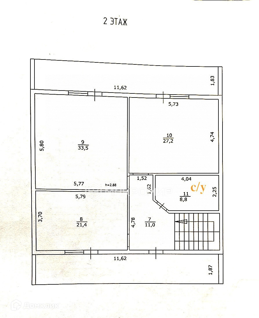 На втором этаже: три больших изолированных комнаты, два освещаемых балкона и сан узел.