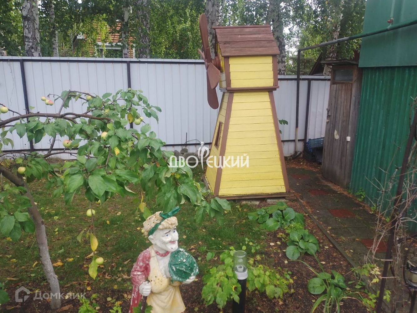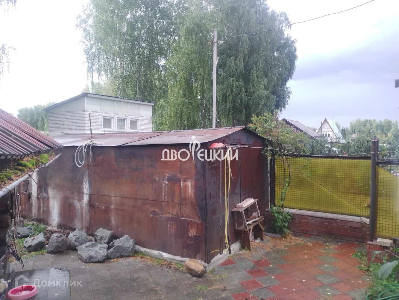 - Три стороны огражденные забором ( профнастил, сетка рабица ) , центральной ( вход/заезд ) ворота из профнастила.