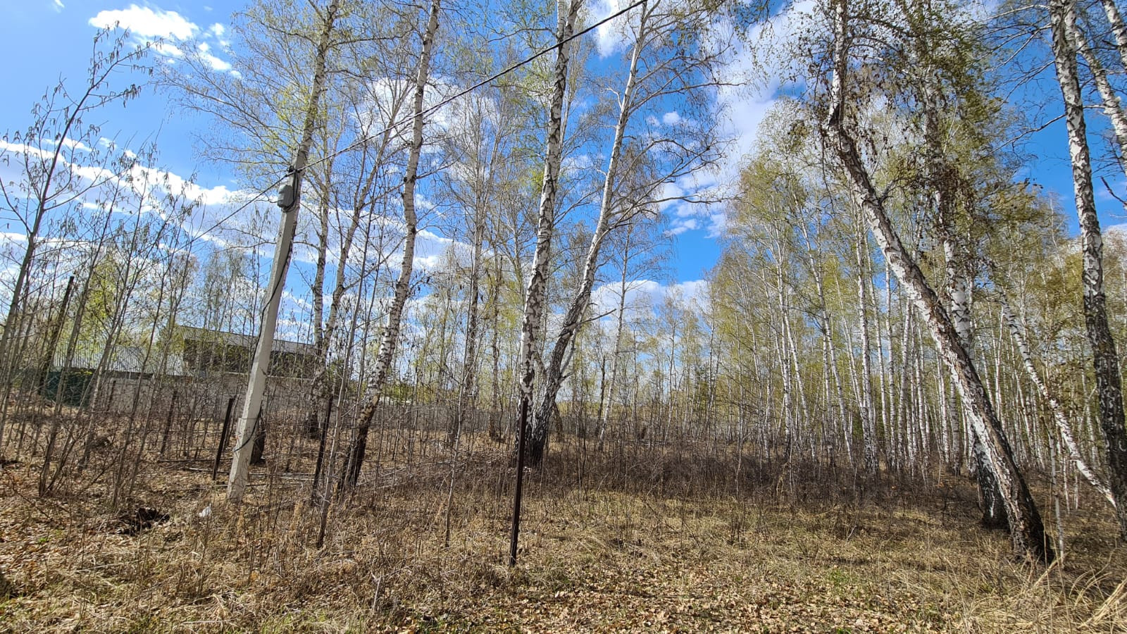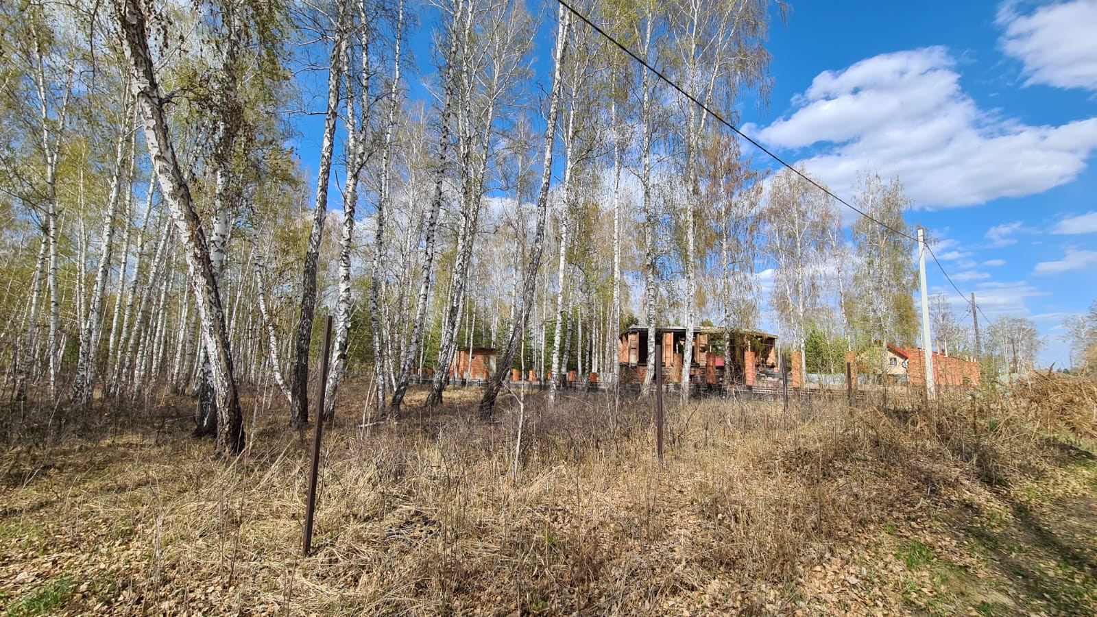 Участок расположен у леса, выполнено межевание, выделены границы (вешки и столбы по фасаду), установлены электрические столбы.