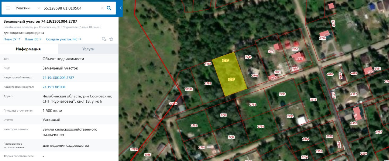Кадастровый номер участка 74:19:1301004:2788, рядом расположен второй наш участок (15 соток) его тоже можно приобрести.
