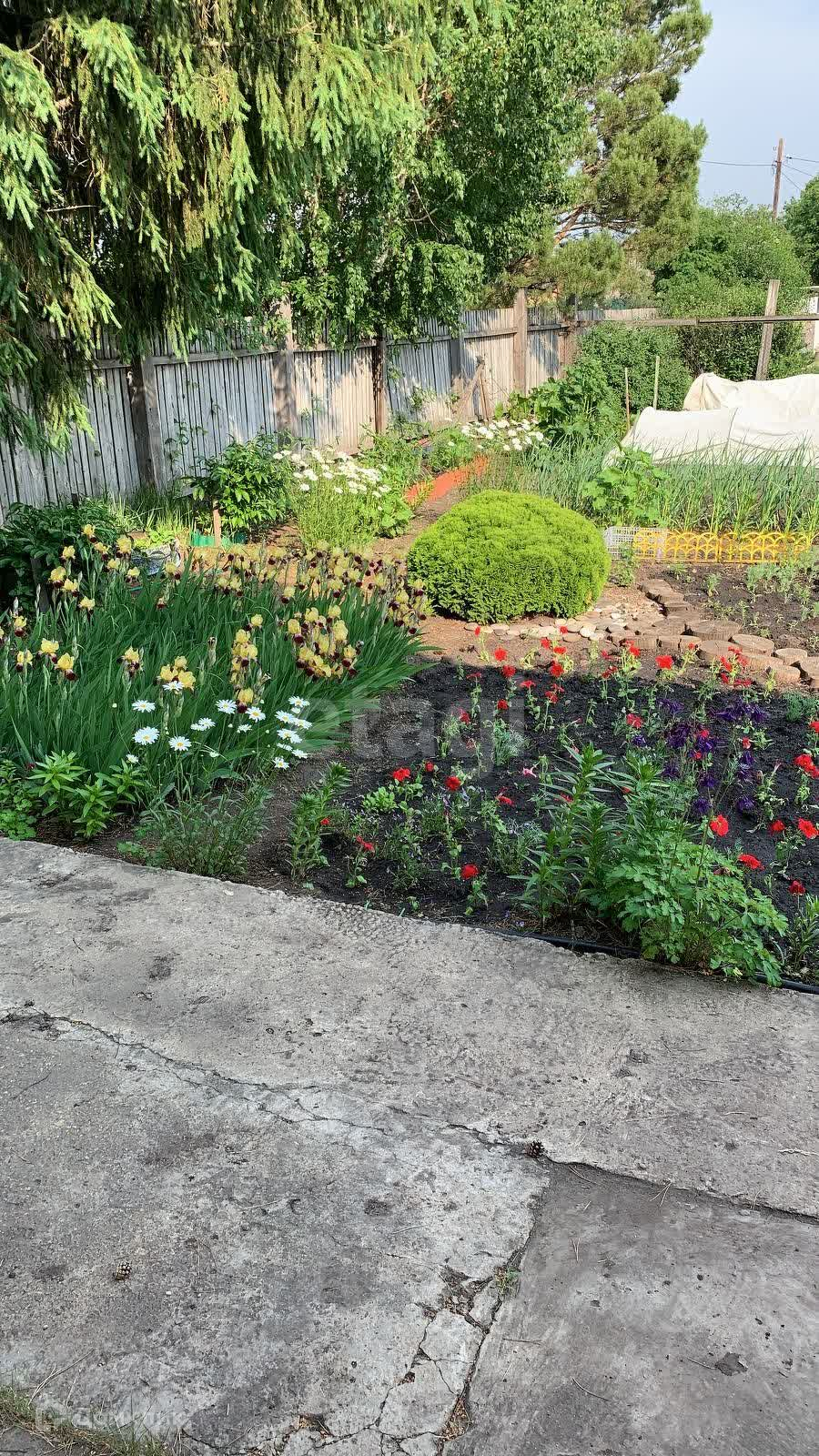 На участке растут яблоки, облепиха, клубника, ирга, вишня и жимолость. Так же сирень, сосны и клен.