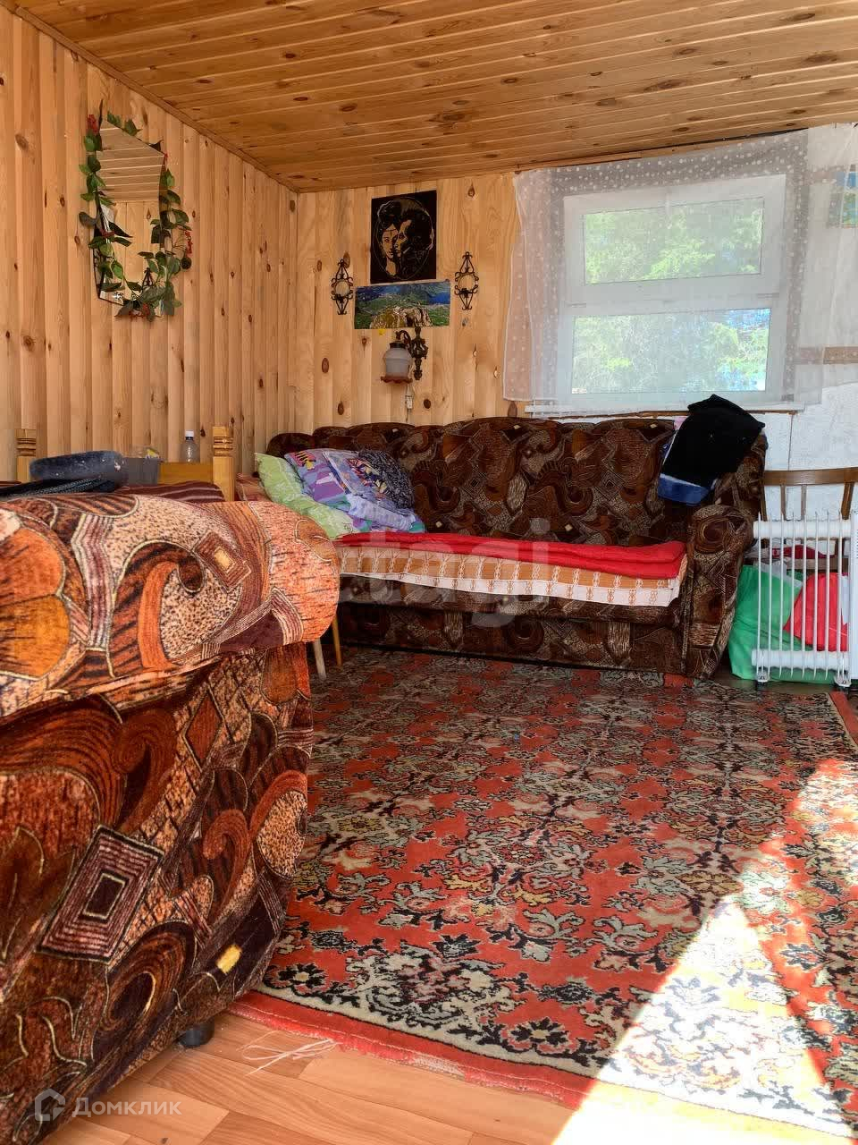 Стены обшиты деревом.