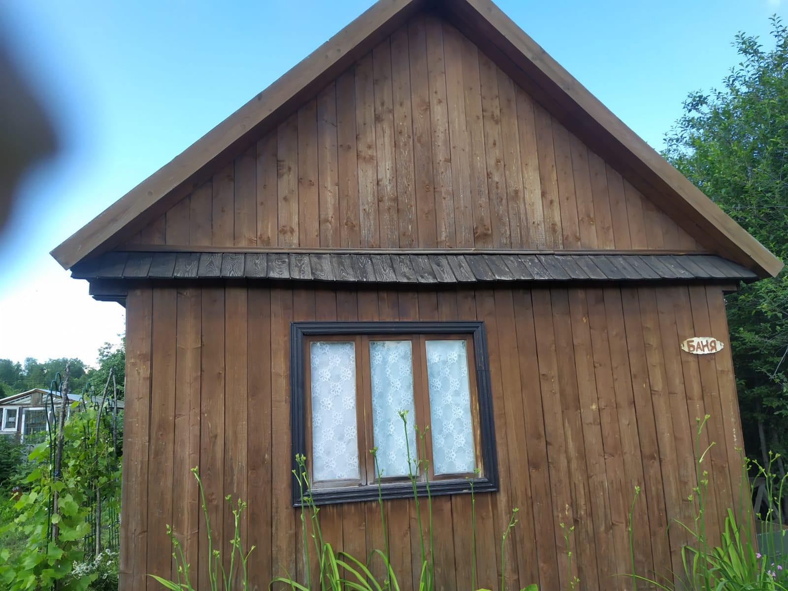 На участке построен 2-х этажный капитальный дом. Новая застеленная крыша дома. В доме 2 этажа отделанные вагонкой, очень стильно и красиво. На территории построена баня с предбанником (действующая, рабочая), так же обшита вагонкой. Хозблок.