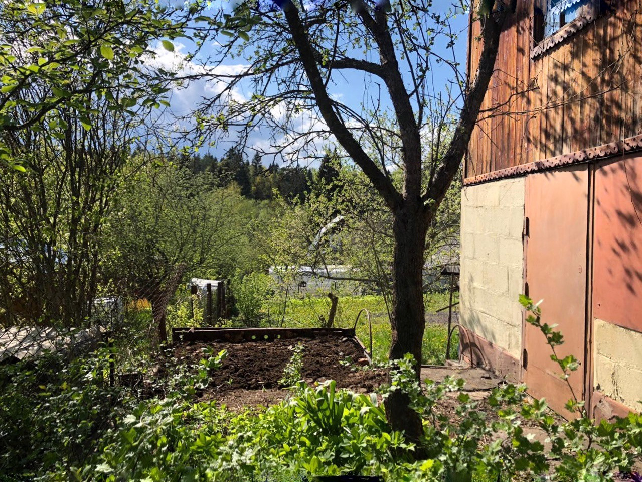 Большой зеленый участок, 18х34, соседи спокойные. На участке есть яблони, крыжовник, смородина. Земля оч