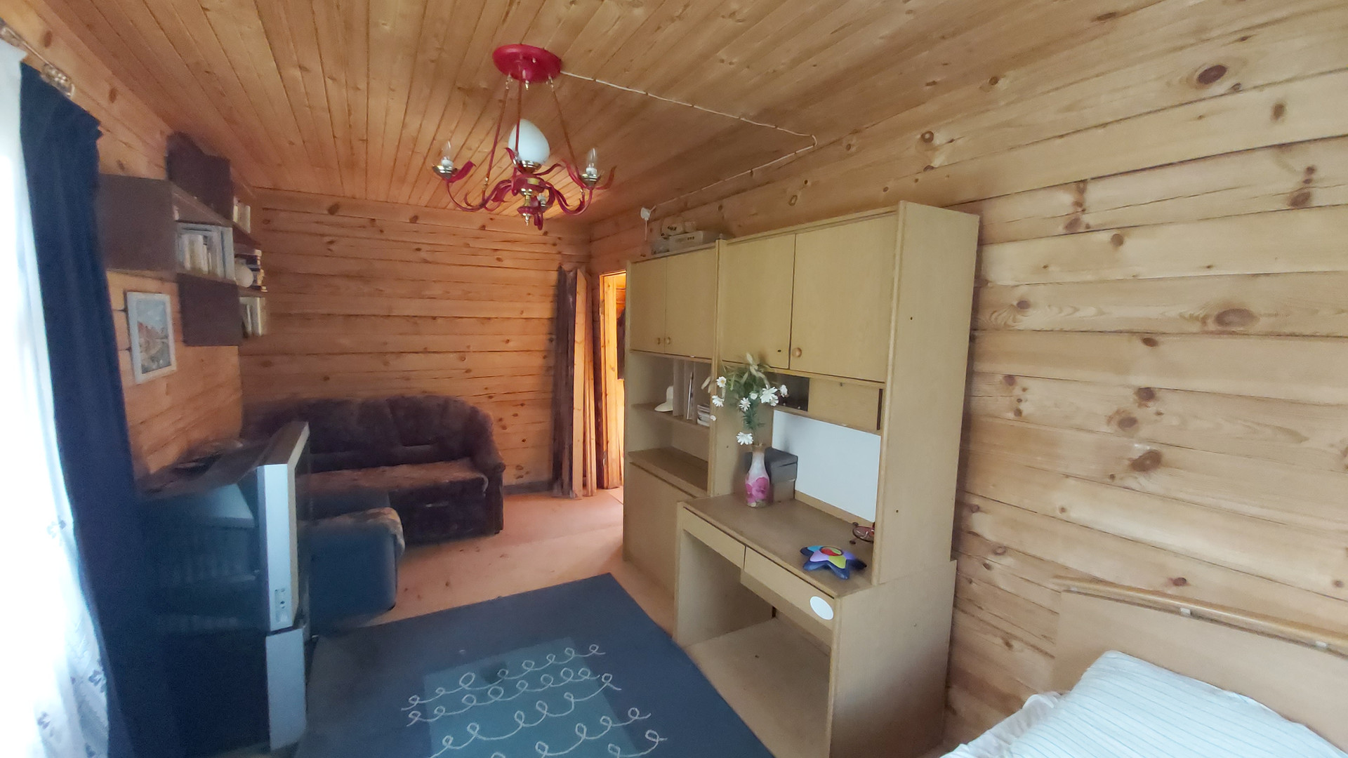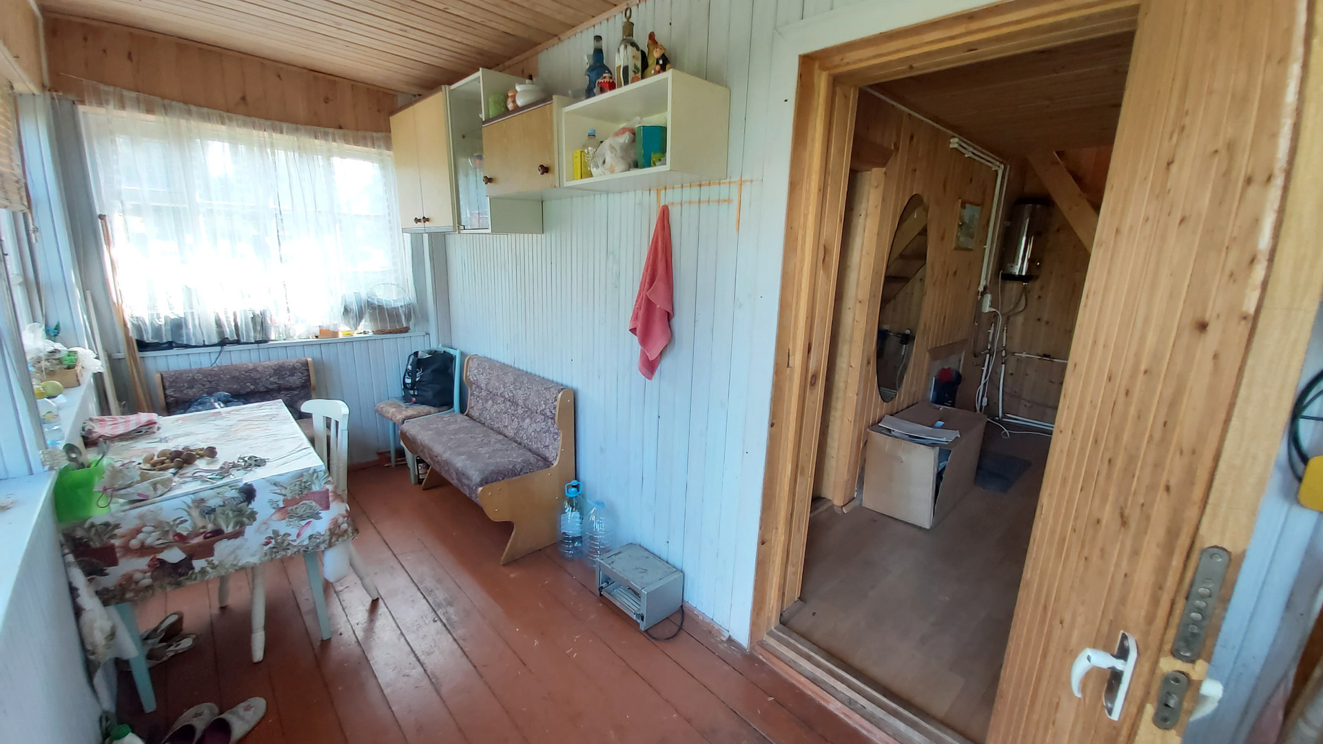 Дом из бруса, 6х6, на первом этаже прихожая и две комнаты маленькая примерно 10м2, большая примерно 18м2.