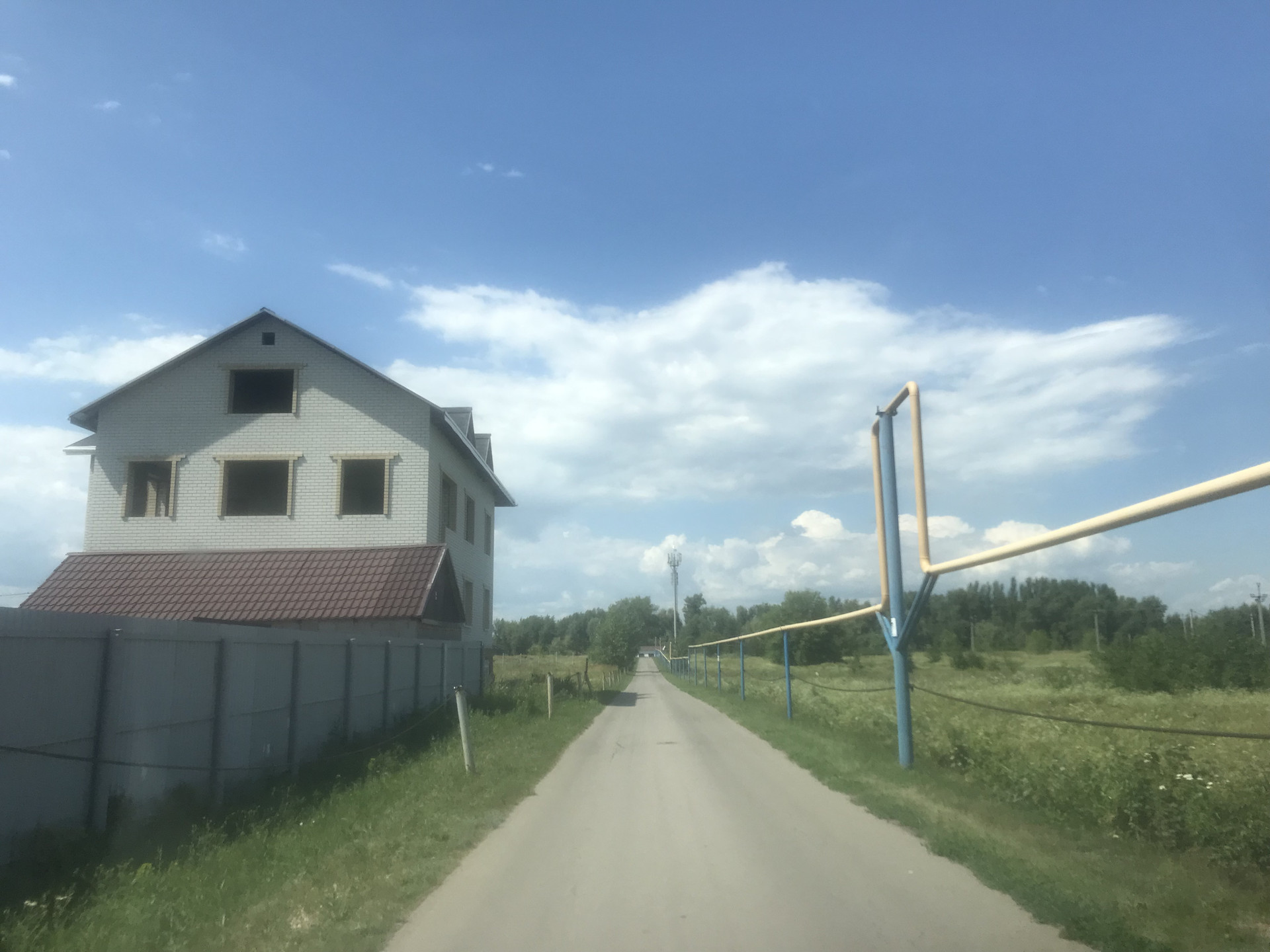 Вдоль участка проходит газовая труба и электрические столбы. Из-за своего размера, к участку есть подъезд с двух улиц.