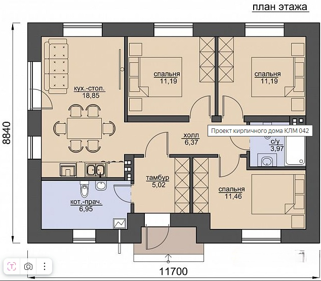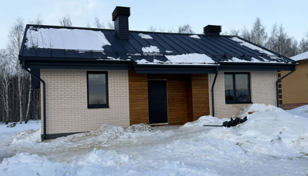 Дом 86кв.м. на любом участке. Дом выполнен в черновой отделке. Фундамент свайно-ростверковый, стены из шлакоблока, каменная вата, облицовочный кирпич. Все коммуникации в доме проведены. Пластиковые окна, входная дверь(термо). Теплый потолок.