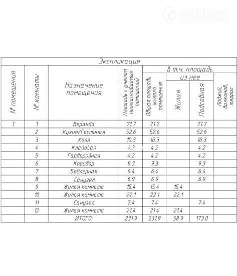 Общая площадь 231.9 м2