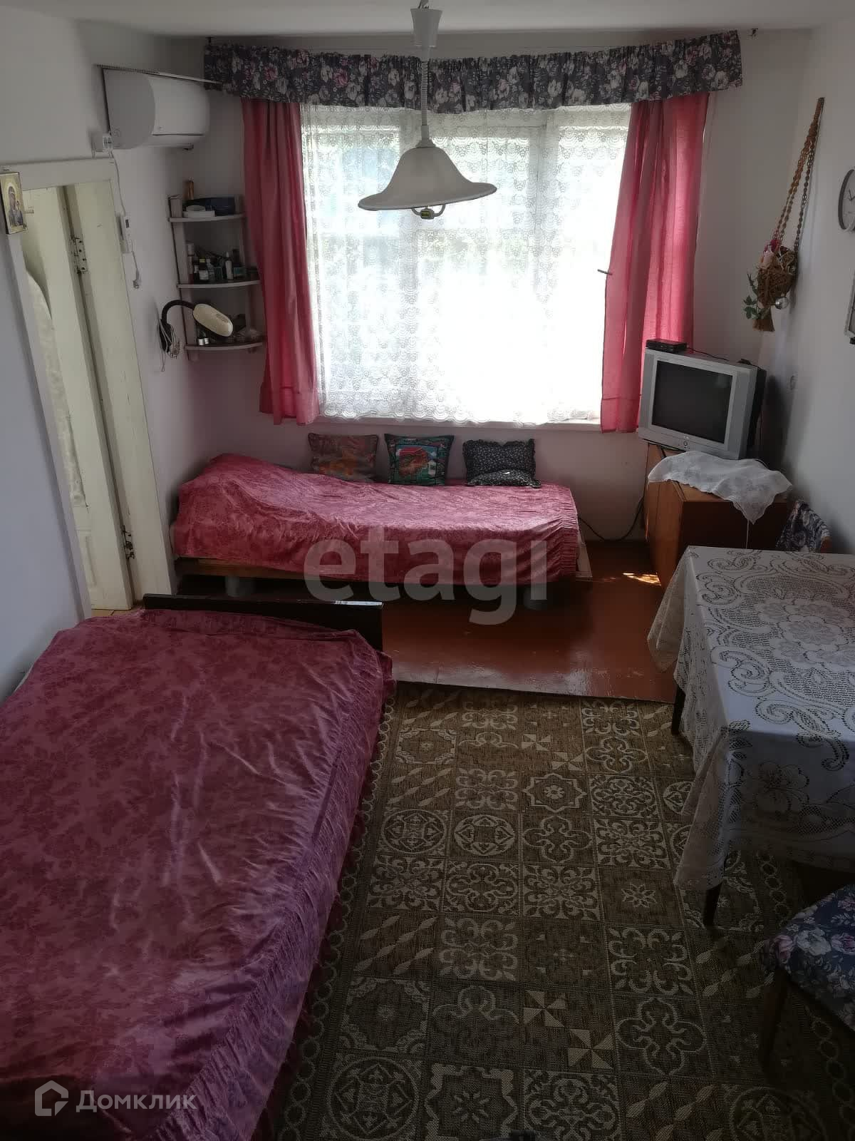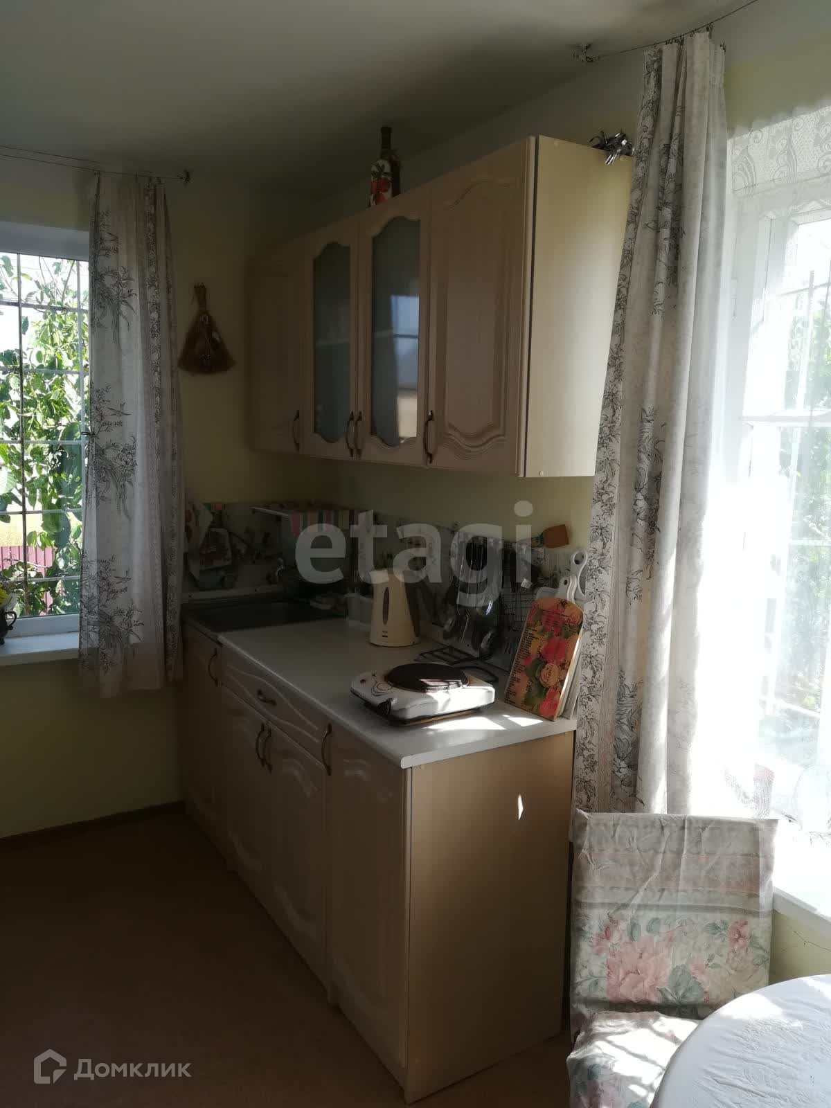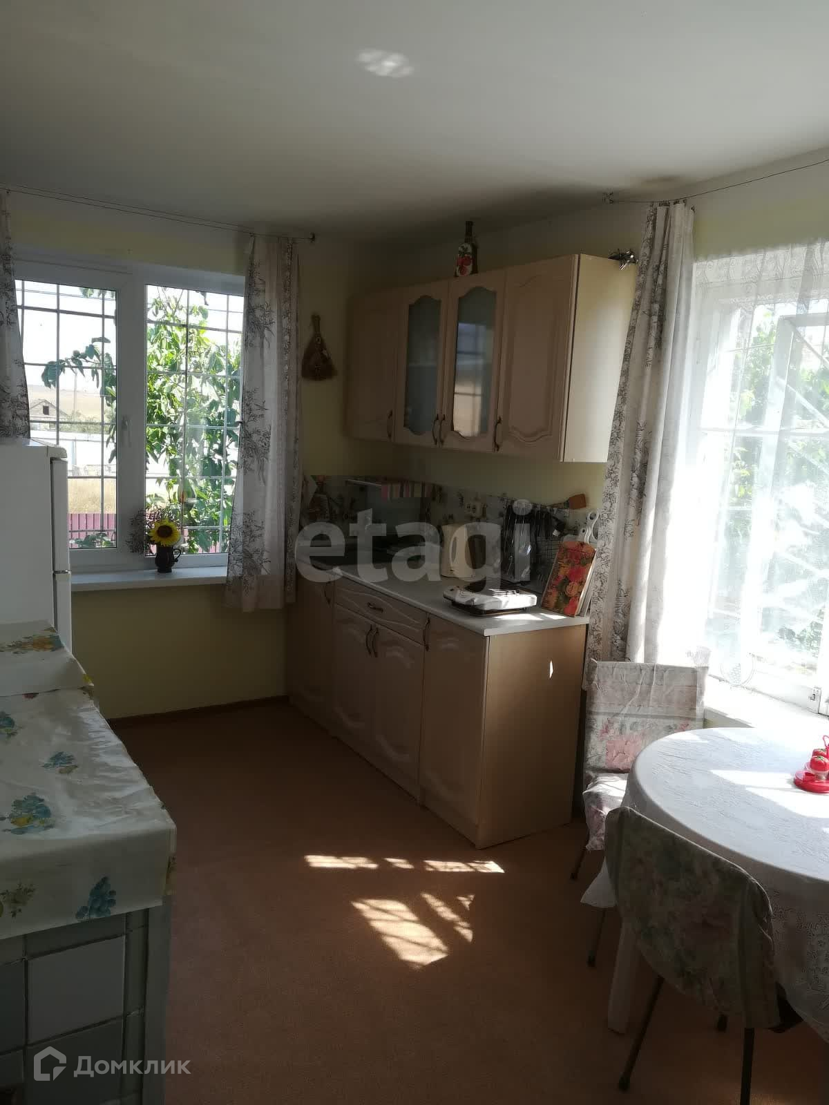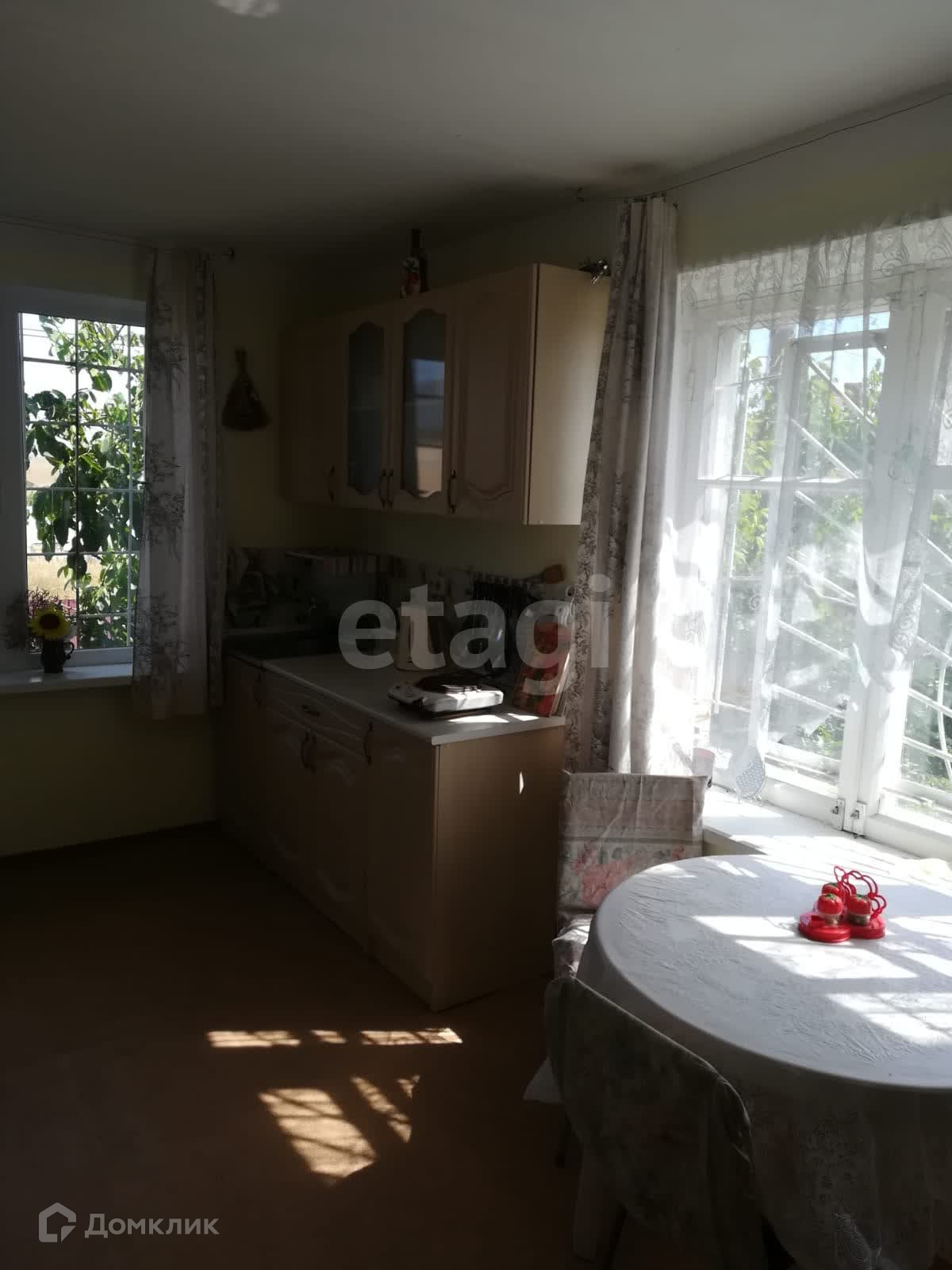 Дача построена из экологически чистого стройматериала – камня-ракушечника, отделка короед. Две комнаты и кухня. Есть цокольный этаж, подвал, гараж. Первый этаж - кухня, комната. Второй этаж спальня, веранда. Печное отопление, электричество, вода питьевая и для полива, кондиционер. Хозяйственные постройки; летний душ, туалет, курятник. Санузел во дворе. На участке большой сад с фруктовыми деревьями.