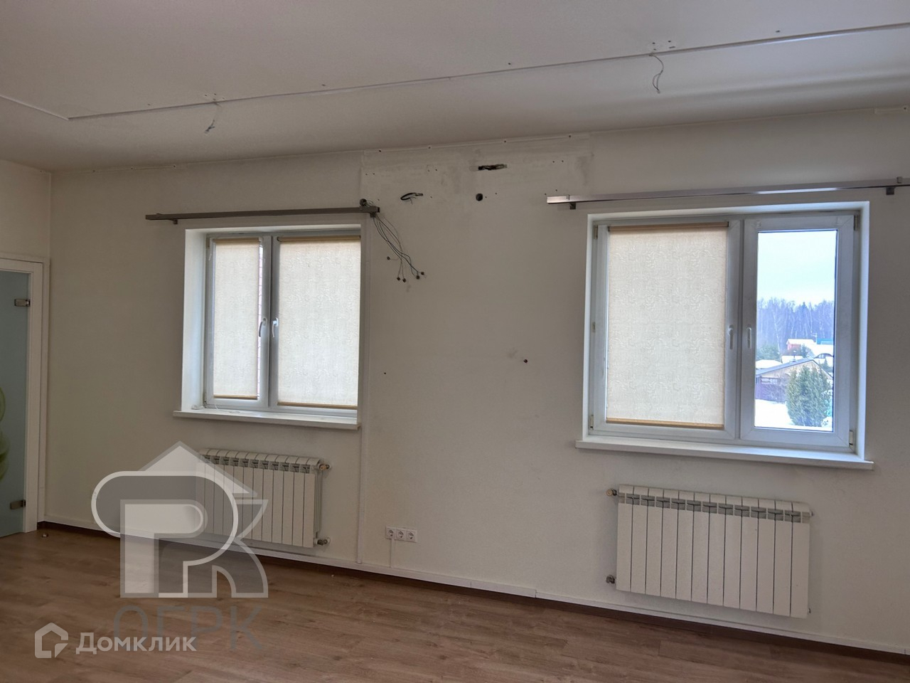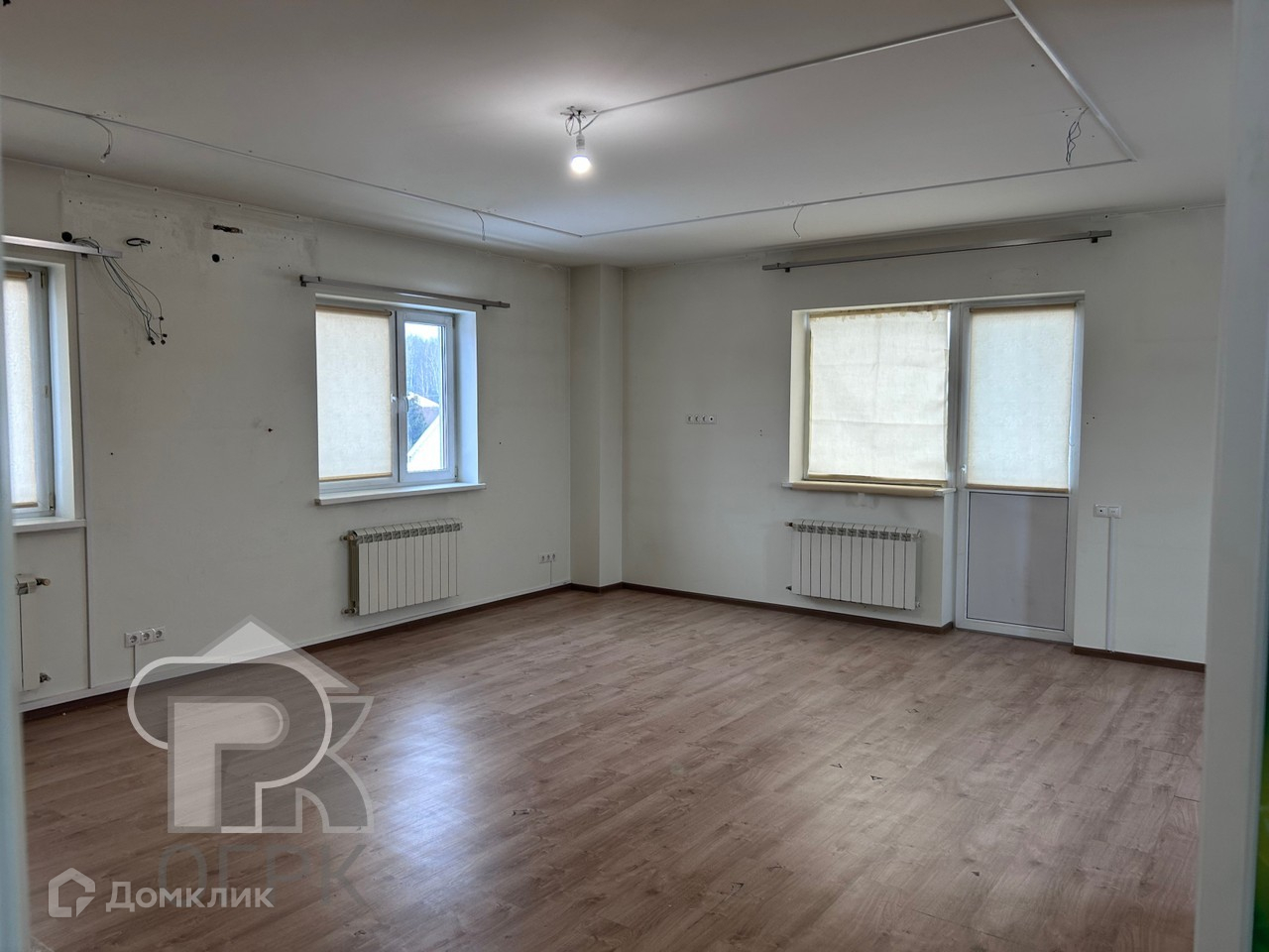 В доме уютная кухня-гостиная с декоративным подиумом 38,2 кв.м, две спальни с большими окнами 15,2 и 44 кв.м (возможно разделить на две спальни, много окон), два санузла, высокие потолки.