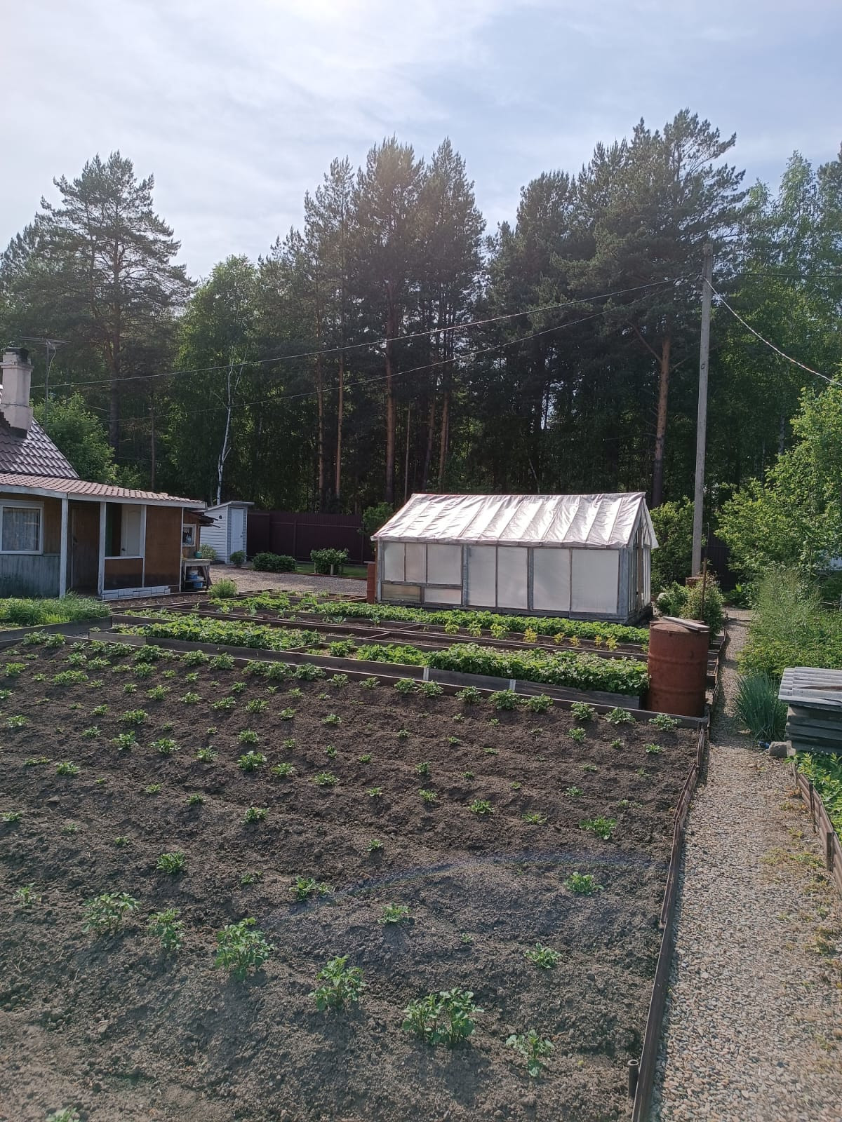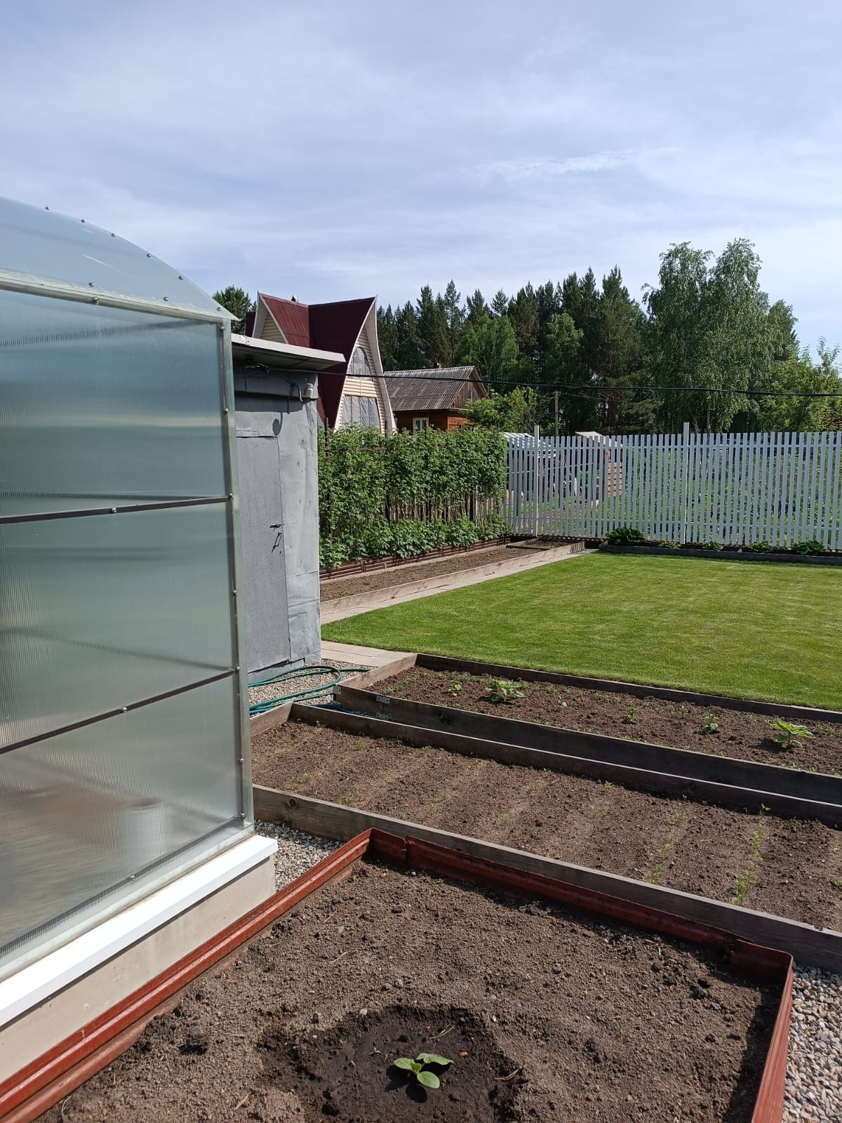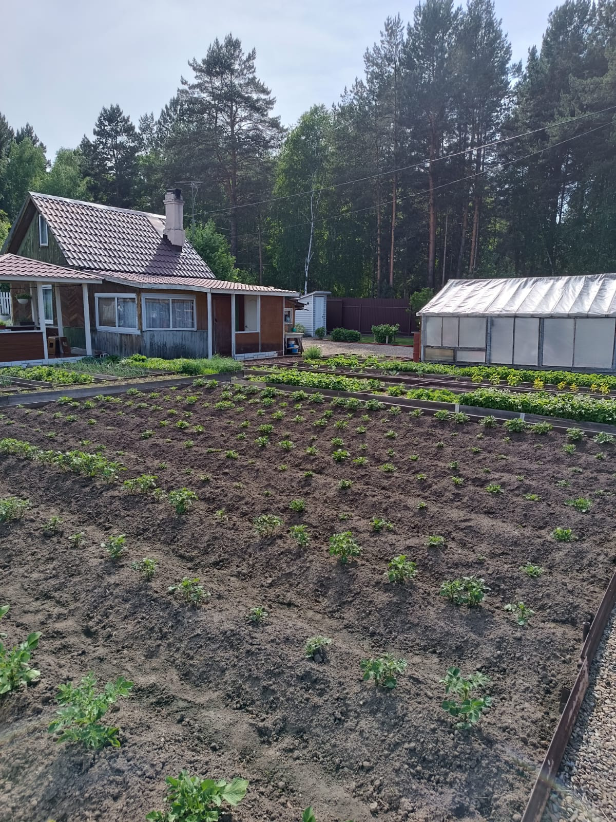 Участок ухоженный, грядки, посадили картошку, растет малина, смородина, слива, пионы земляника…