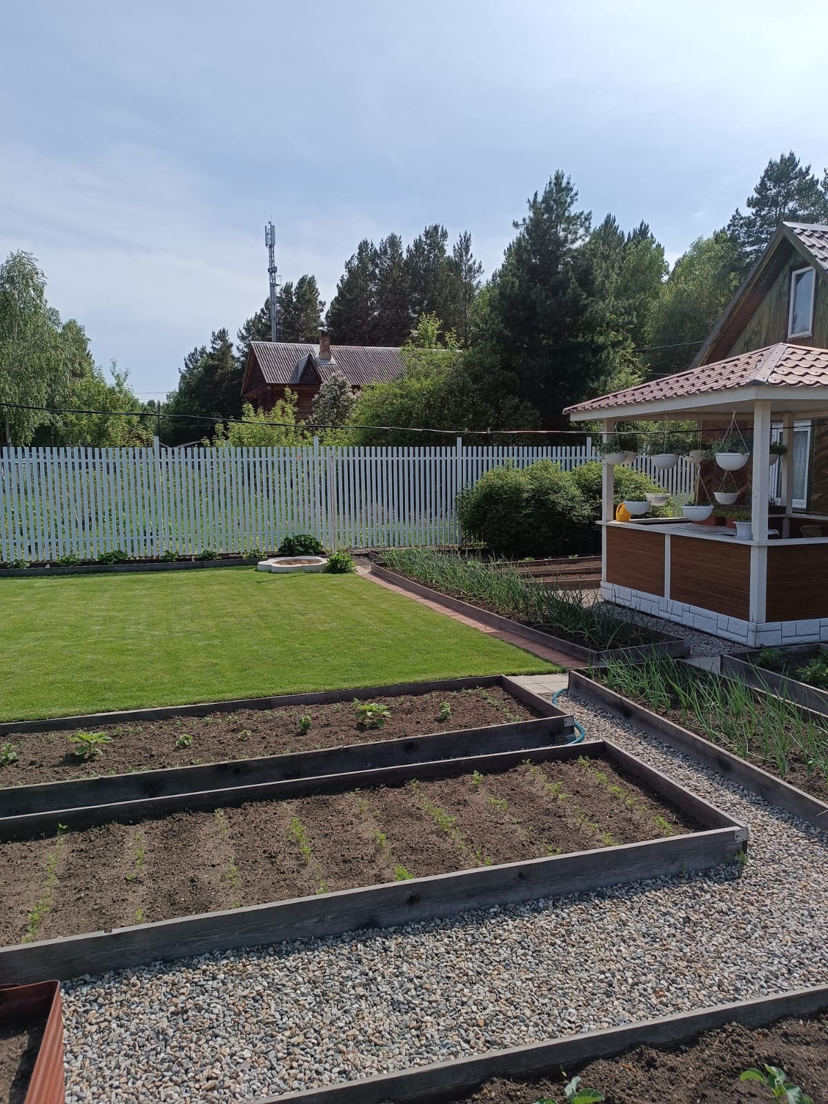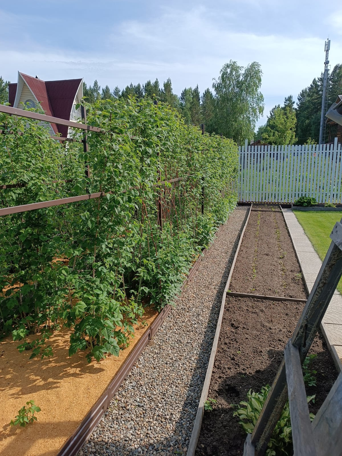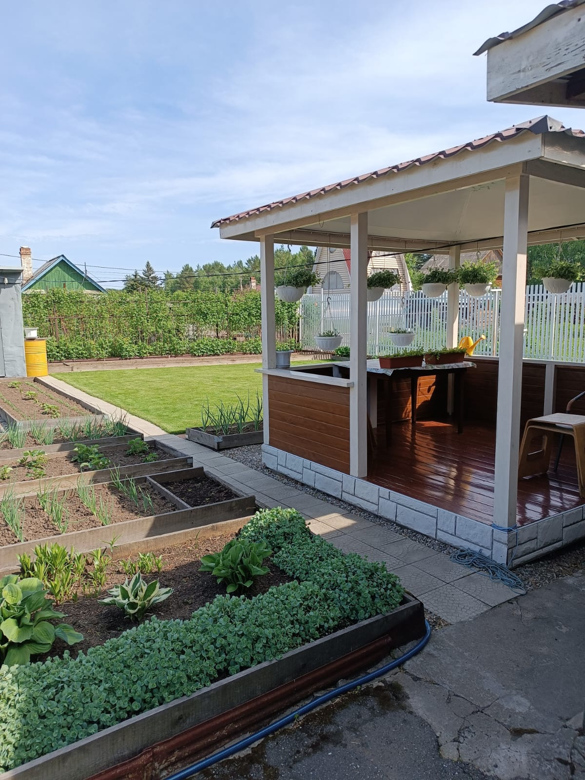 Участок ухоженный, грядки, посадили картошку, растет малина, смородина, слива, пионы земляника…