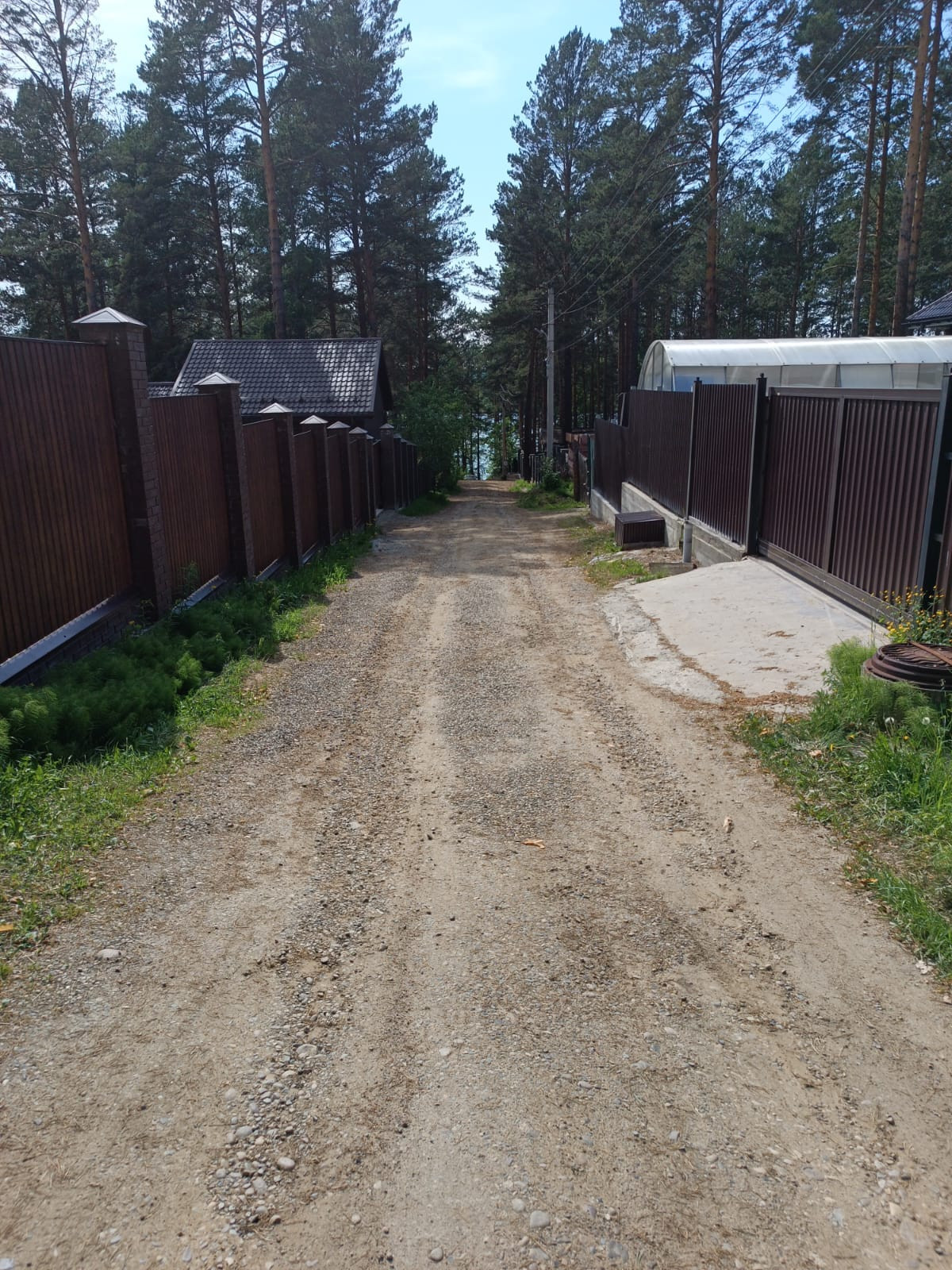 Асфальтовая дорога почти до участка, в 2х минутах ходьбы залив, рядом сосновый лес.