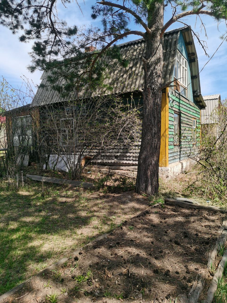 Продается дачный участок с двухэтажным домом и баней, теплицами и насаждениями. Электричество, летний водопровод. В доме есть подвал. На участке растут сосны, фруктовые деревья, кустарники, Грядка и парники. Железная емкость для полива, скамейки, стол.