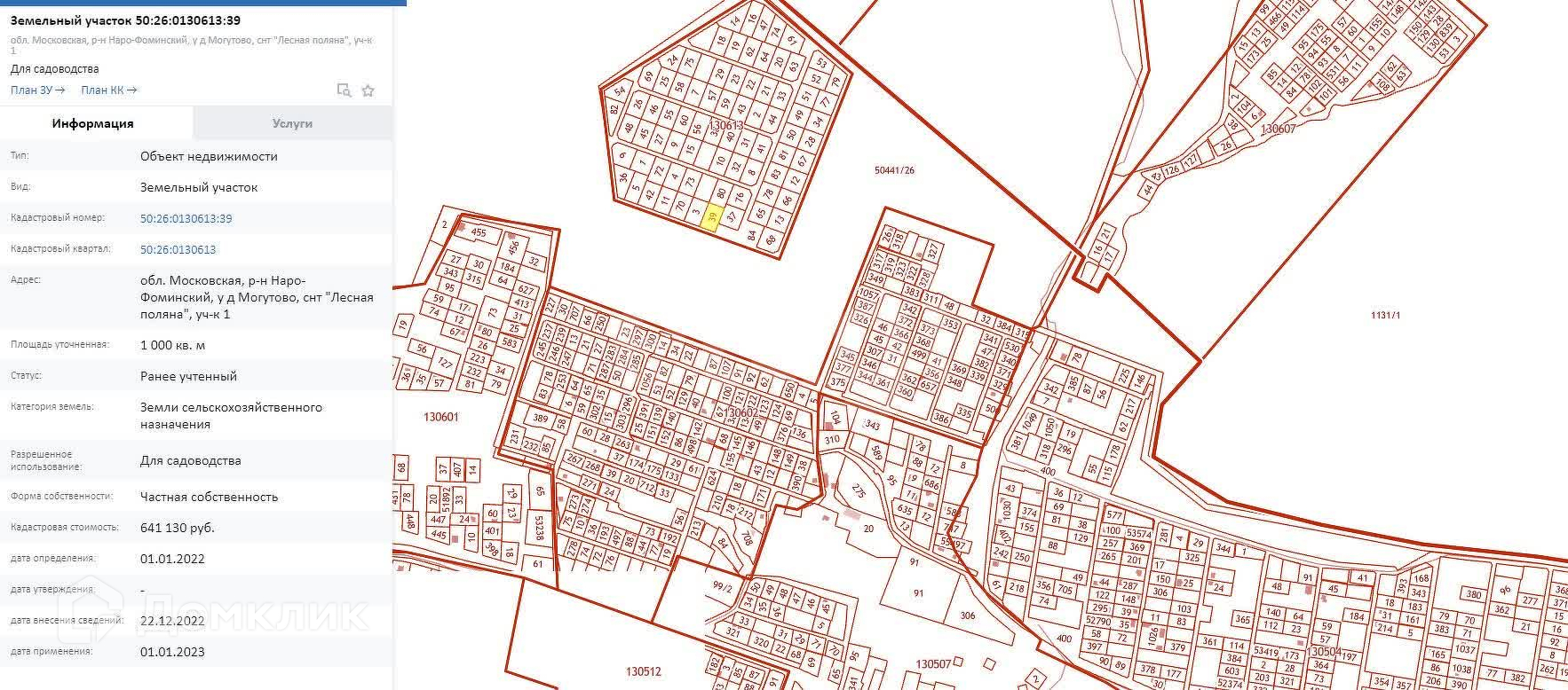 Кадастровый номер: 50:26:0130613:39.