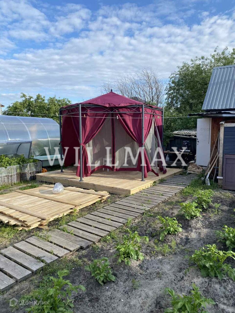 Участок 6 соток. На участке старенькая ,но очень жаркая банька, новая теплица, парник, старый домик, который использовали как гараж. Огорожен новым лицевым забором из профнастила. Имеется парковка под 3 автомобиля.