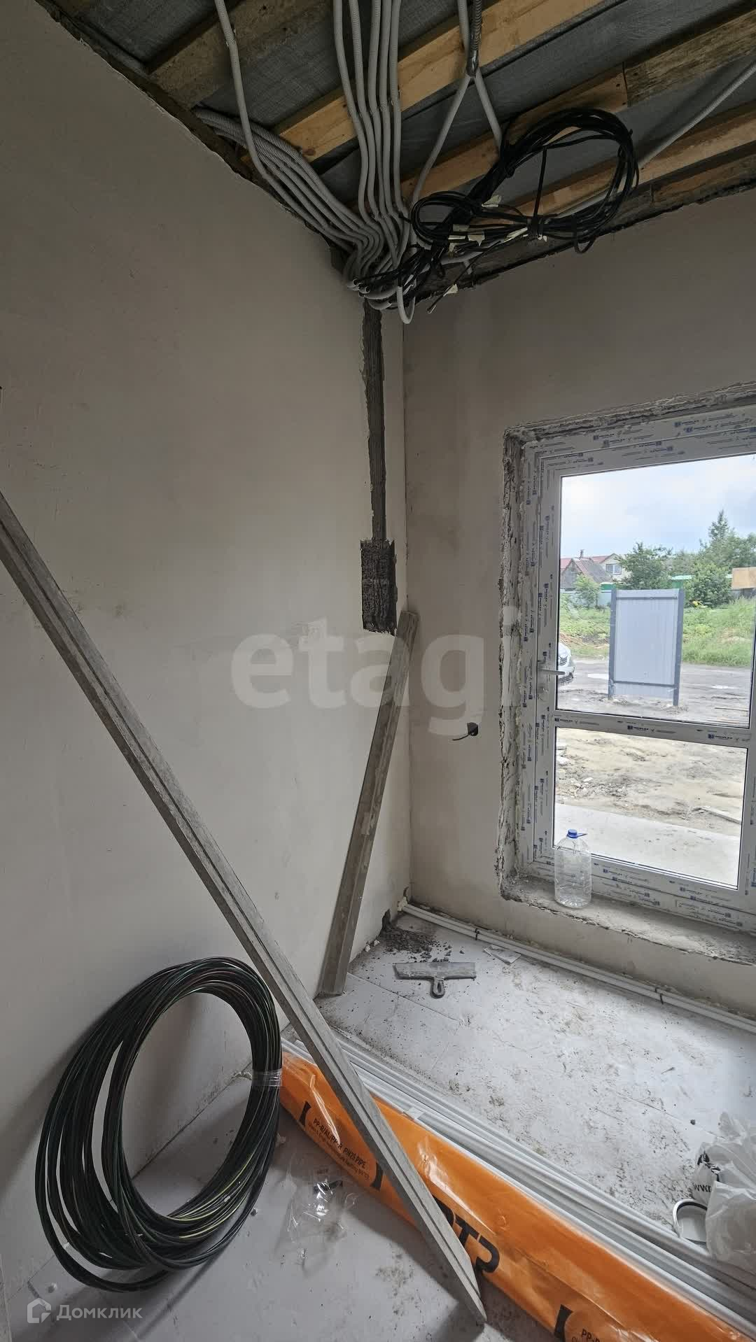 Внутри дома выполнена предчистовая отделка: белоснежные стены, натяжной потолок с точечными светильниками создают ощущение простора и свежести. Все коммуникации уже разведены: вода поступает из скважины, установлен электрический бойлер для горячей воды, а канализация – септик. Уютное тепло в доме обеспечивается электрическим котлом и теплым полом, что особенно приятно в холодное время года. Газ проходит по улице, и у вас есть возможность подключить его к дому.