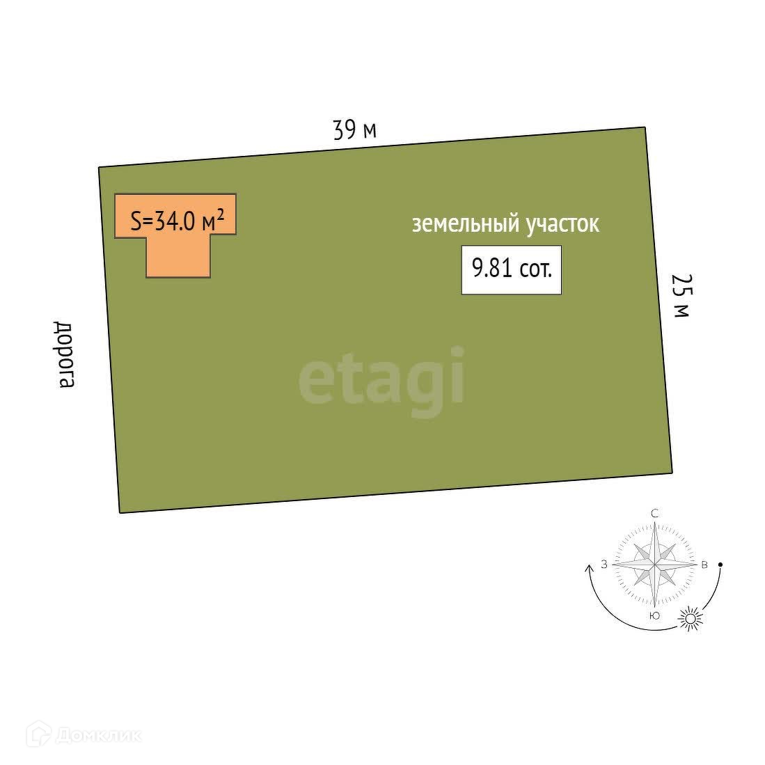 Общая площадь 34 м2