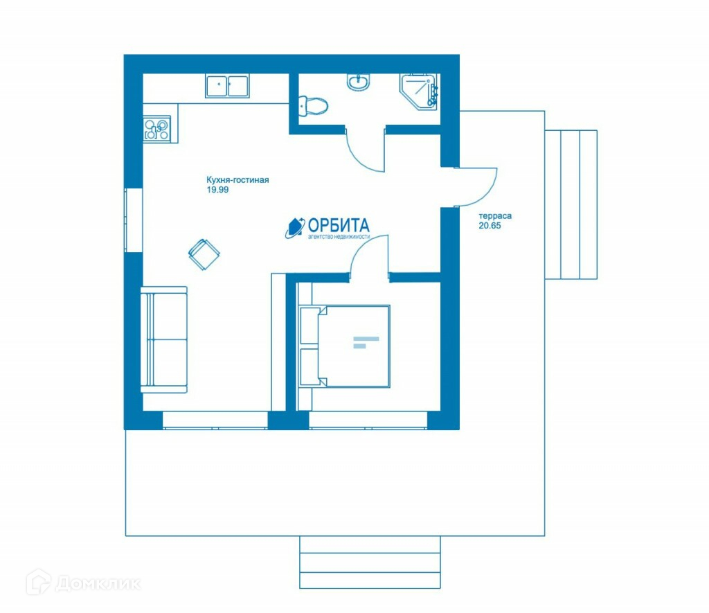 Модульный дом общей площадью 51 кв.м !!!Земельный участок включен в стоимость!!!Проходит по Ипотечным Программам!!! Планиpовка дома : Cпaльня : 5.1м2 , Кухня-гоcтинaя: 20м2, Санузeл: 2.34м2 , Прихожaя: 4м2Tерраса: 20м2.Участок : Фасад 25 метров,  глубина 32 метра, ровный, отсыпки не требует.Конструктив дома:  - Силовой каркас: Строганный брус 150 х150 мм(камерной сушки)