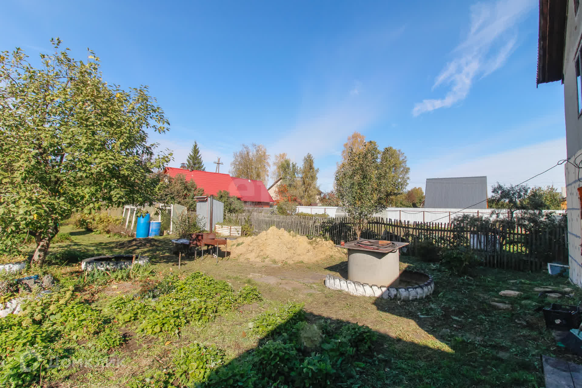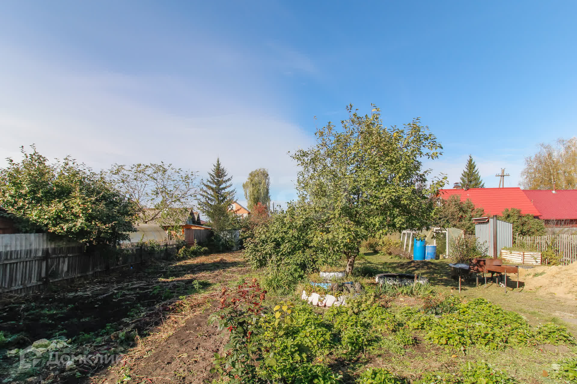 На участке расположена новая баня на дровах, где вы сможете расслабиться и восстановить силы после трудового дня. Участок полностью разработан и ухожен: здесь растут многолетние насаждения, включая 4 яблони, 2 груши, а также разнообразные кустарники — черную, красную и белую смородину, малины (обычной и ремонтантной), клубнику и многое другое.