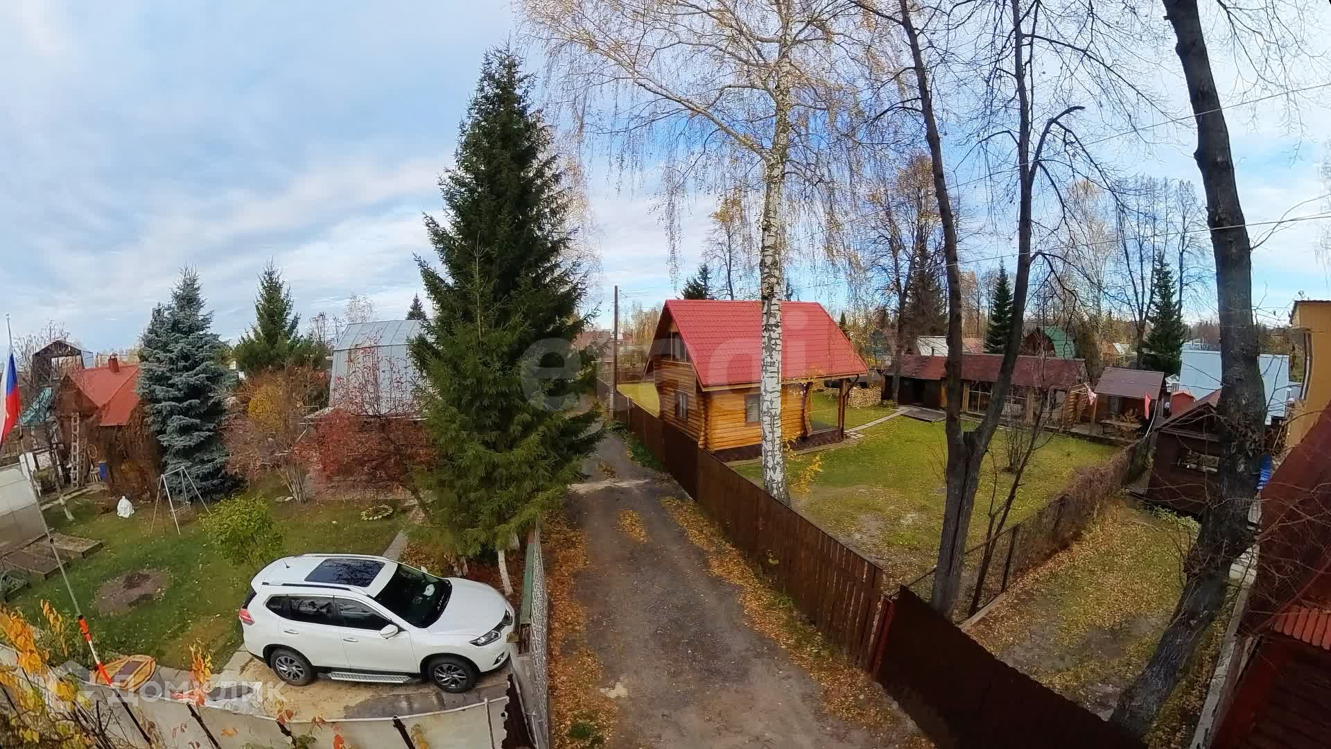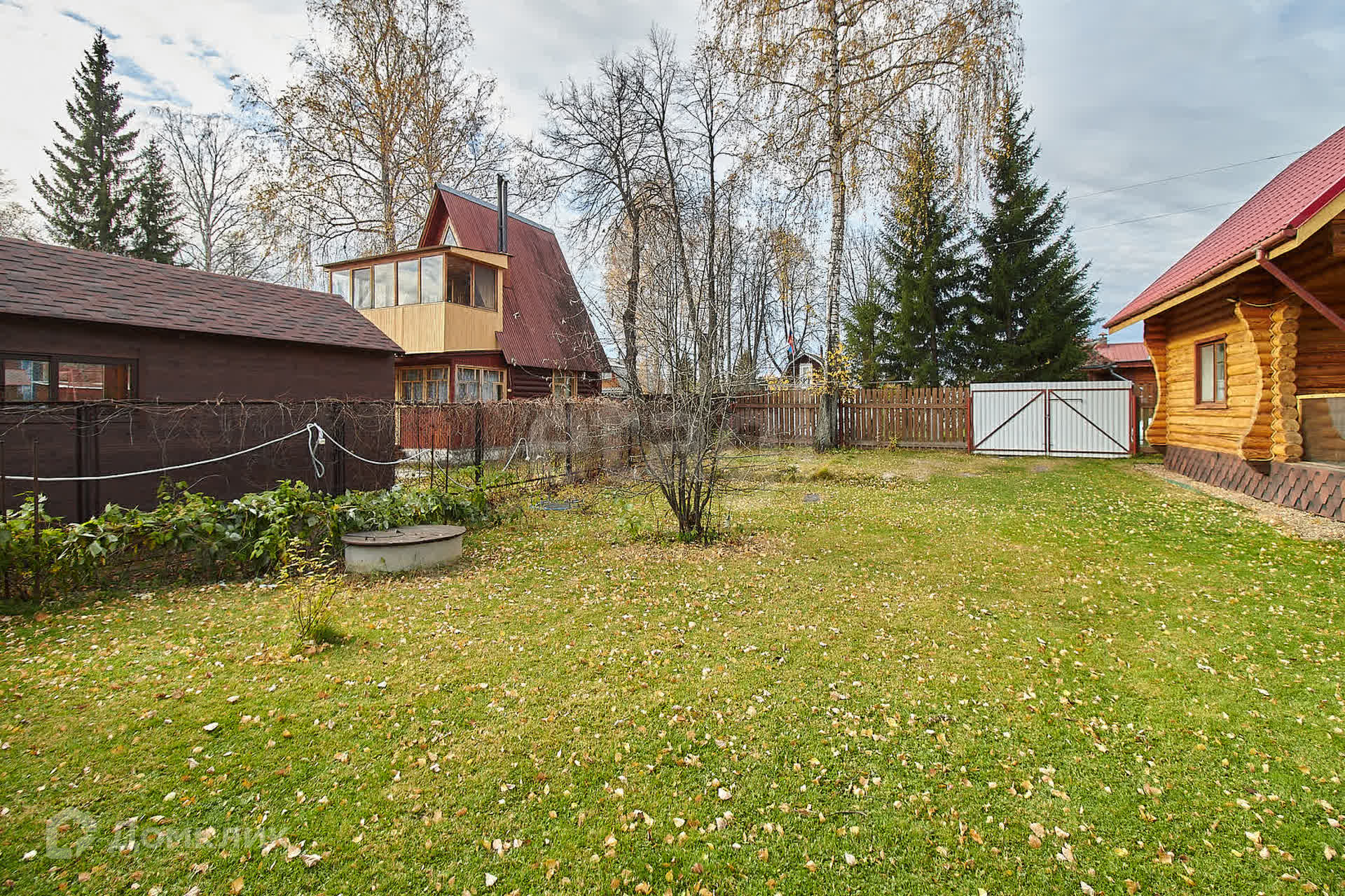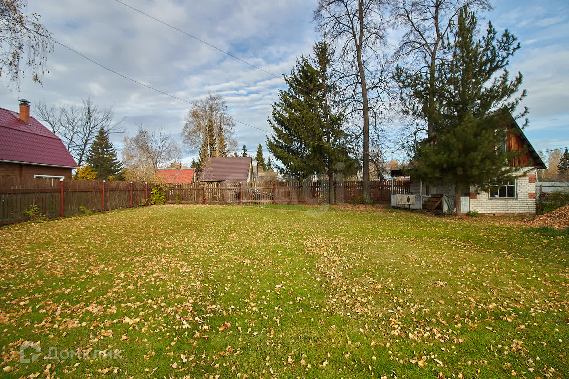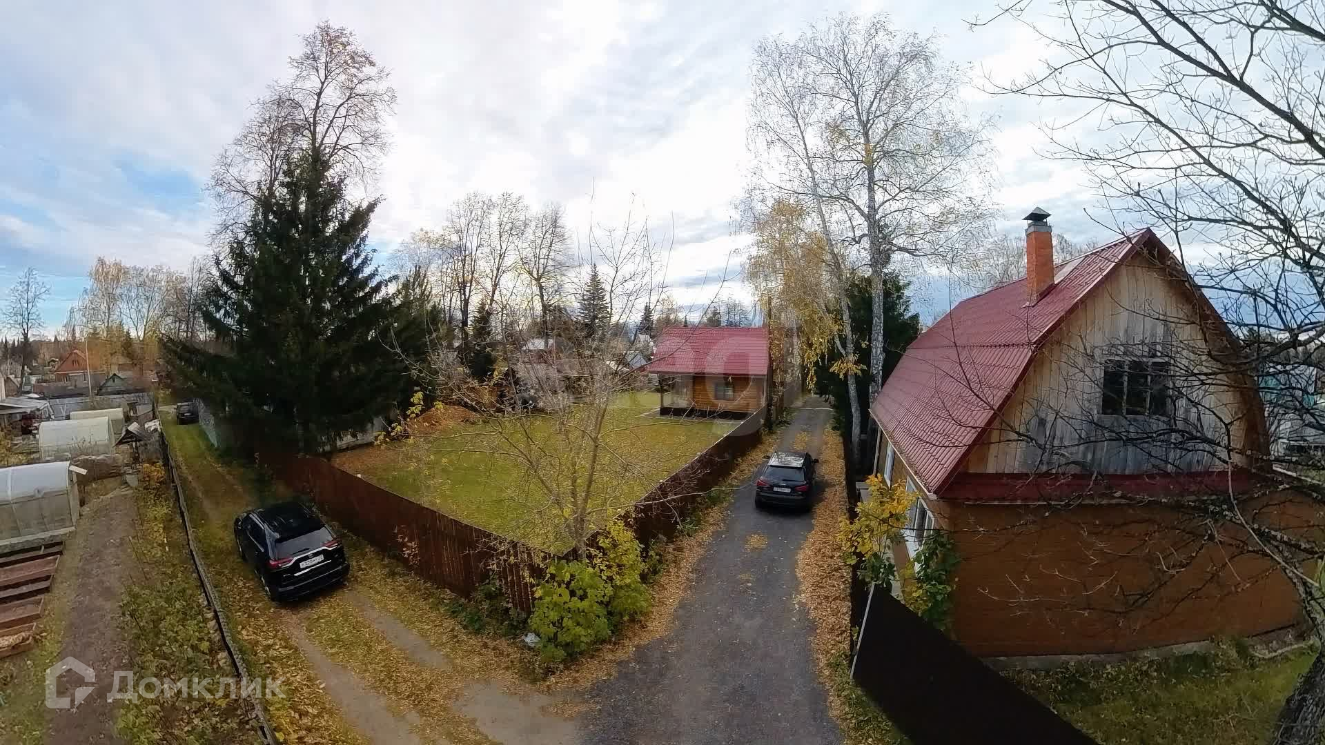 Участок площадью 10 соток состоит из двух смежных участков, полностью засеянных газоном и окруженных надежным деревянным забором. Здесь вы найдете достаточное количество парковочных мест для ваших автомобилей.