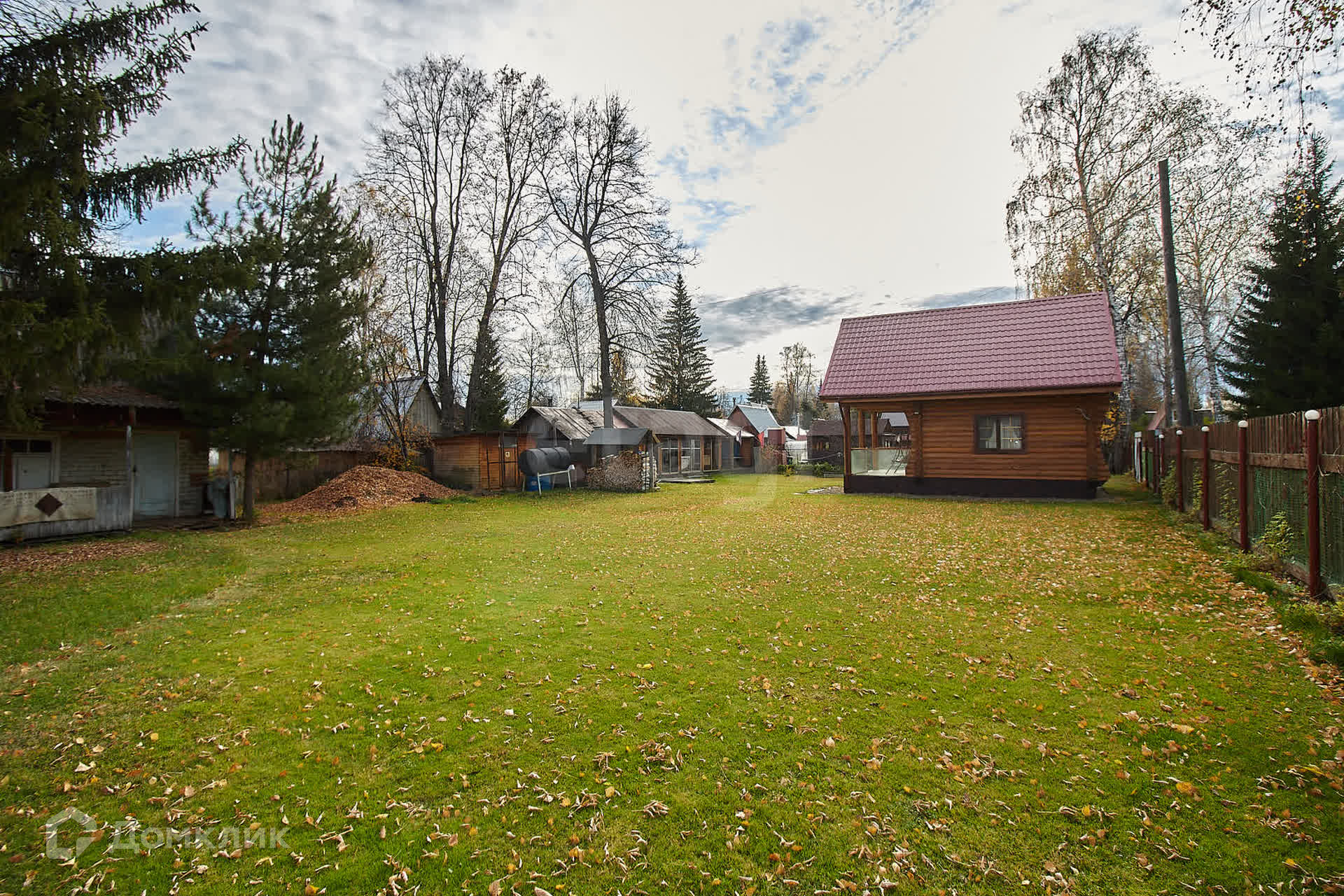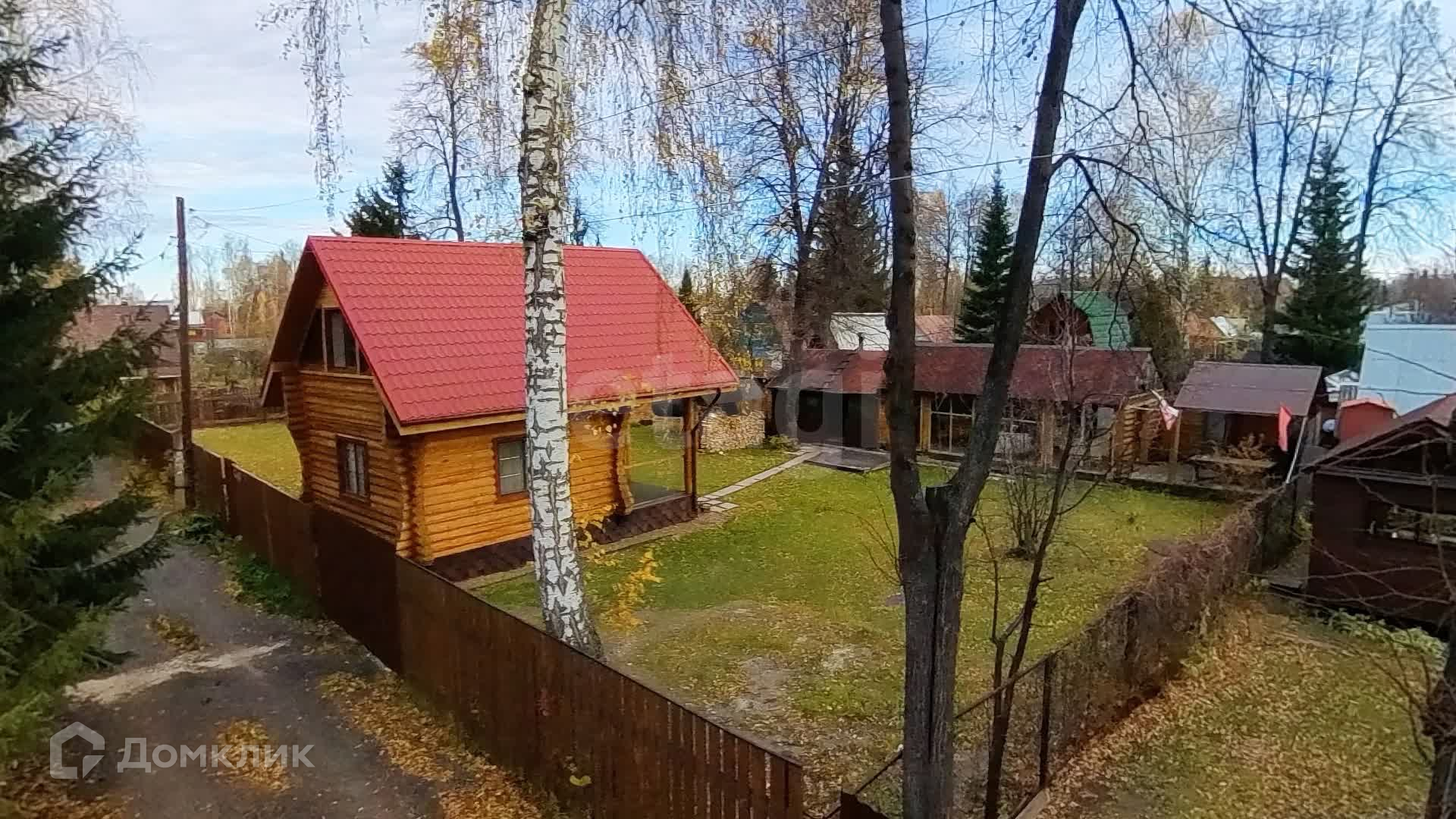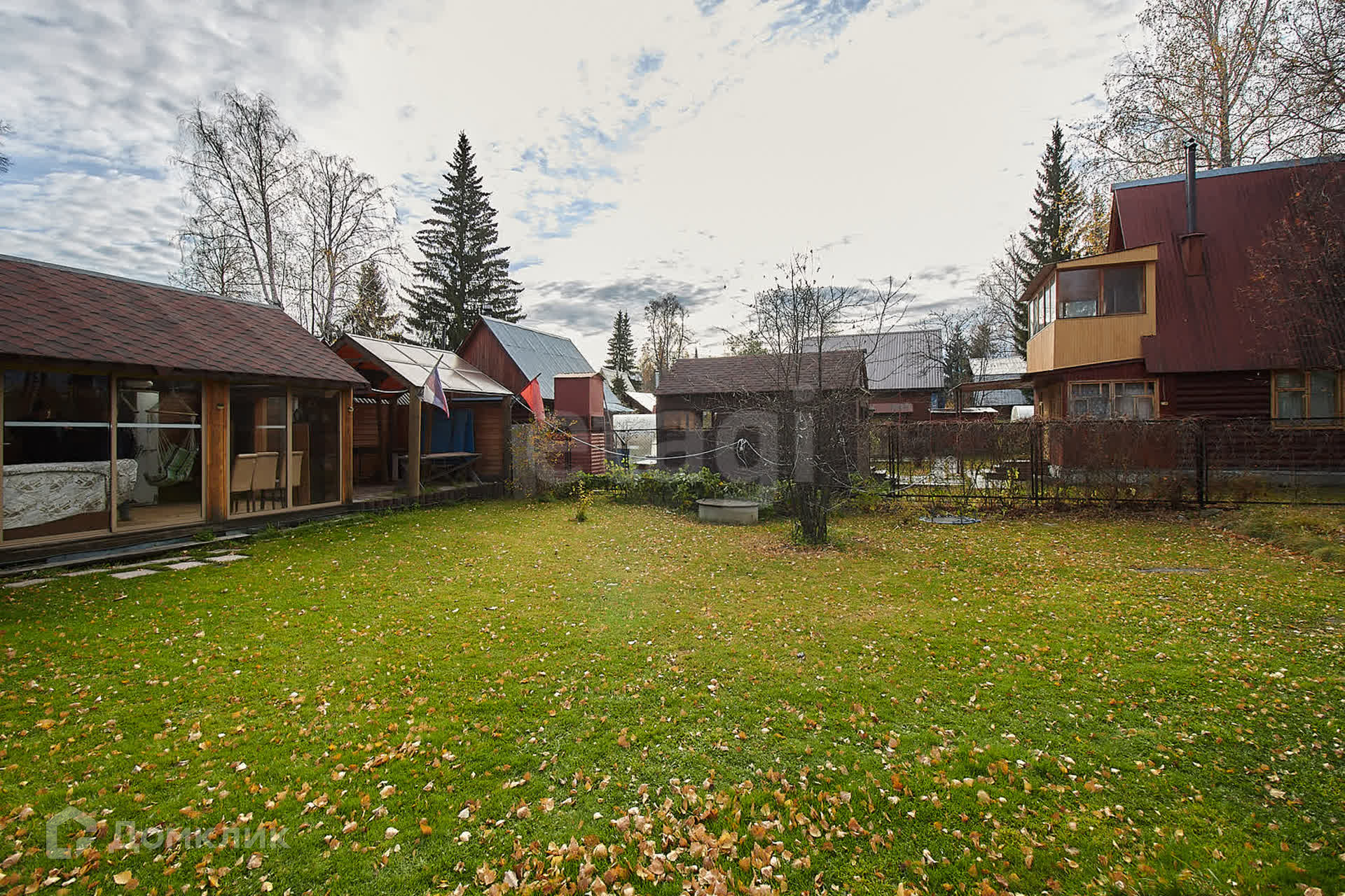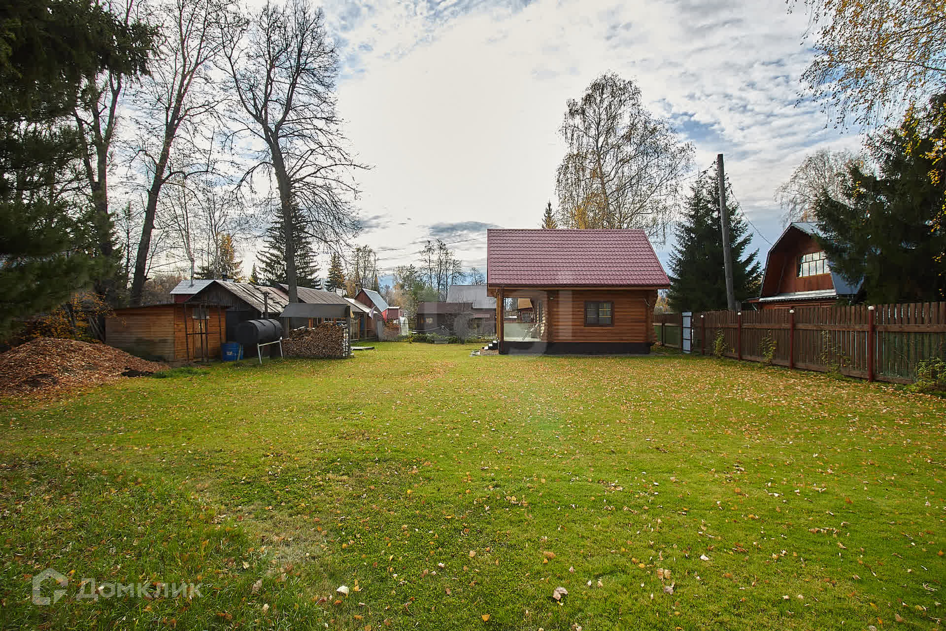Участок площадью 10 соток состоит из двух смежных участков, полностью засеянных газоном и окруженных надежным деревянным забором. Здесь вы найдете достаточное количество парковочных мест для ваших автомобилей.