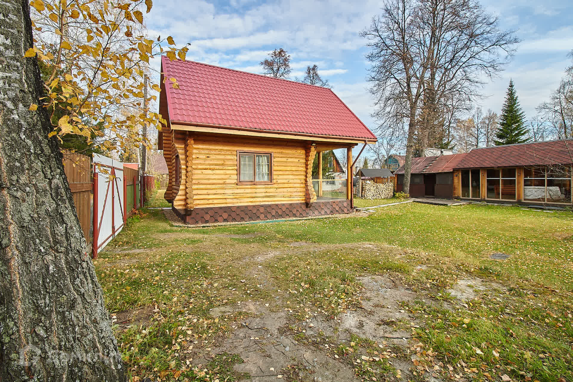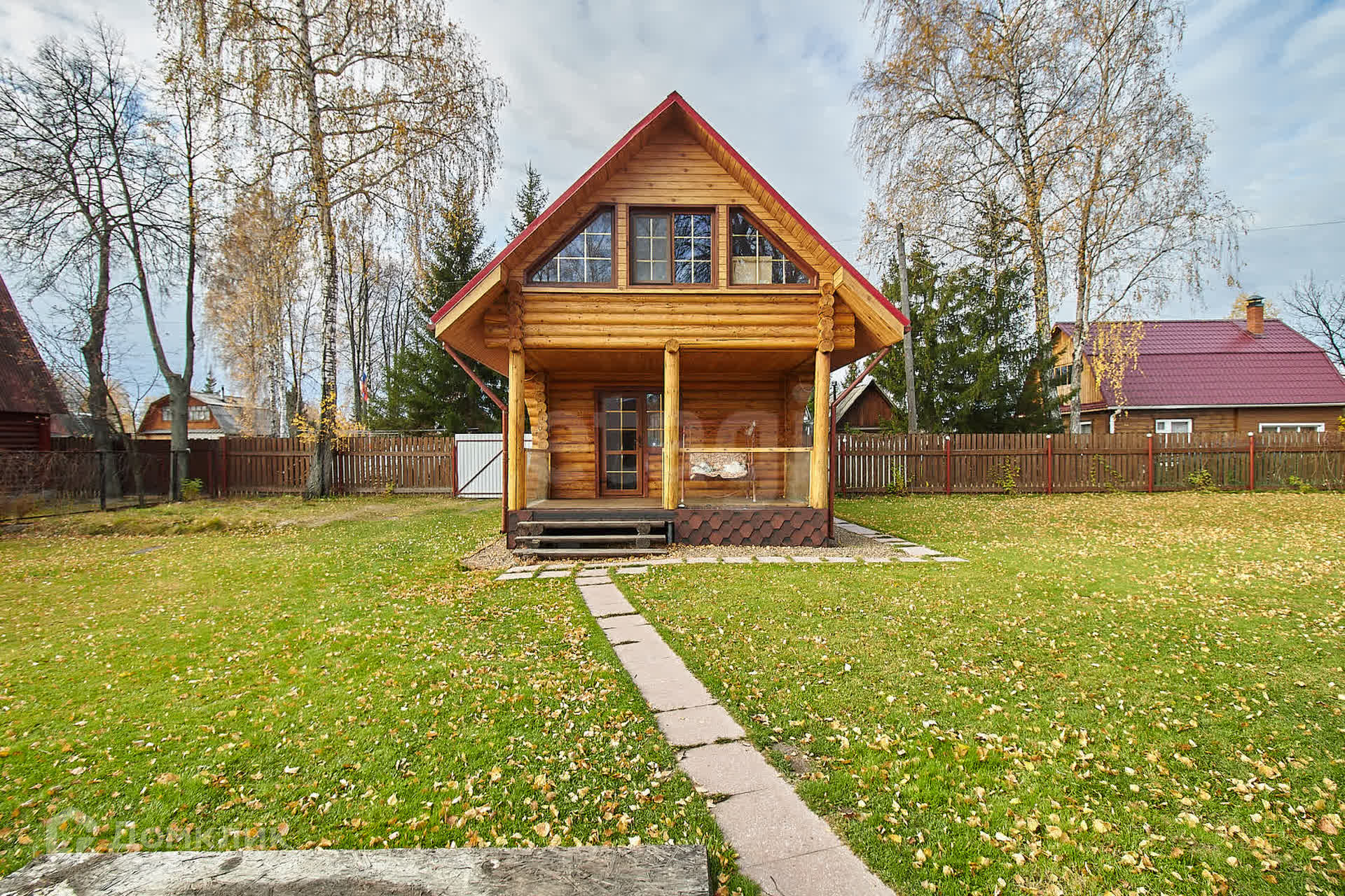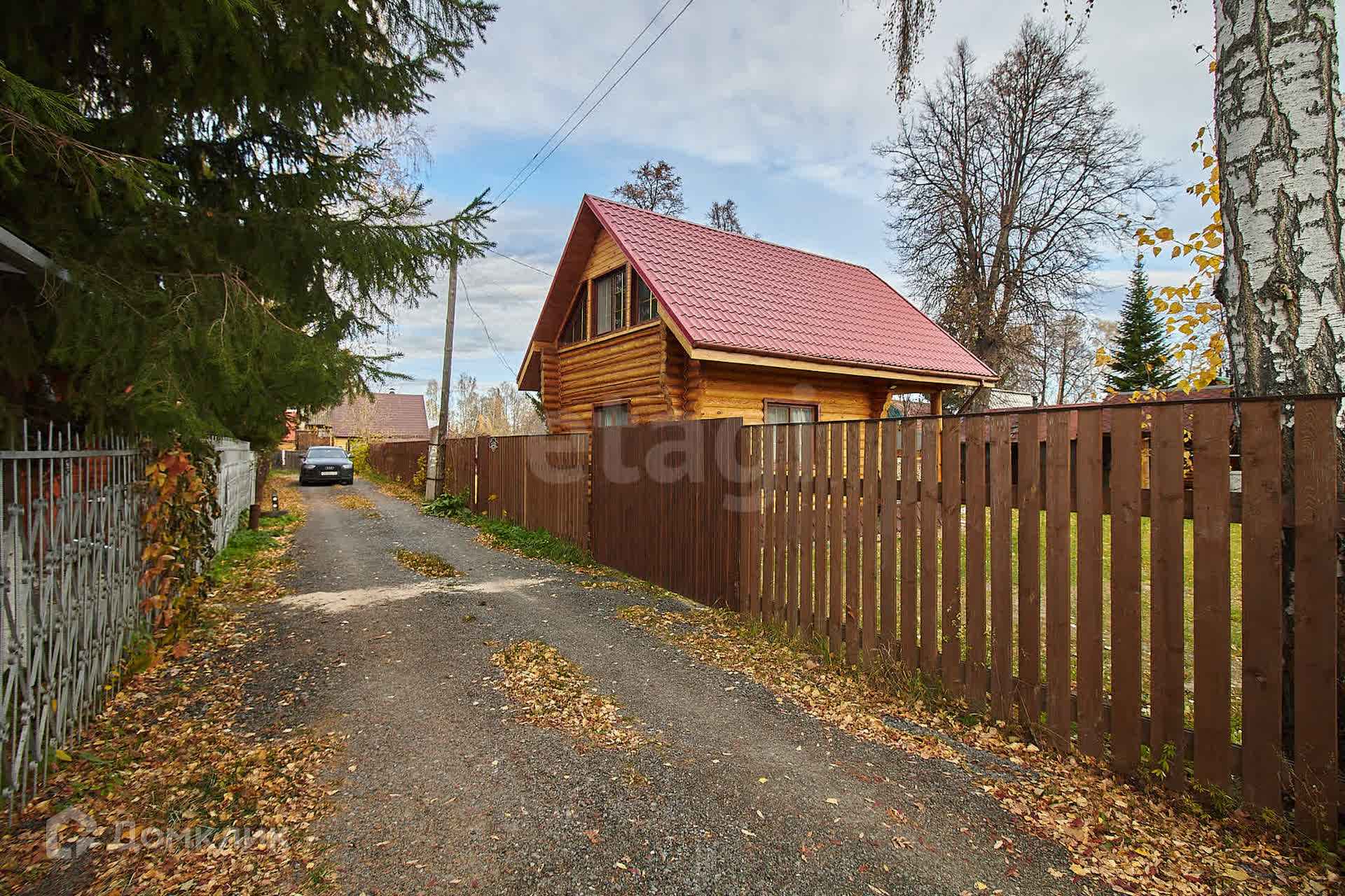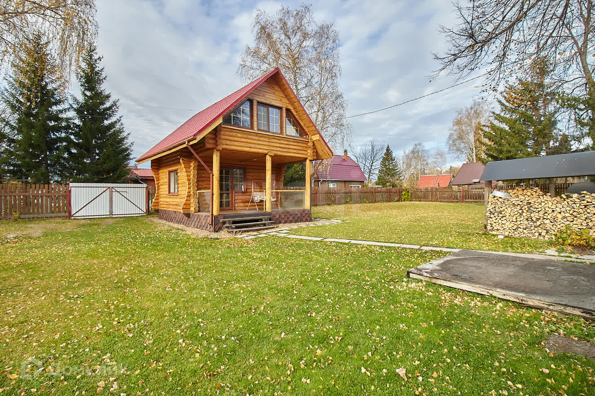 Участок площадью 10 соток состоит из двух смежных участков, полностью засеянных газоном и окруженных надежным деревянным забором. Здесь вы найдете достаточное количество парковочных мест для ваших автомобилей.
